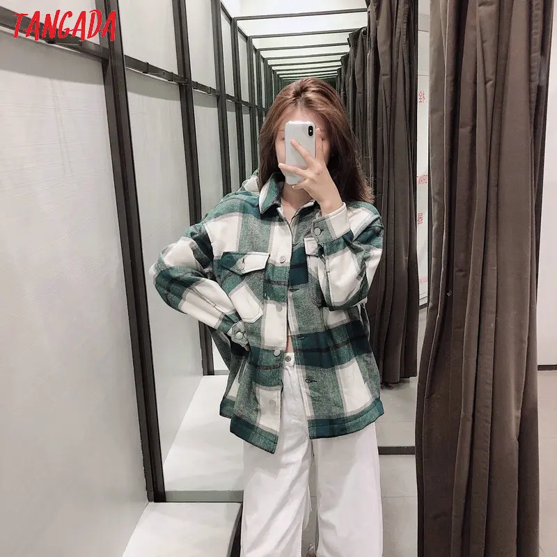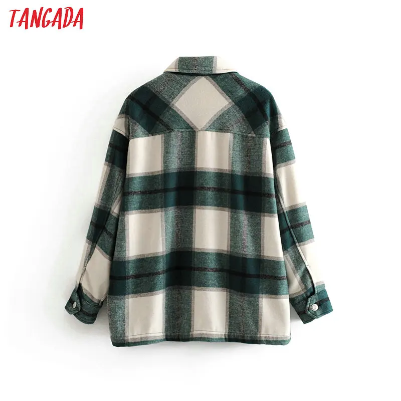 Tangada 2020 Winter Women green plaid Long Coat Jacket Casual High Quality Warm Overcoat Fashion Long Coats 3H04