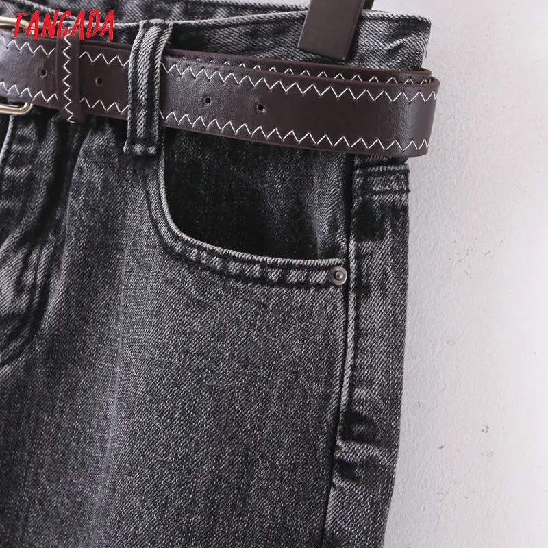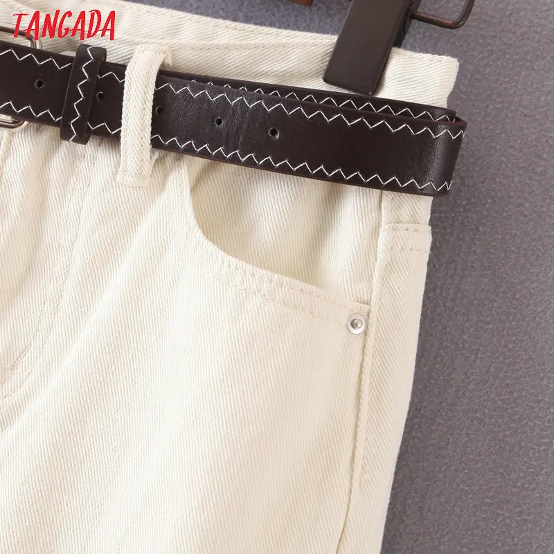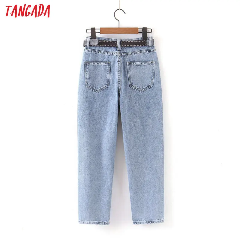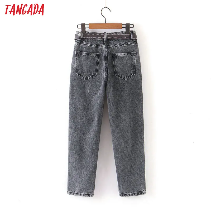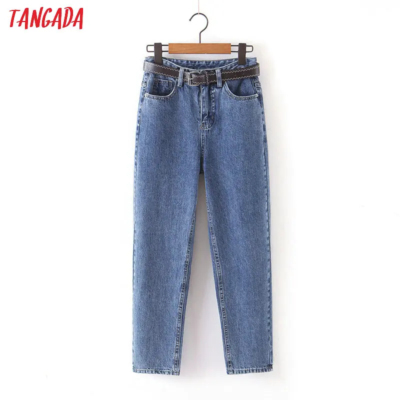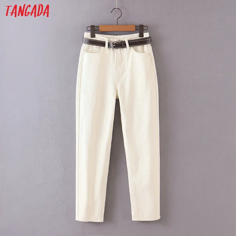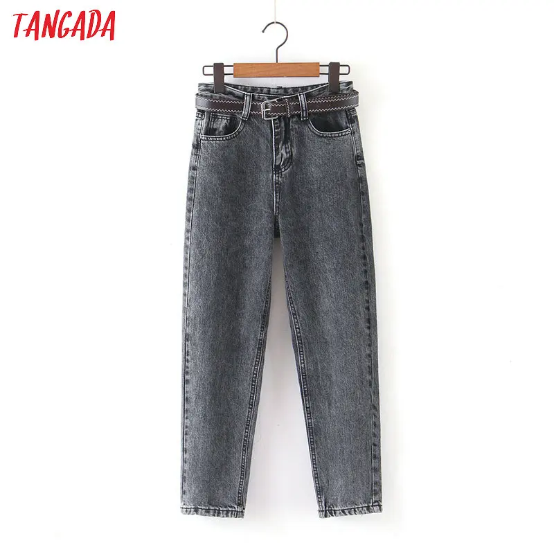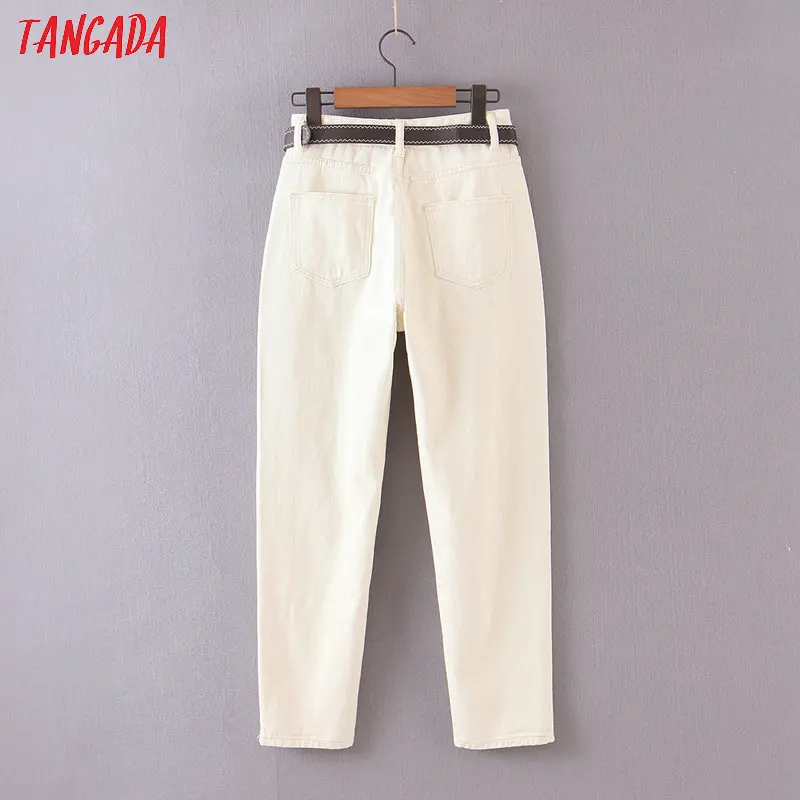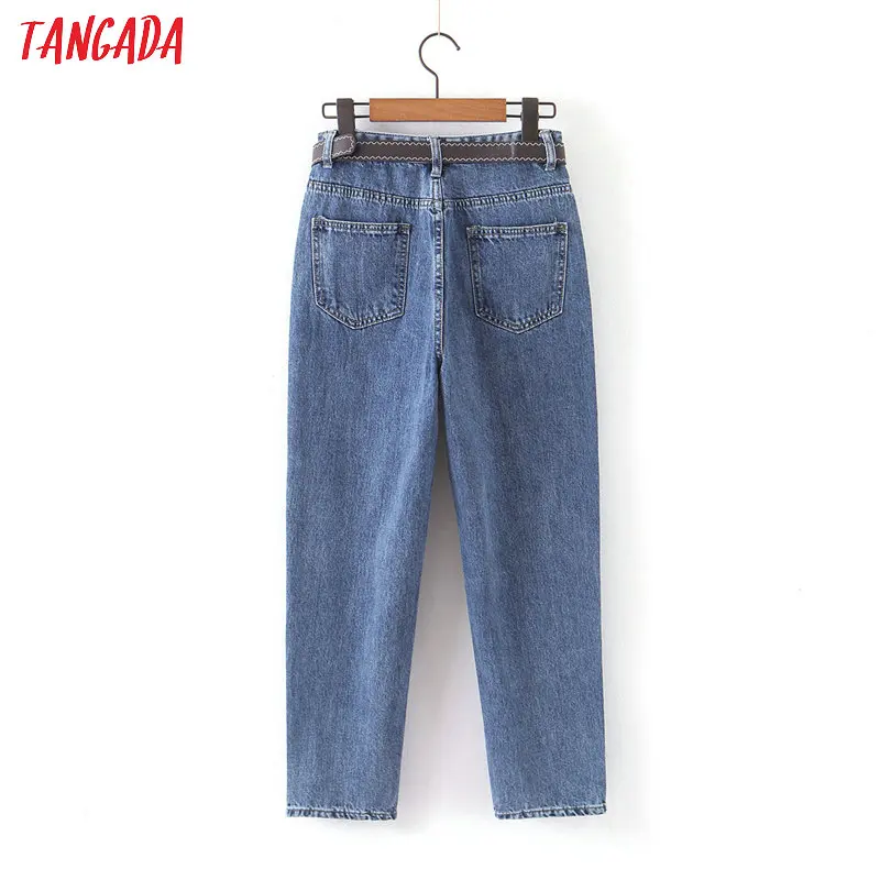 Tangada 2021 fashion women mom jeans pants with belt long trousers strethy waist pockets zipper female pants HY41