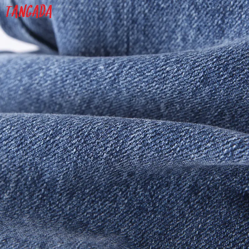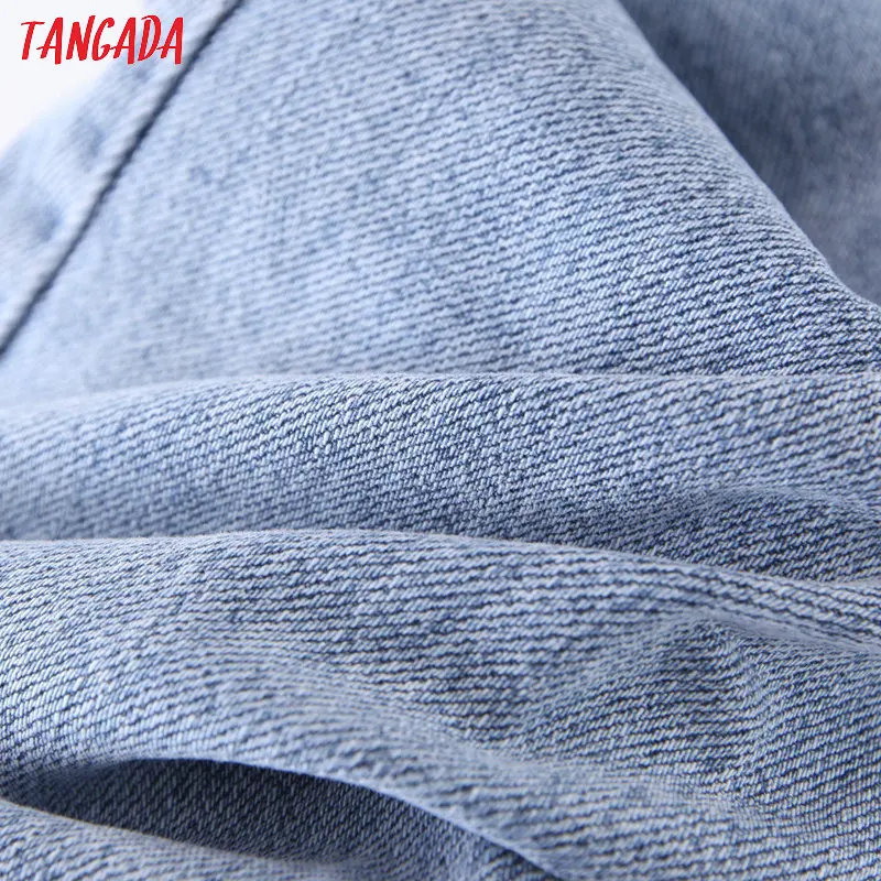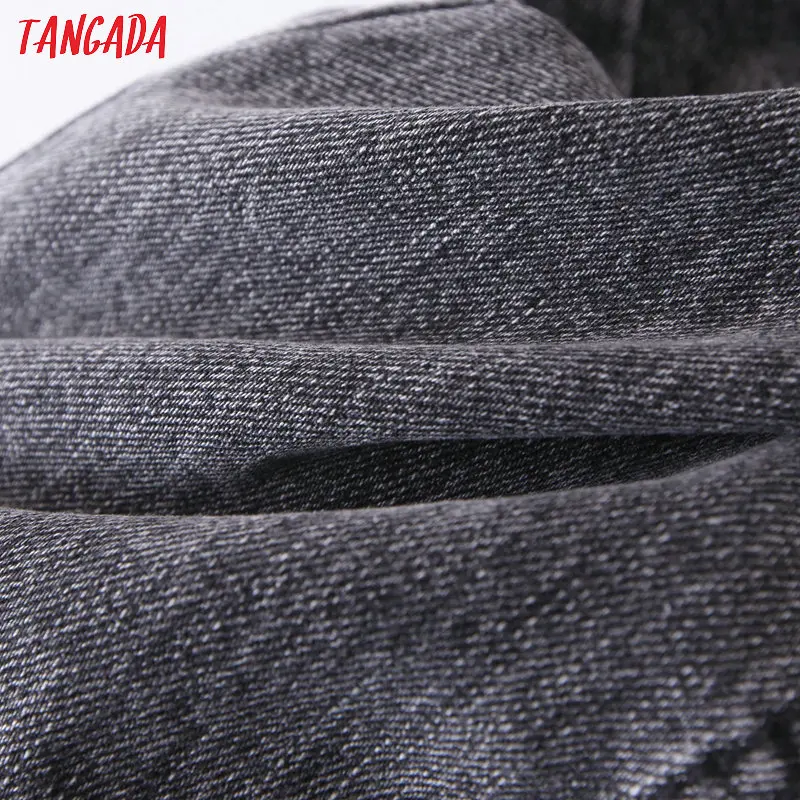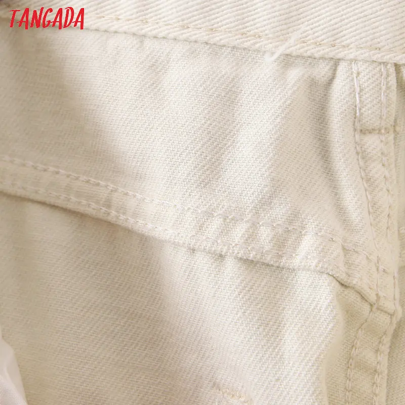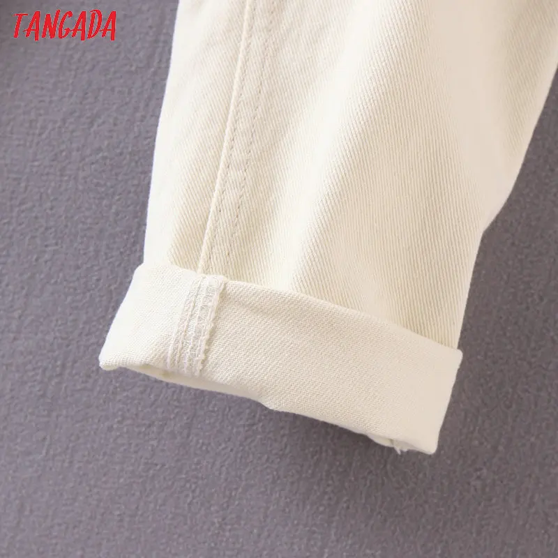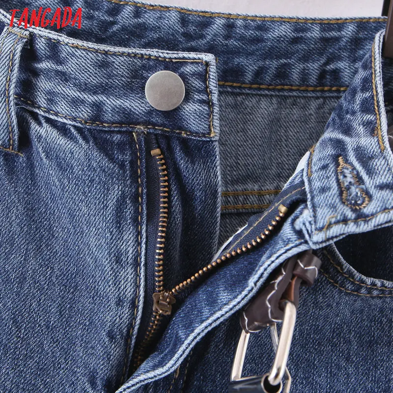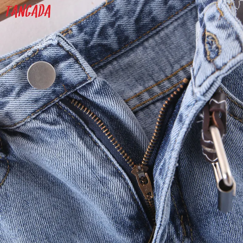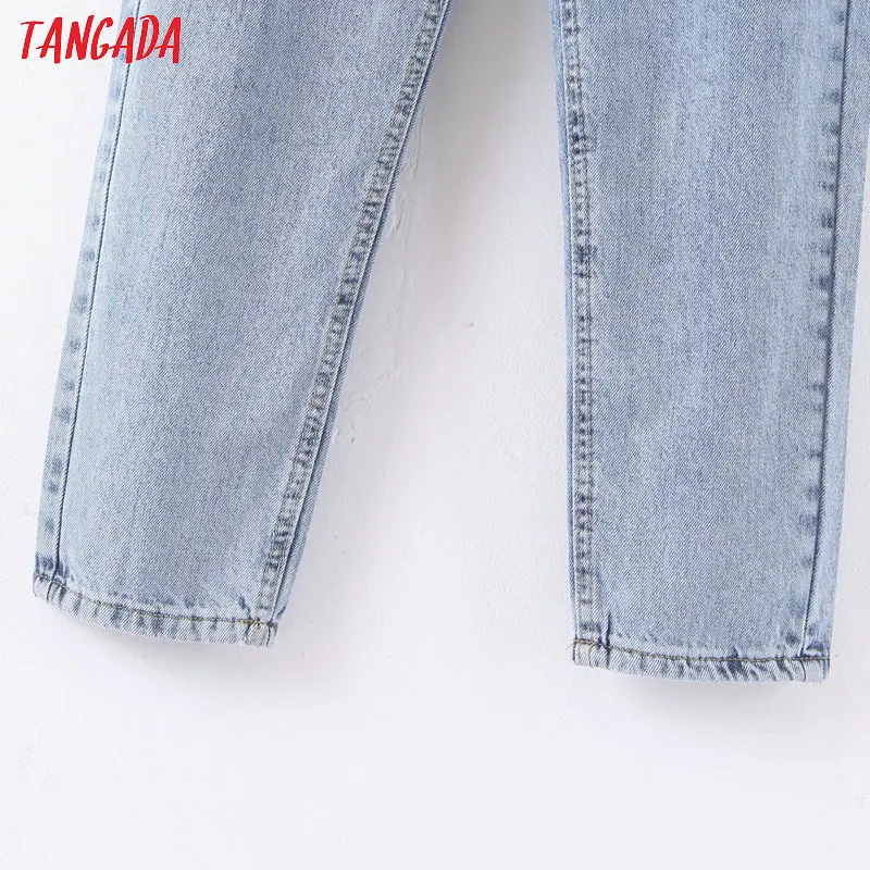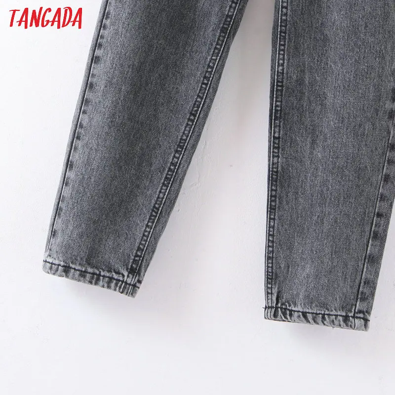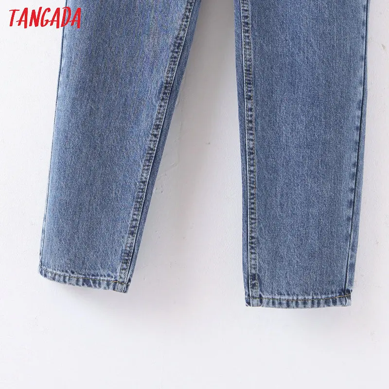Tangada 2021 fashion women mom jeans pants with belt long trousers strethy waist pockets zipper female pants HY41