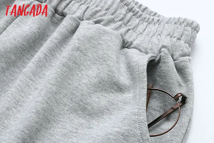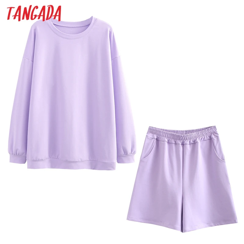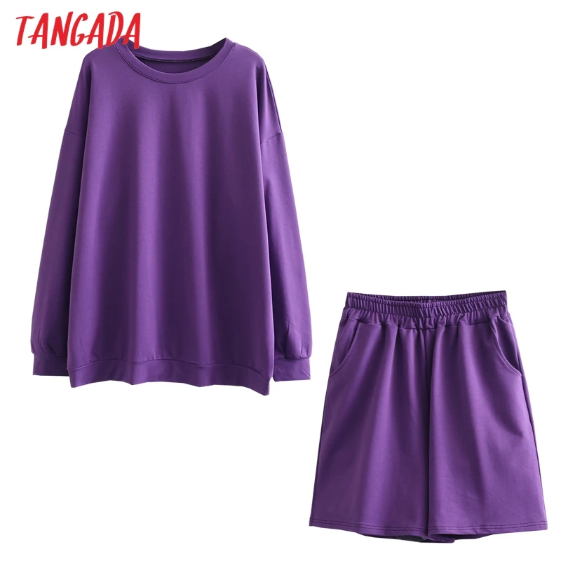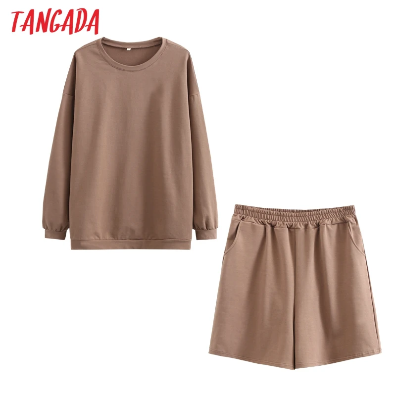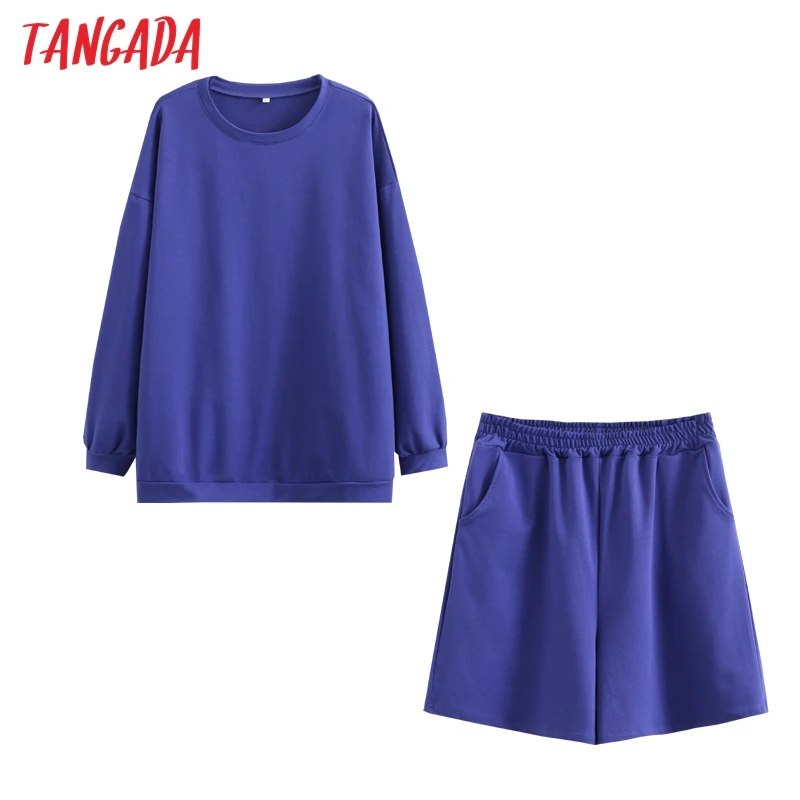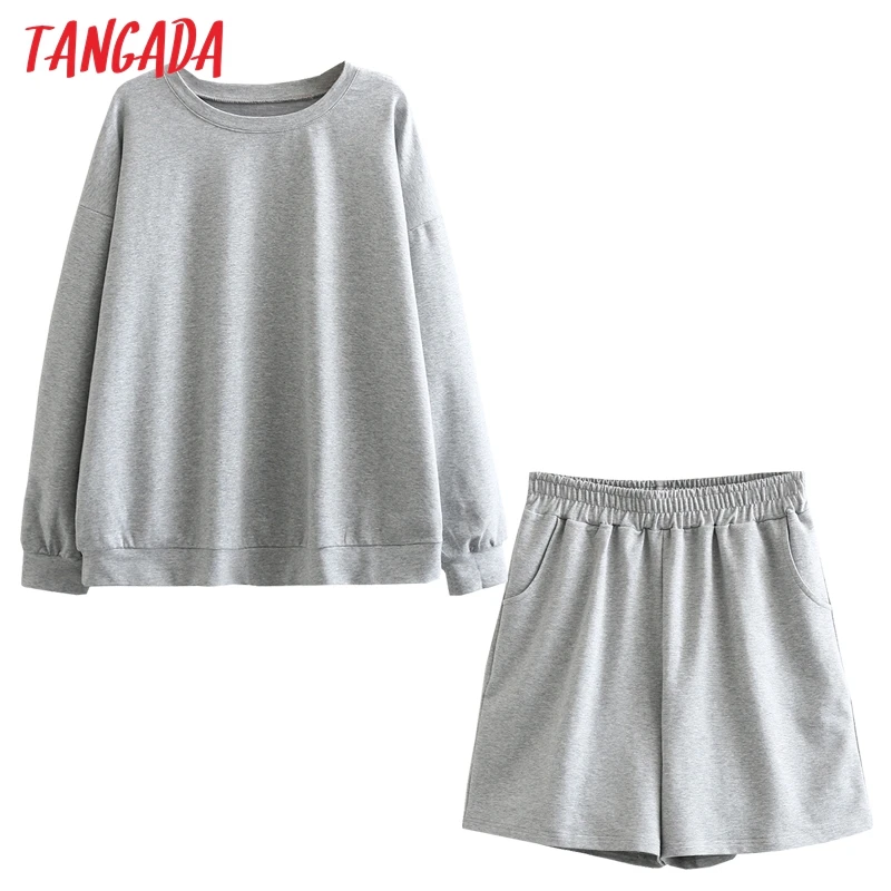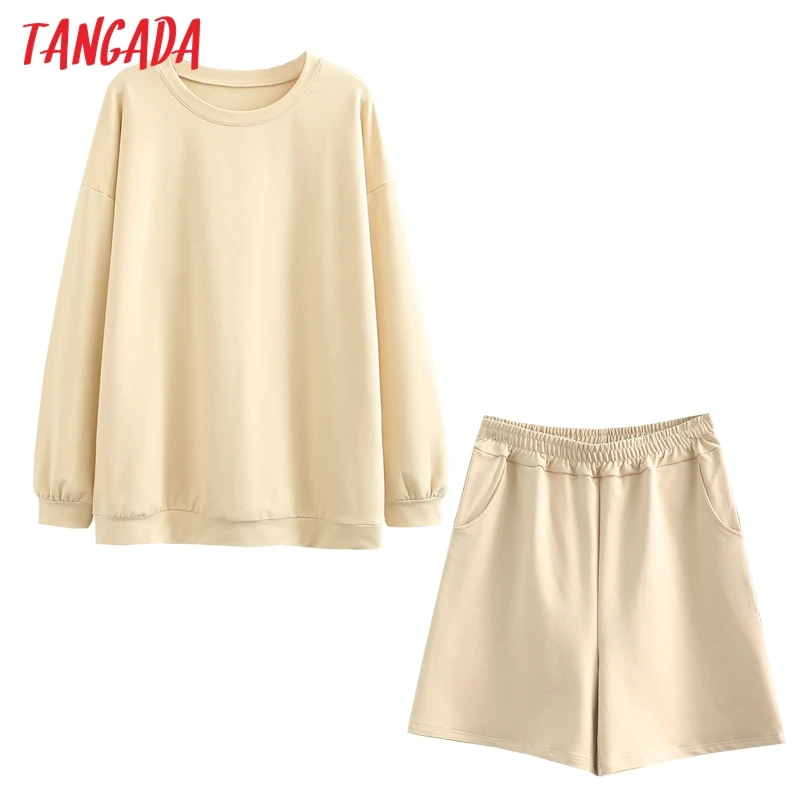 Tangada 2021 Spring Summer Cotton Tracksuits Couple Solid Color Two Piece Set O-neck Sweatshirts and Shorts Plus Size 6L30-1