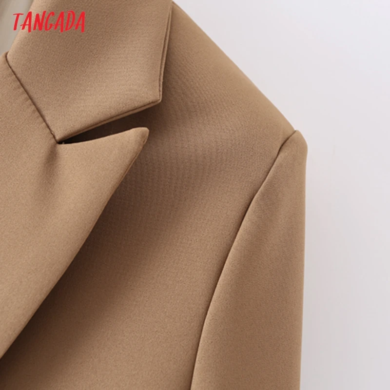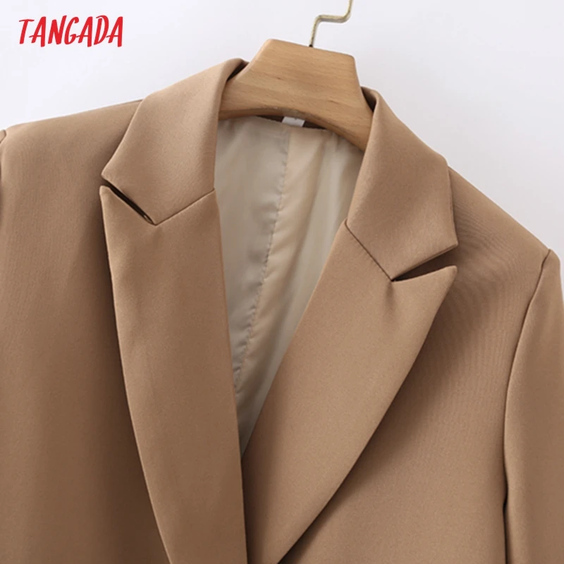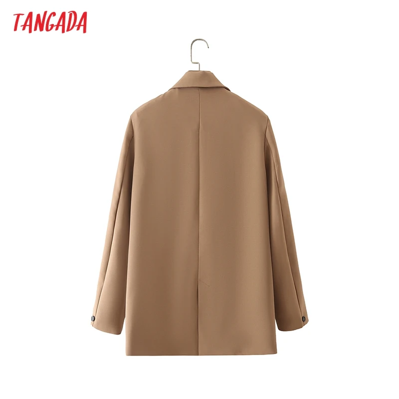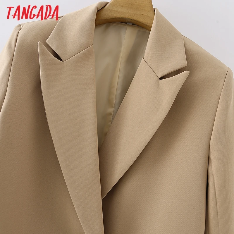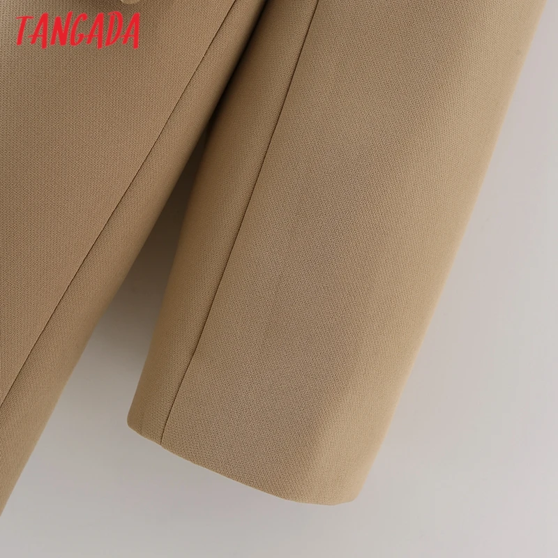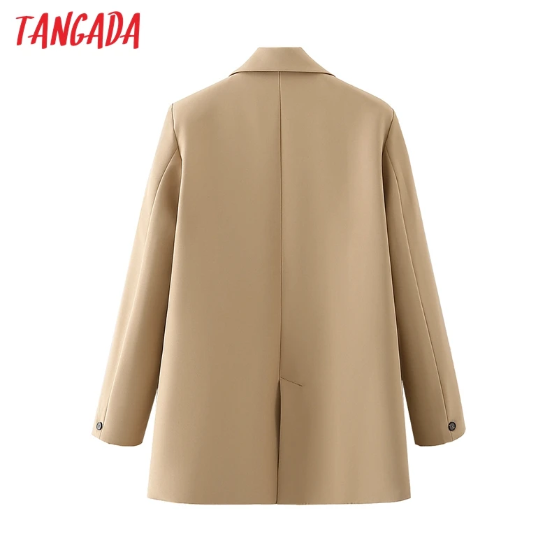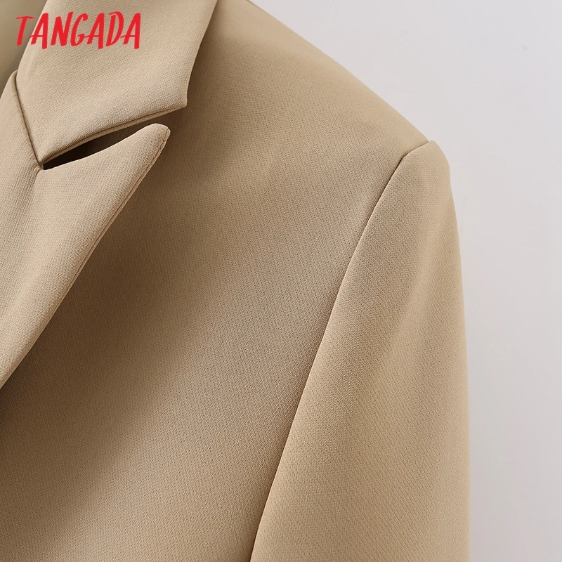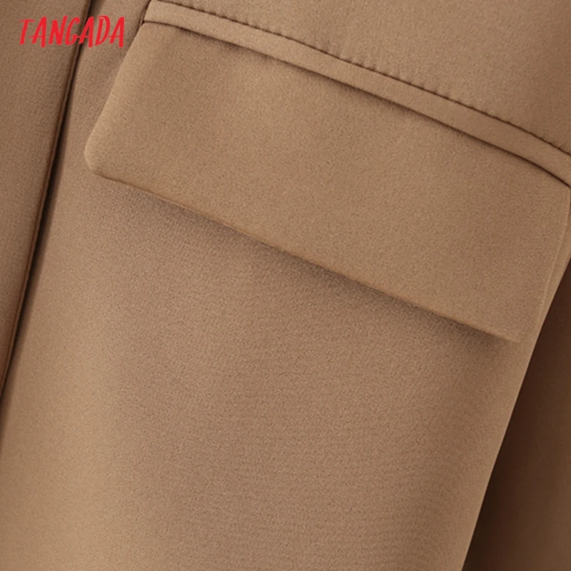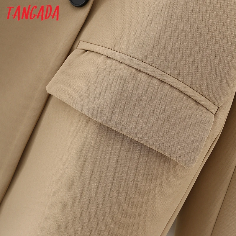 Tangada Women Khaki Blazer Coat Vintage Notched Collar Pocket 2021 Fashion Female Casual Chic Tops DA02