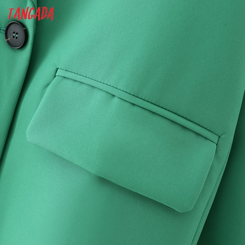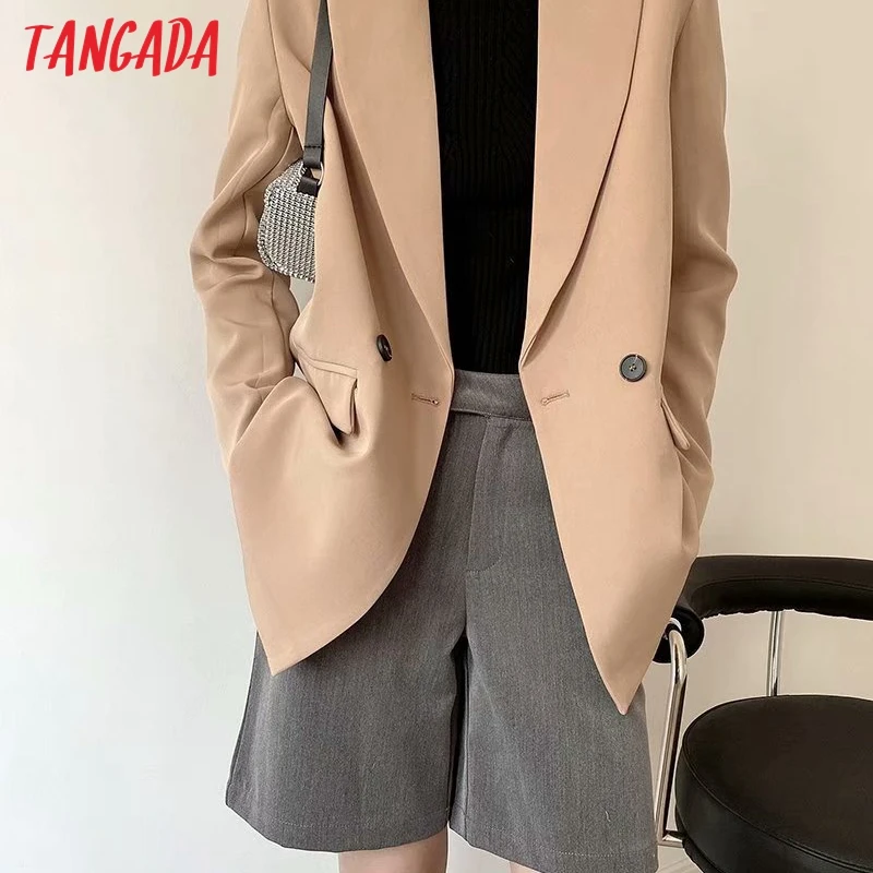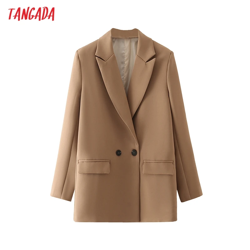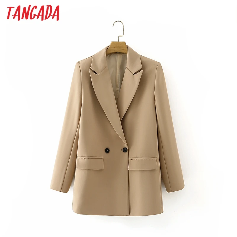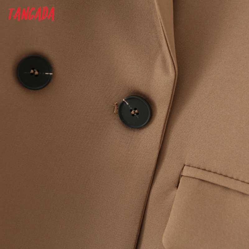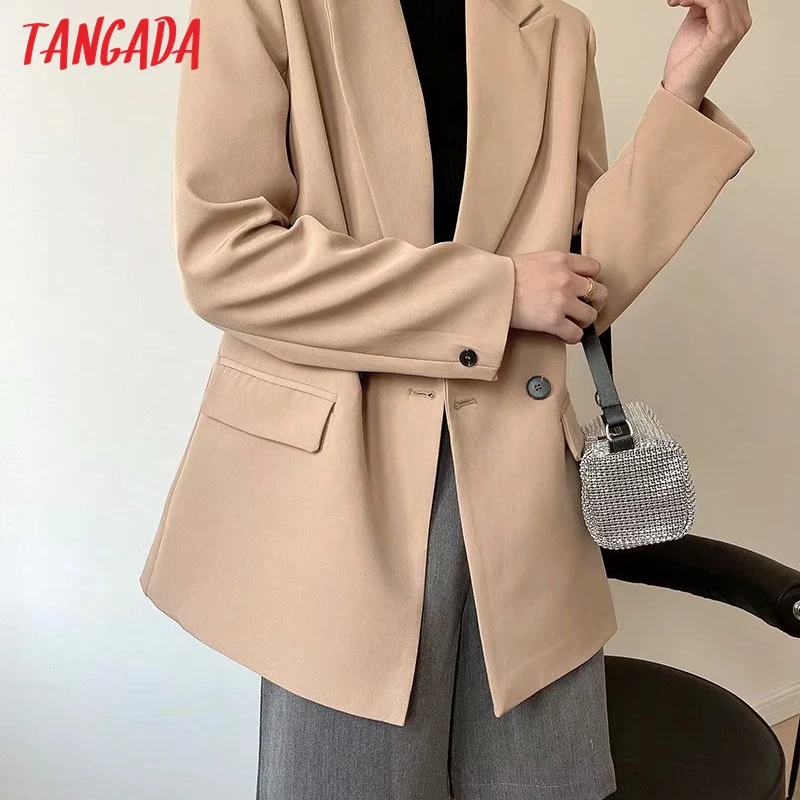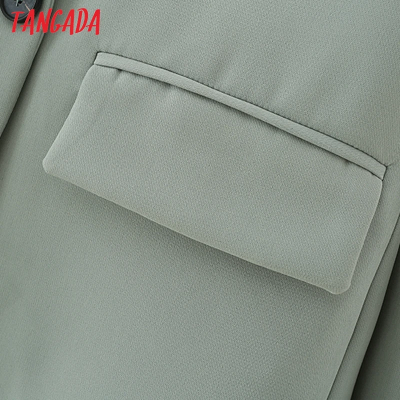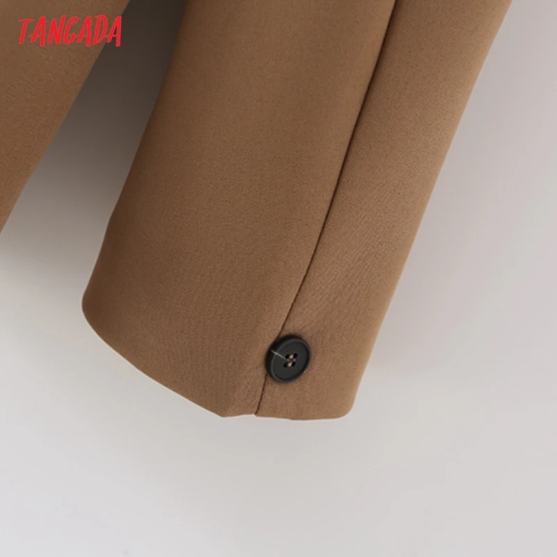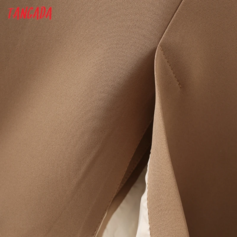Tangada Women Khaki Blazer Coat Vintage Notched Collar Pocket 2021 Fashion Female Casual Chic Tops DA02