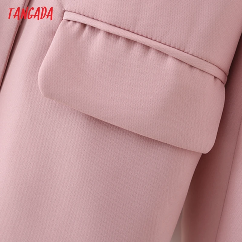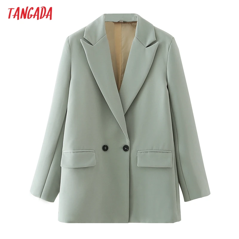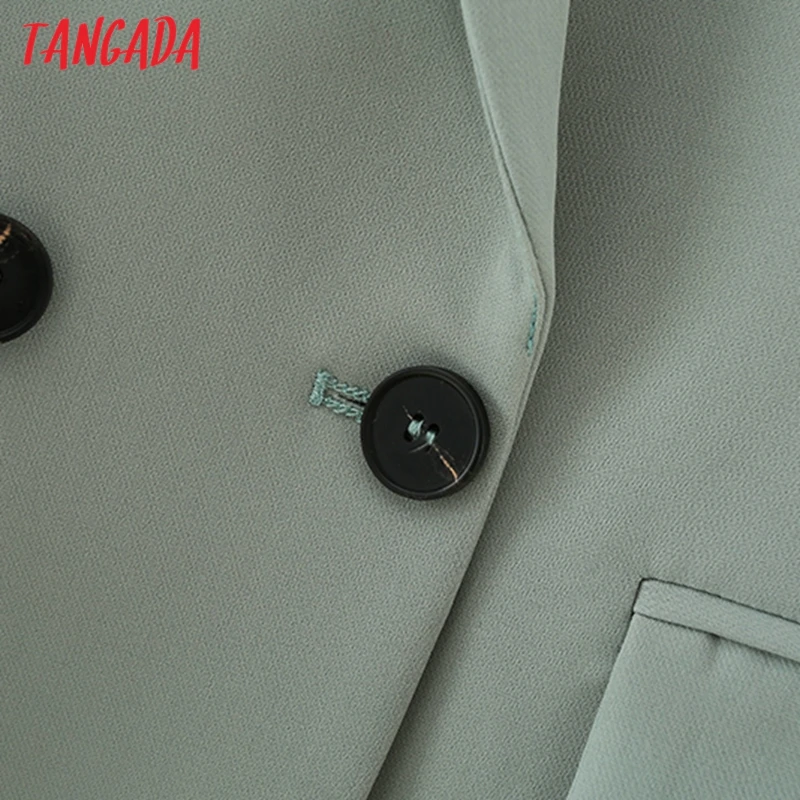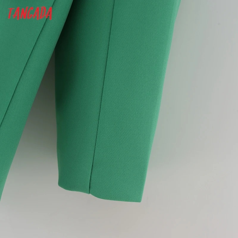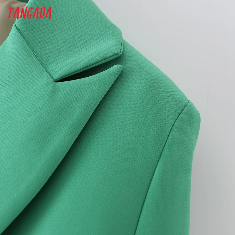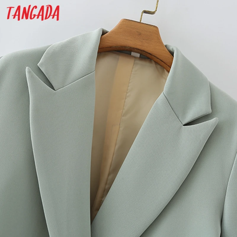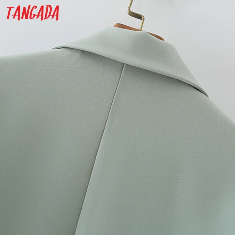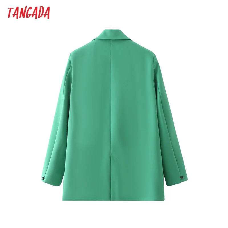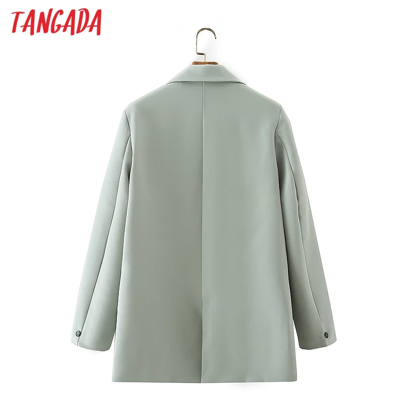 Tangada Women Khaki Blazer Coat Vintage Notched Collar Pocket 2021 Fashion Female Casual Chic Tops DA02