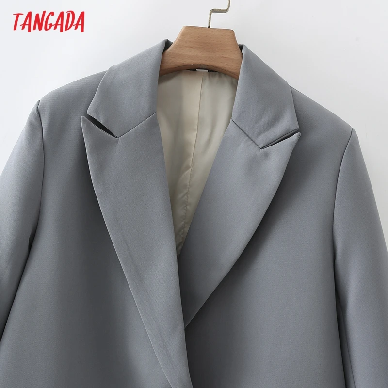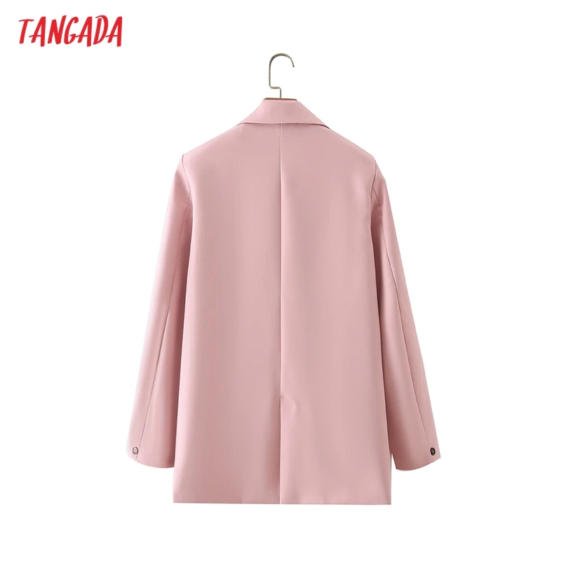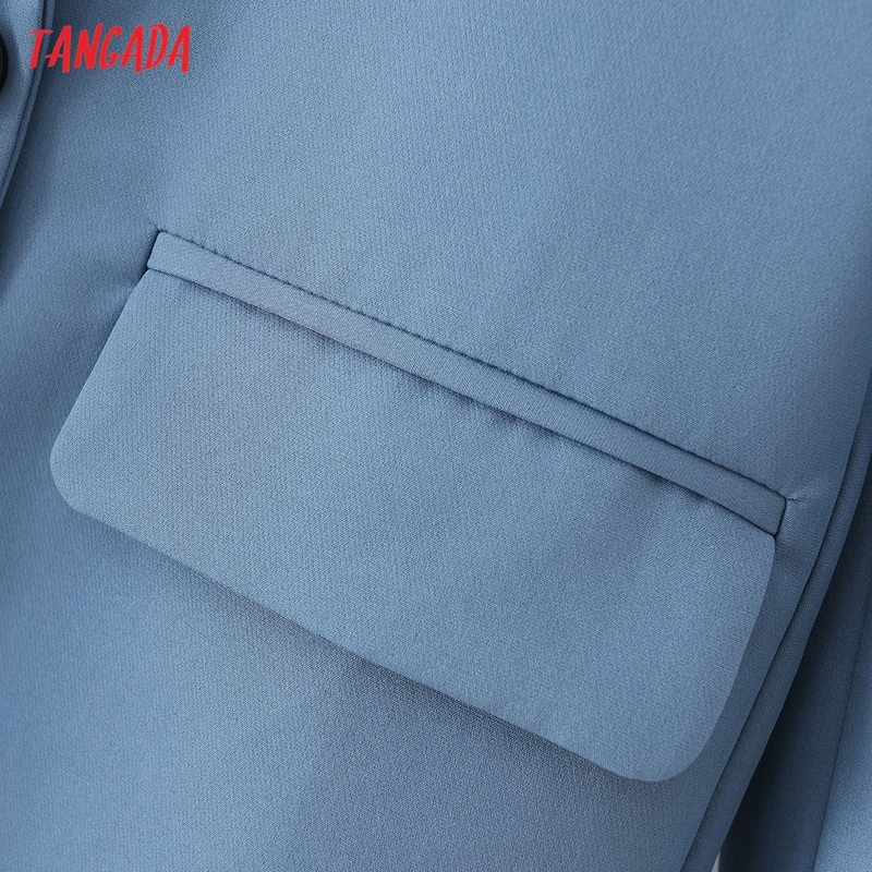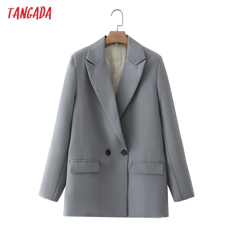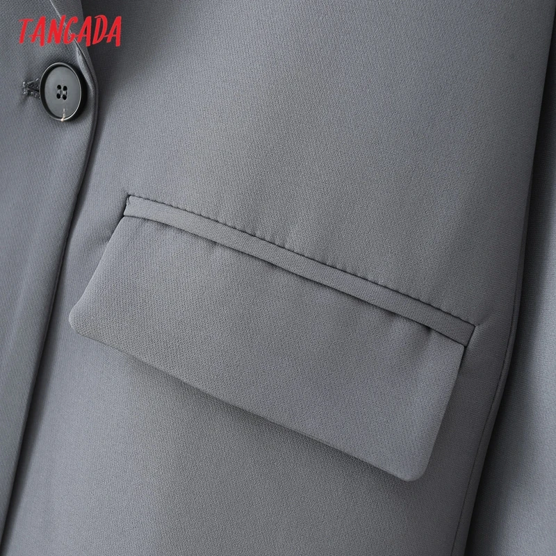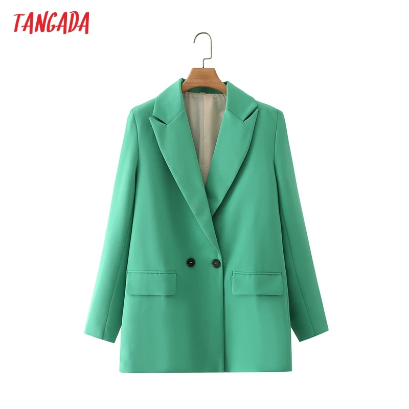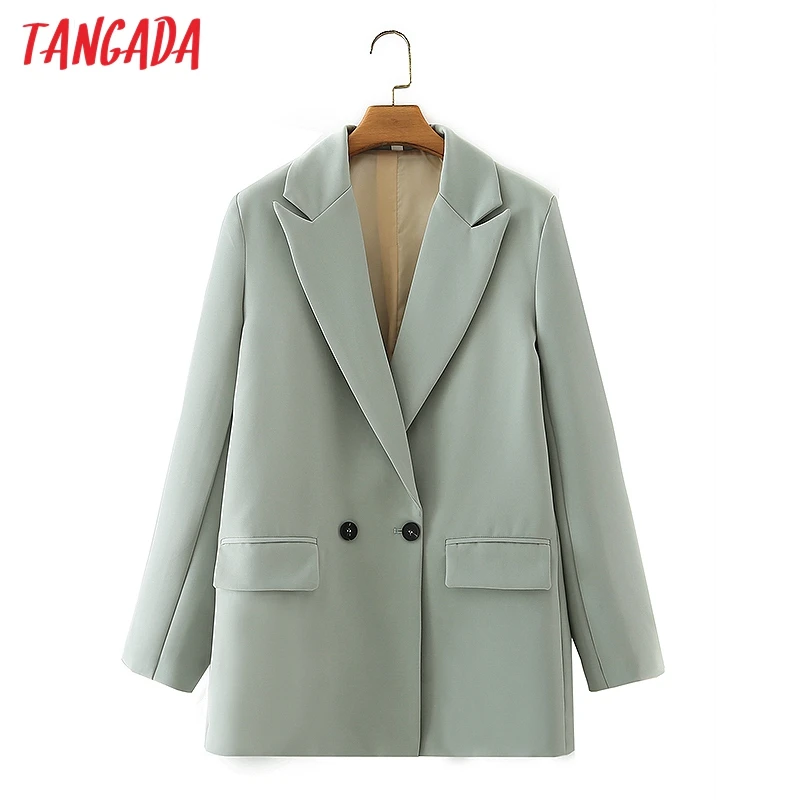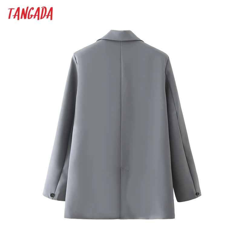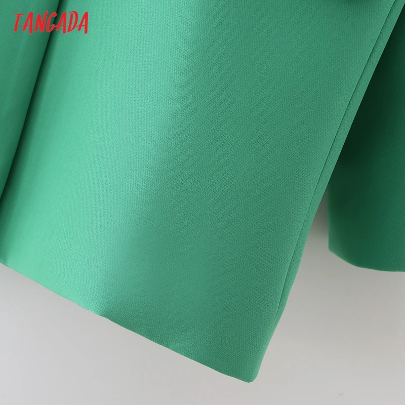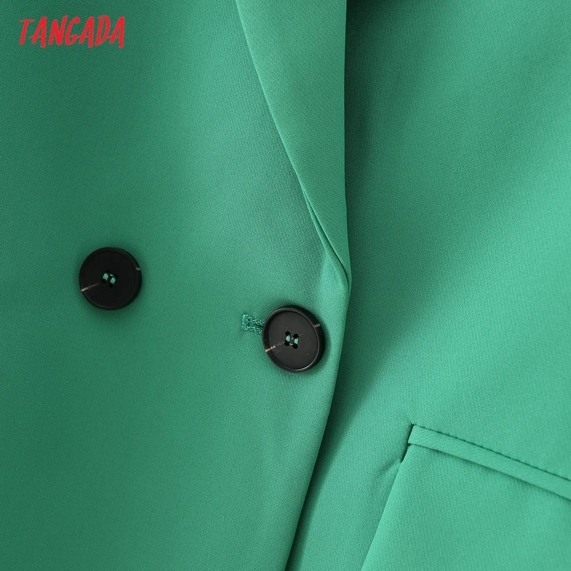Tangada Women Khaki Blazer Coat Vintage Notched Collar Pocket 2021 Fashion Female Casual Chic Tops DA02