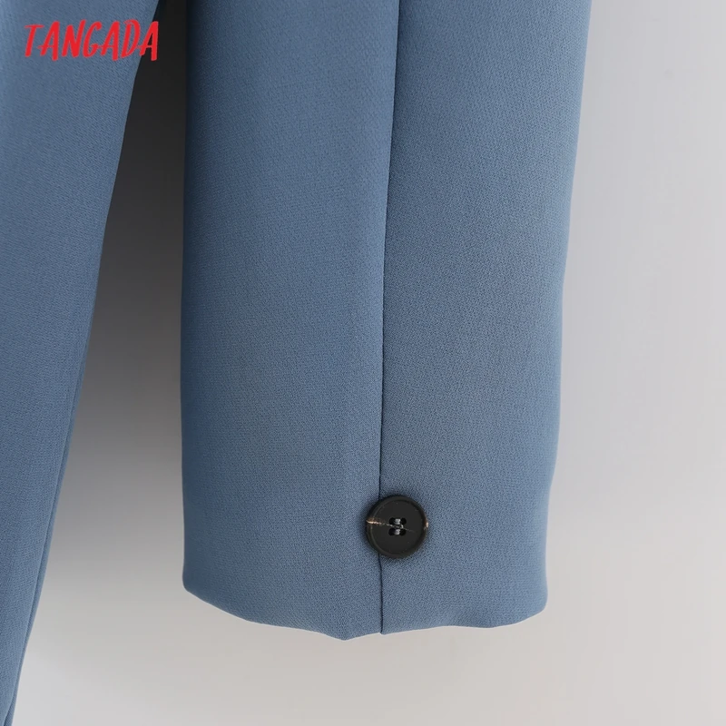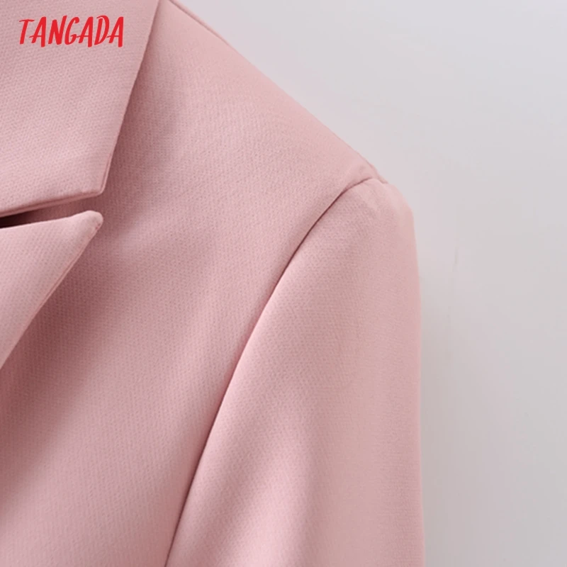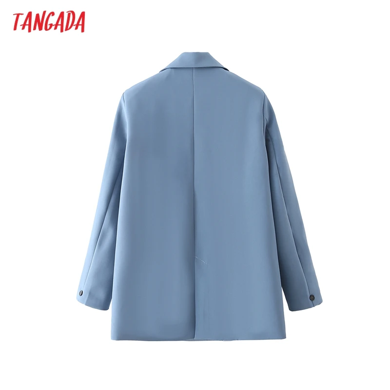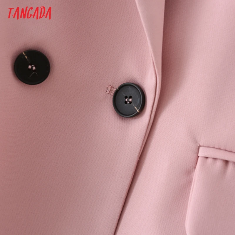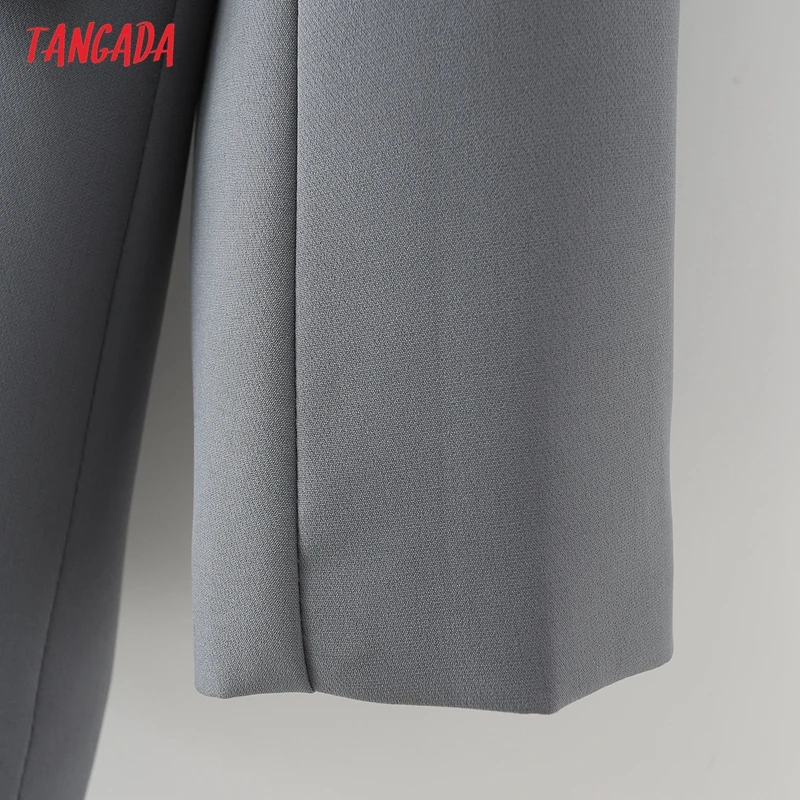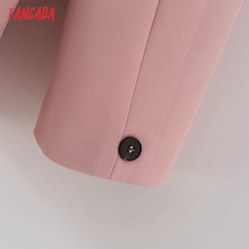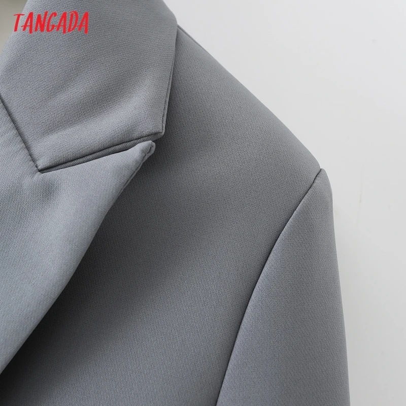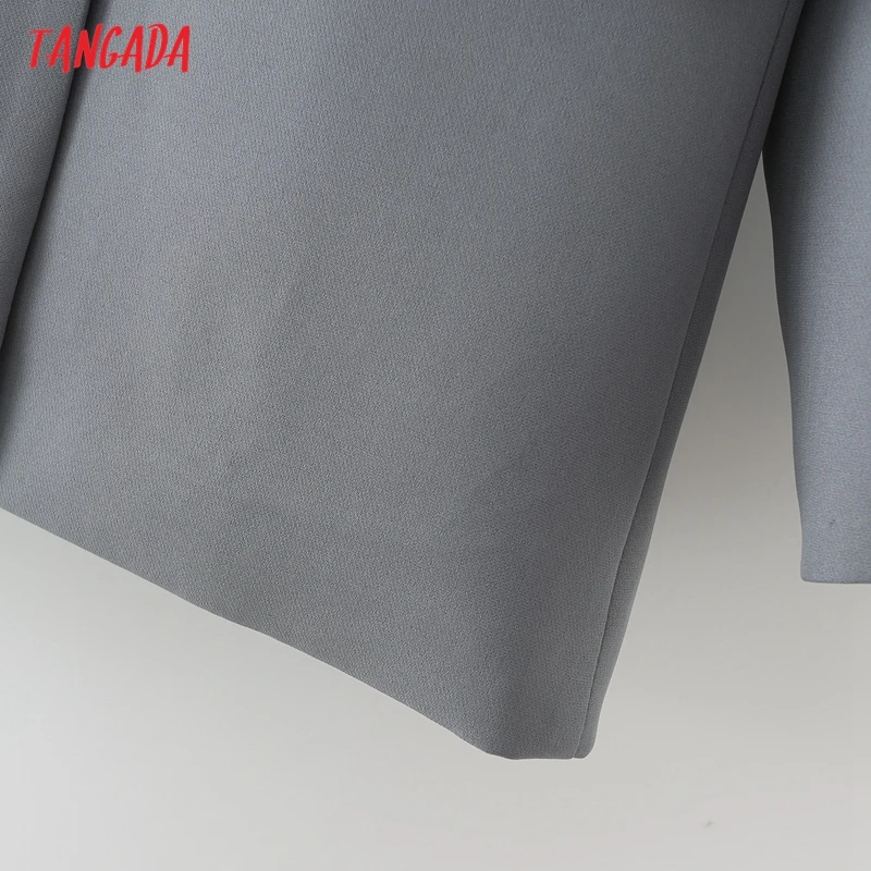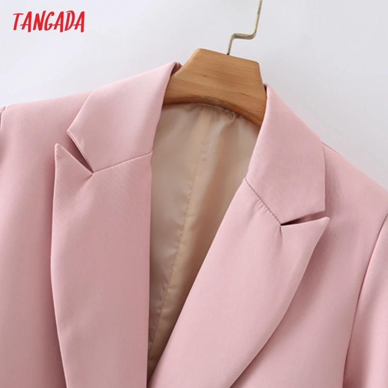 Tangada Women Khaki Blazer Coat Vintage Notched Collar Pocket 2021 Fashion Female Casual Chic Tops DA02