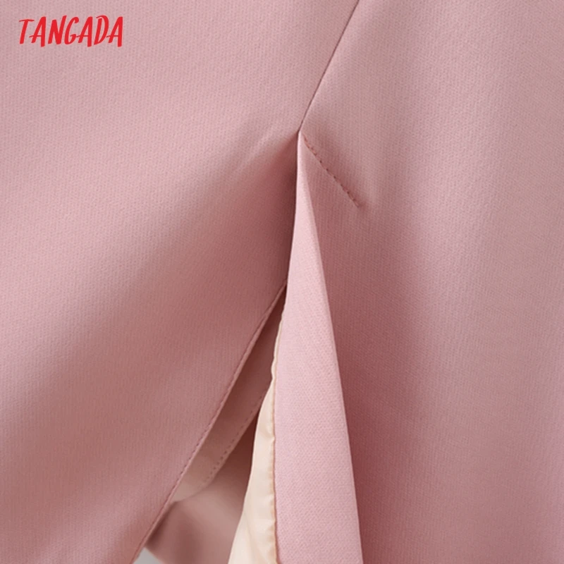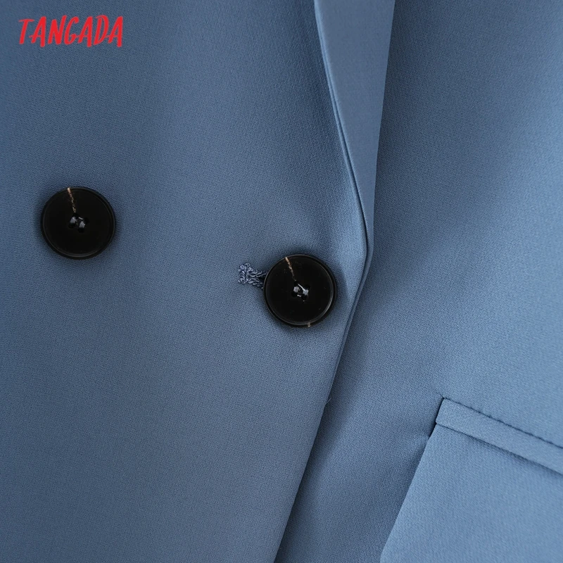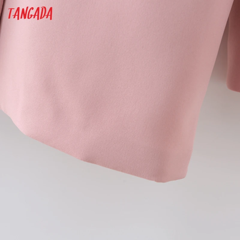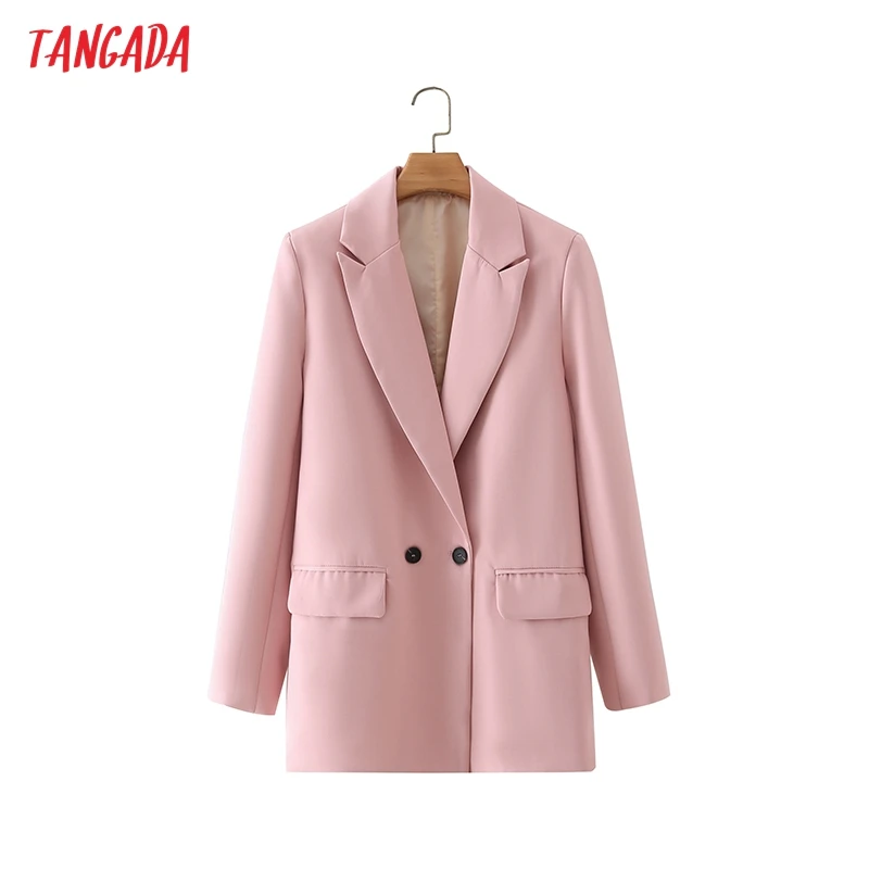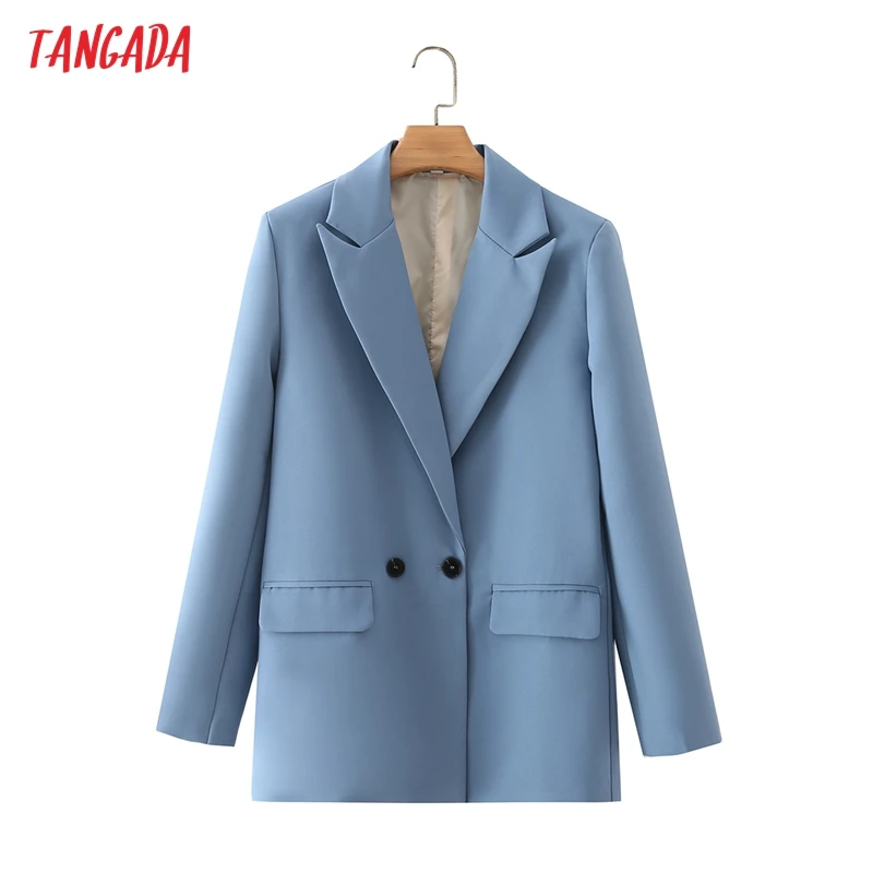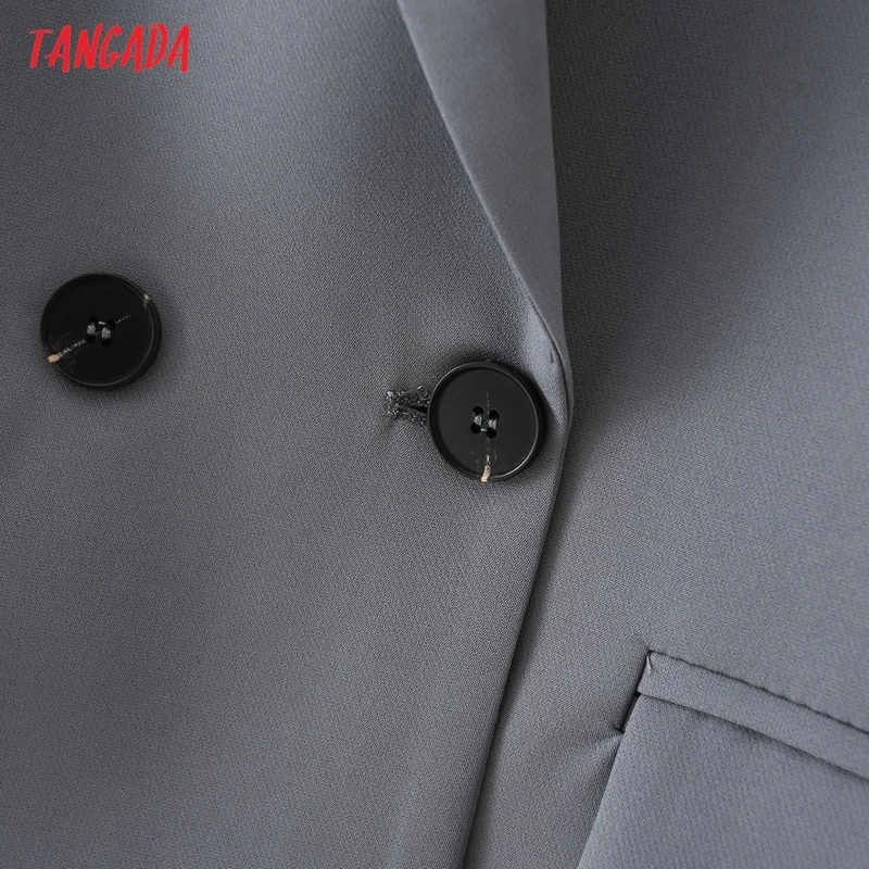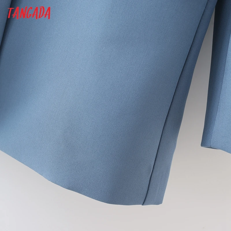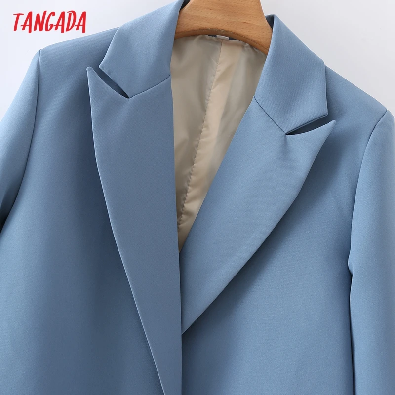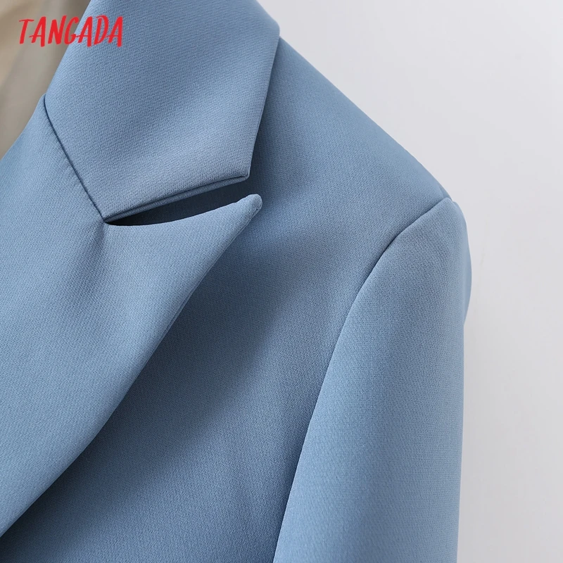 Tangada Women Khaki Blazer Coat Vintage Notched Collar Pocket 2021 Fashion Female Casual Chic Tops DA02