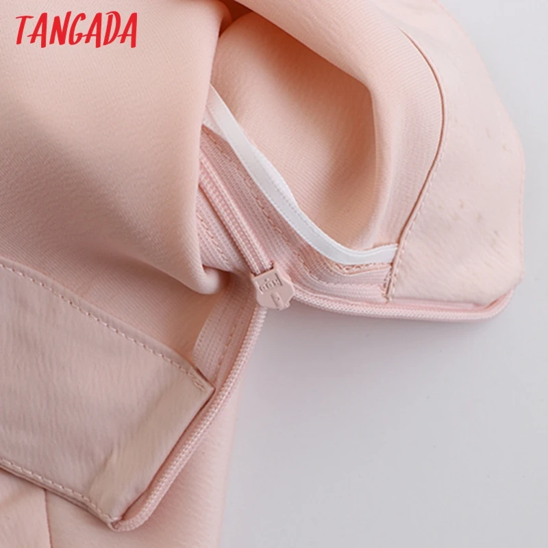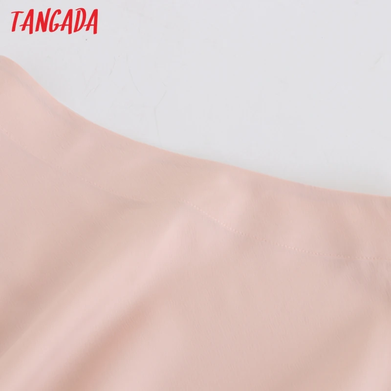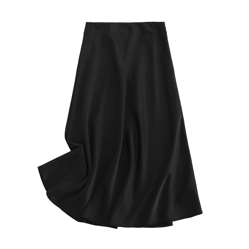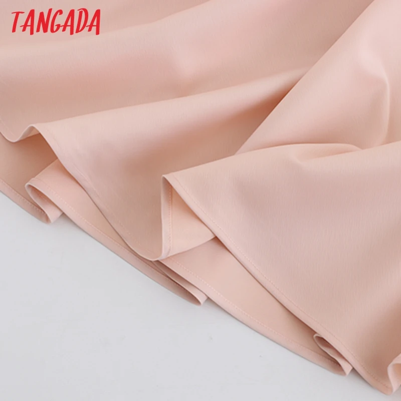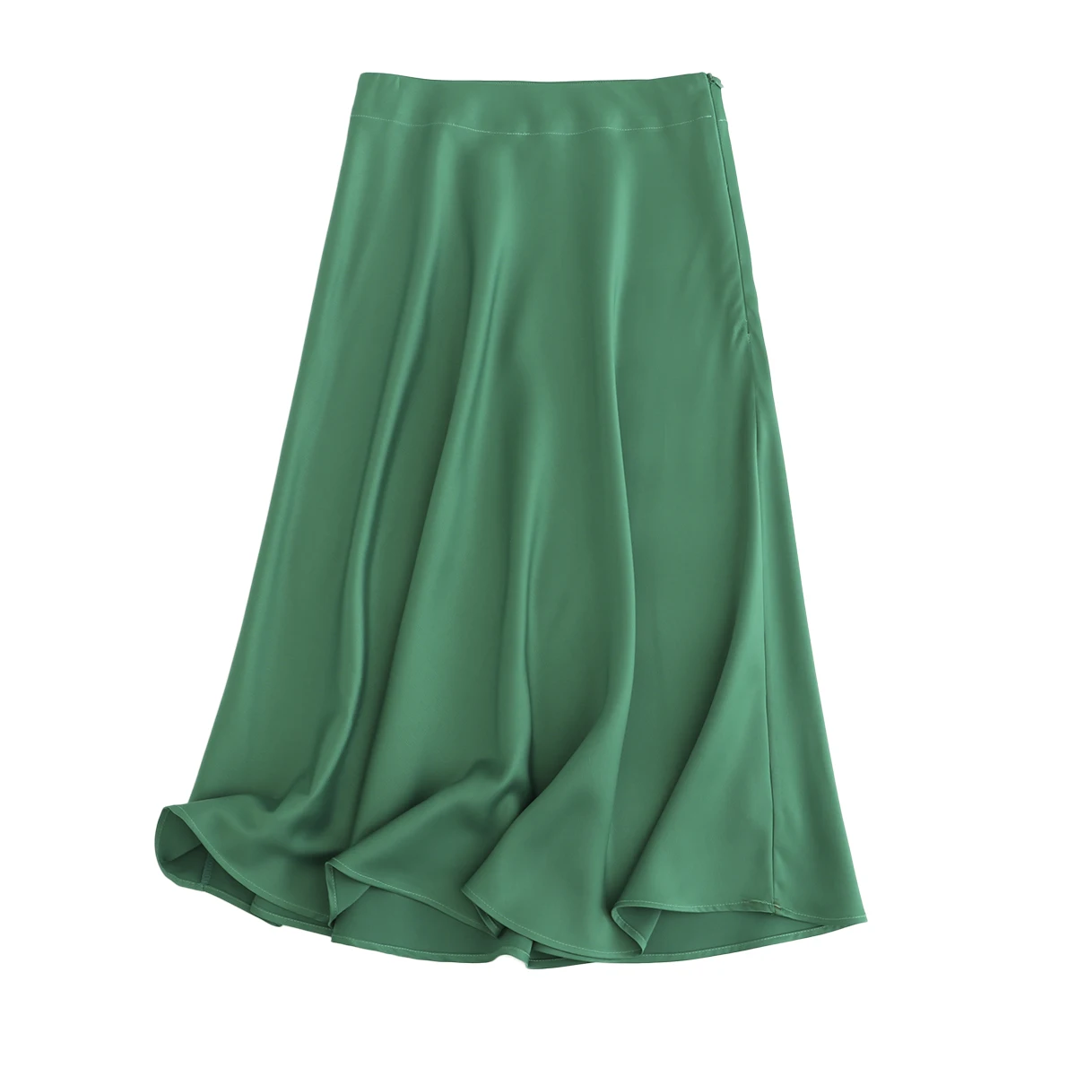 Tangada women solid quality satin midi skirt vintage side zipper office ladies elegant chic A-line skirts 6D18
