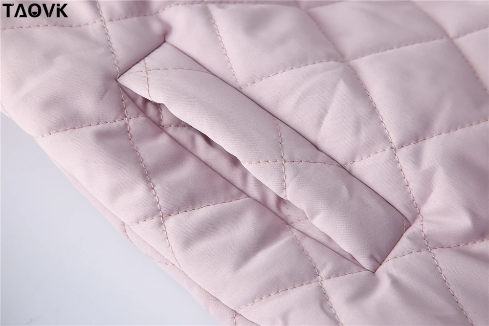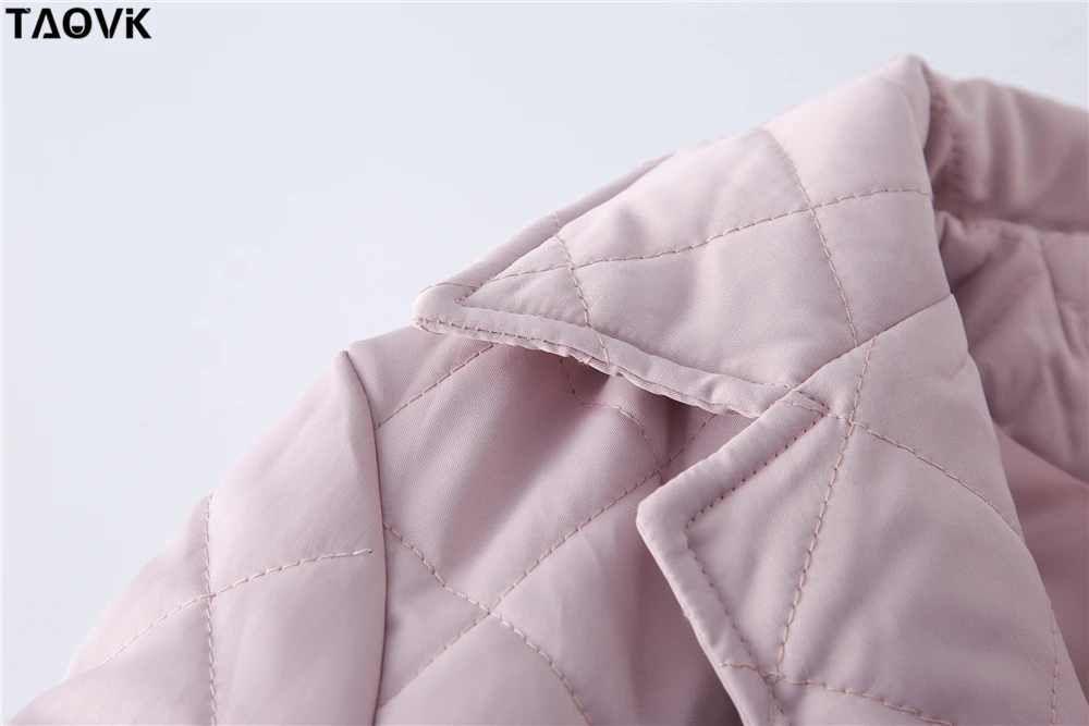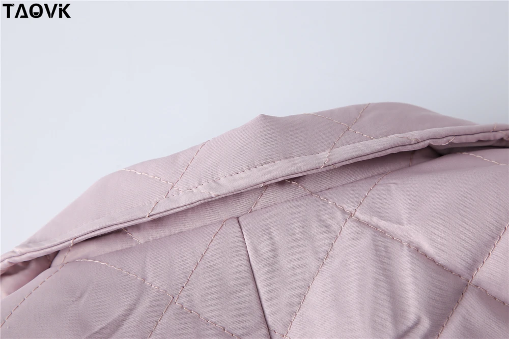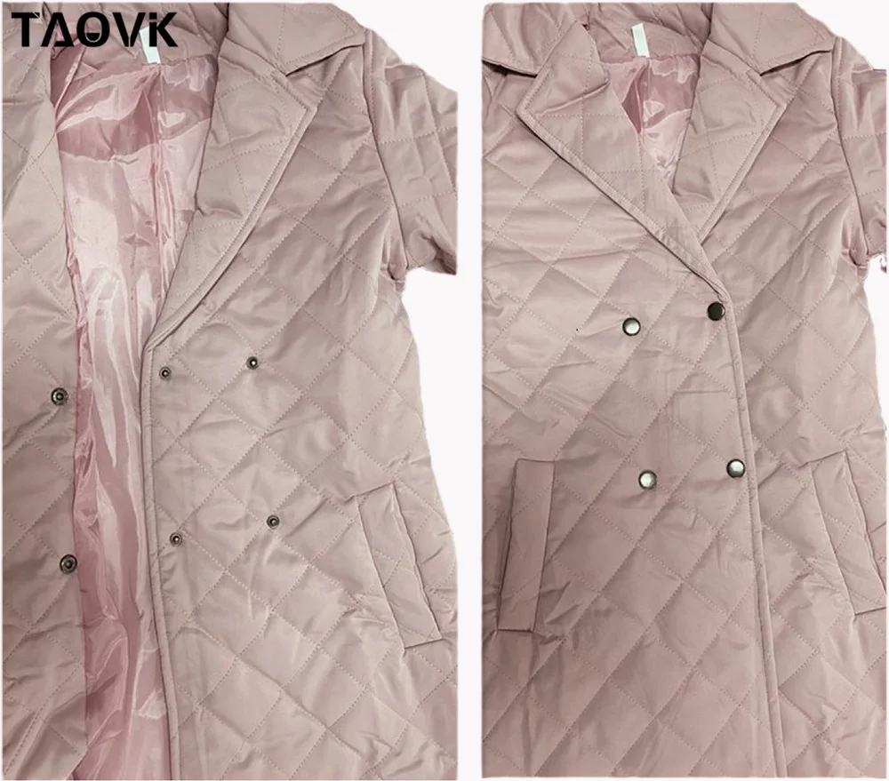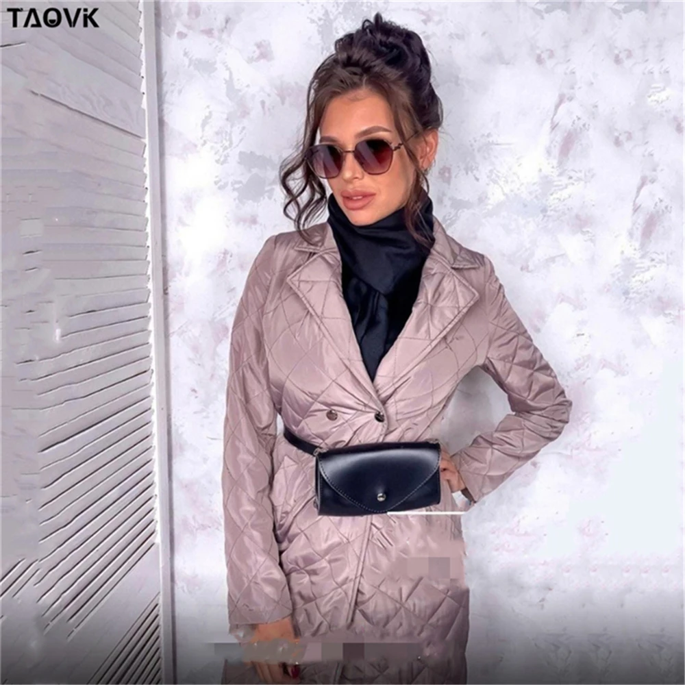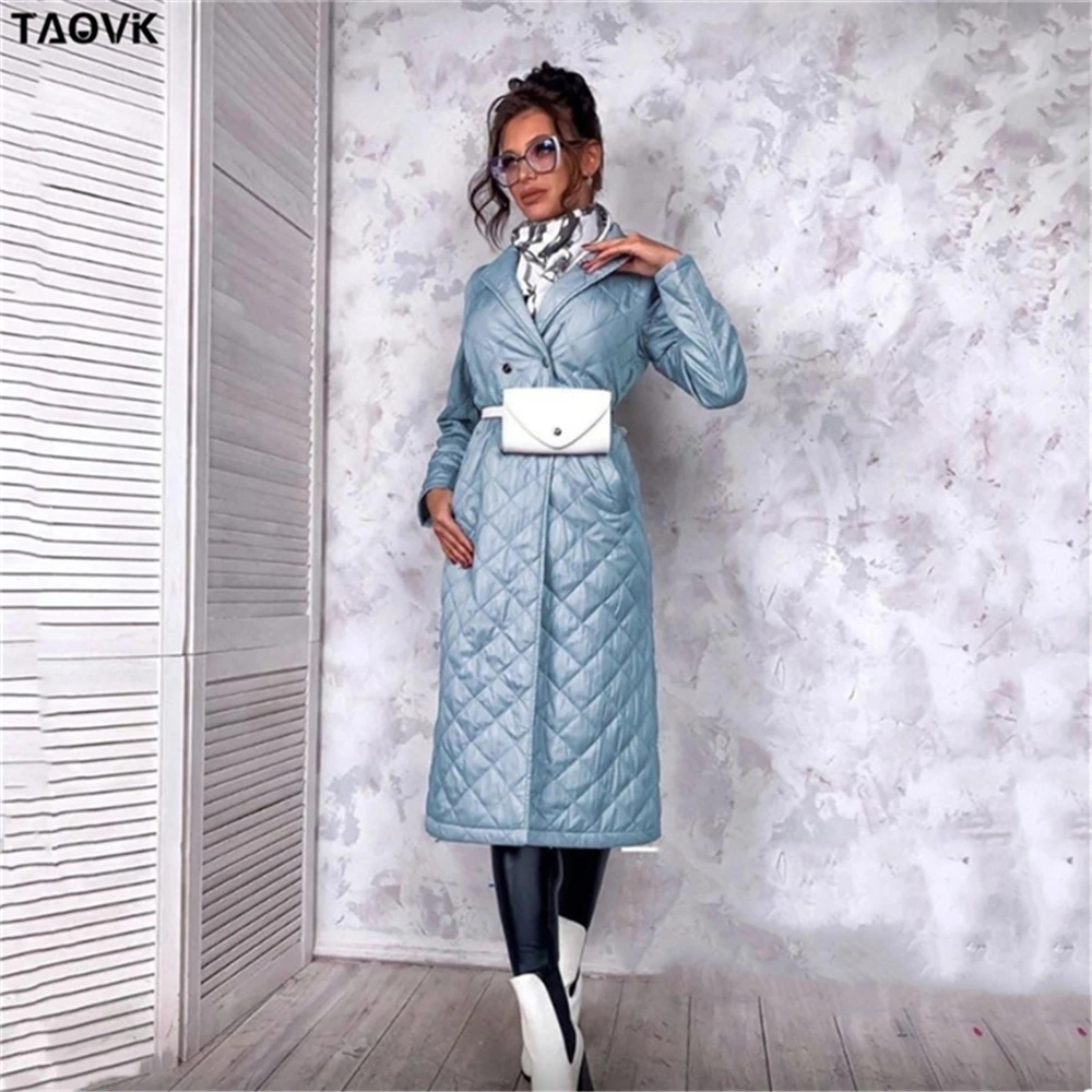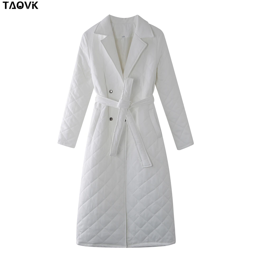 TAOVK Long straight winter coat with rhombus pattern Casual sashes women parkas Deep pockets tailored collar stylish outerwear