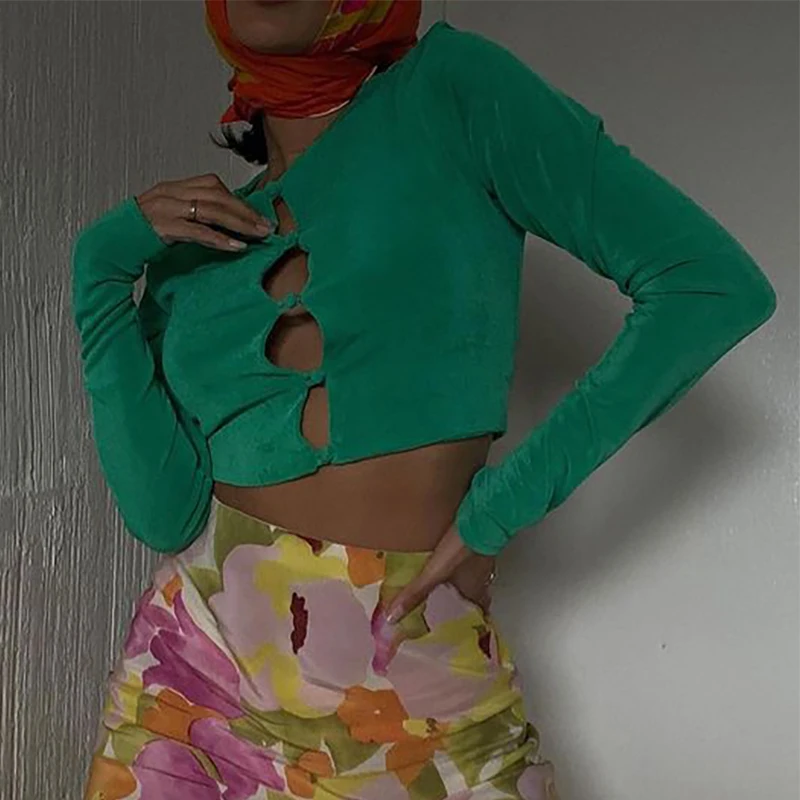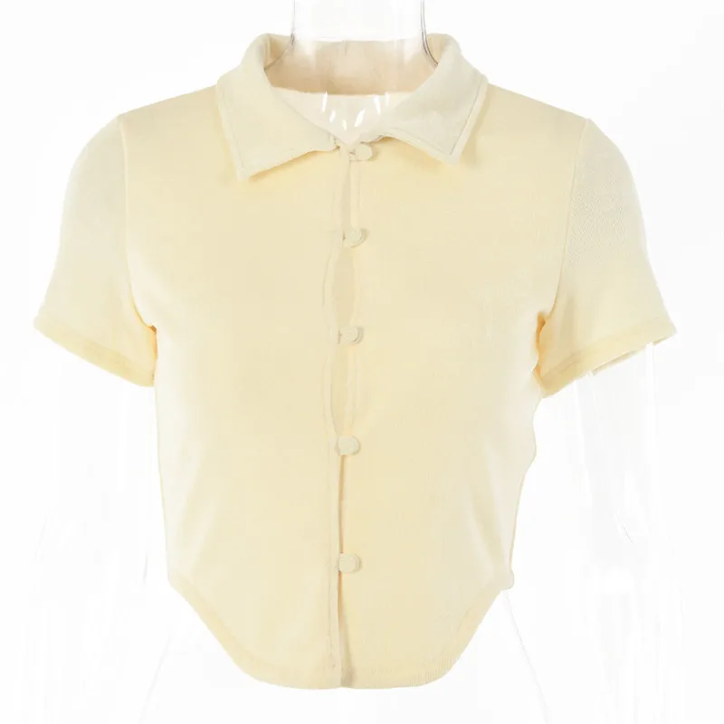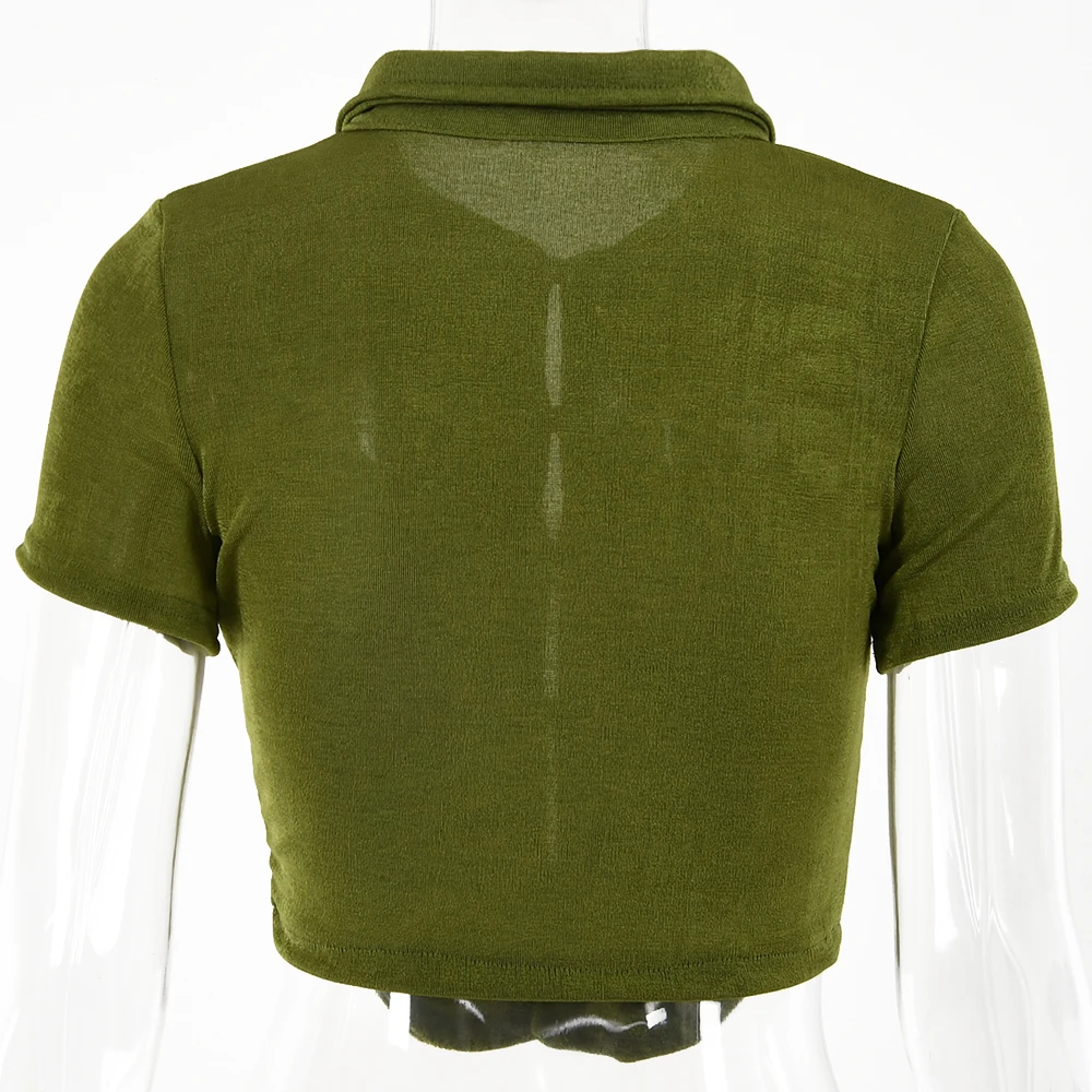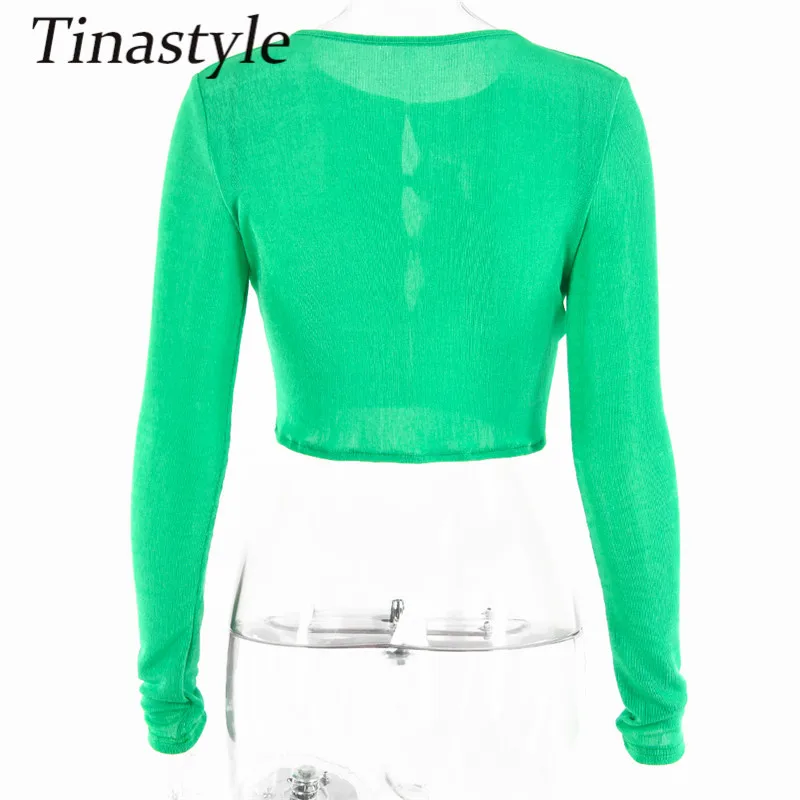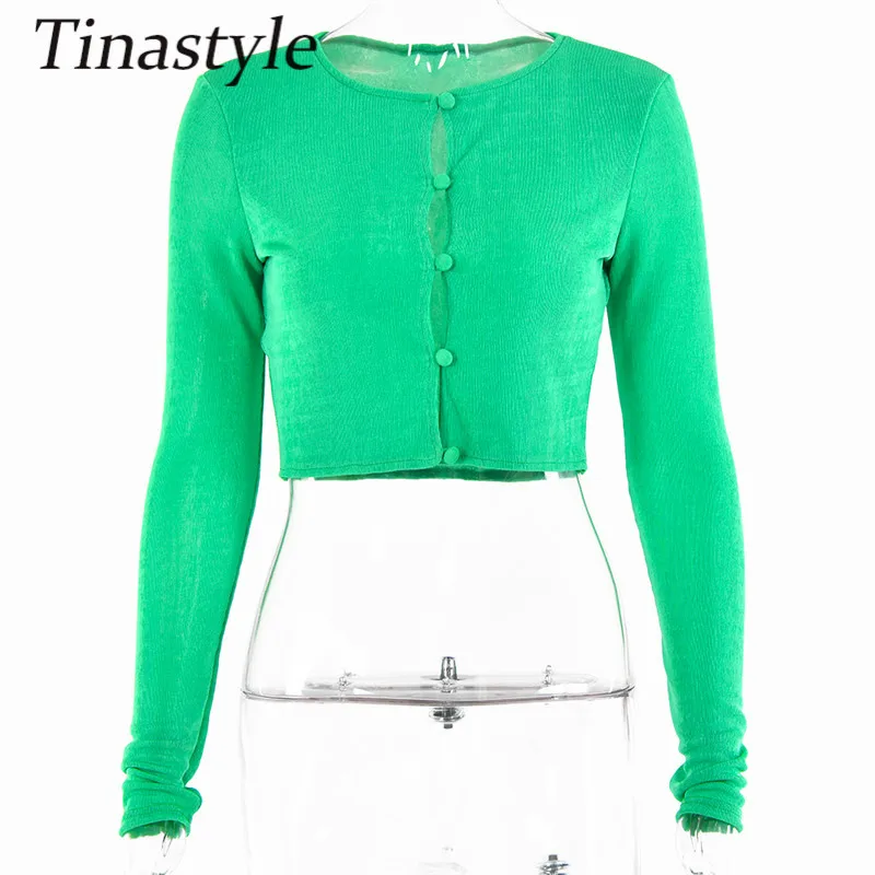 Tinastyle Double Layers Buttons Casual T Shirt Women Long Sleeve Short Summer Crop Top Shirt 2021 New Party T-shirts y2k Tops