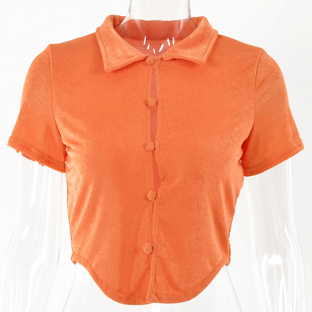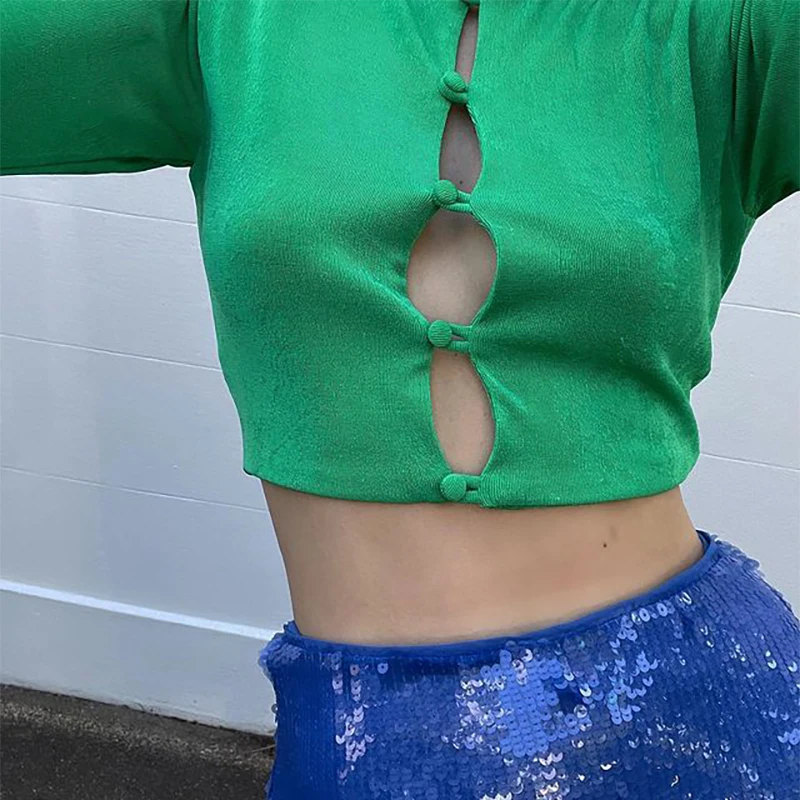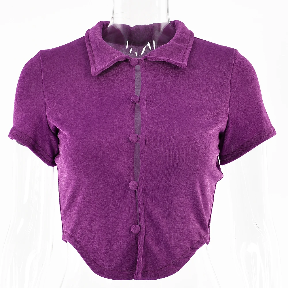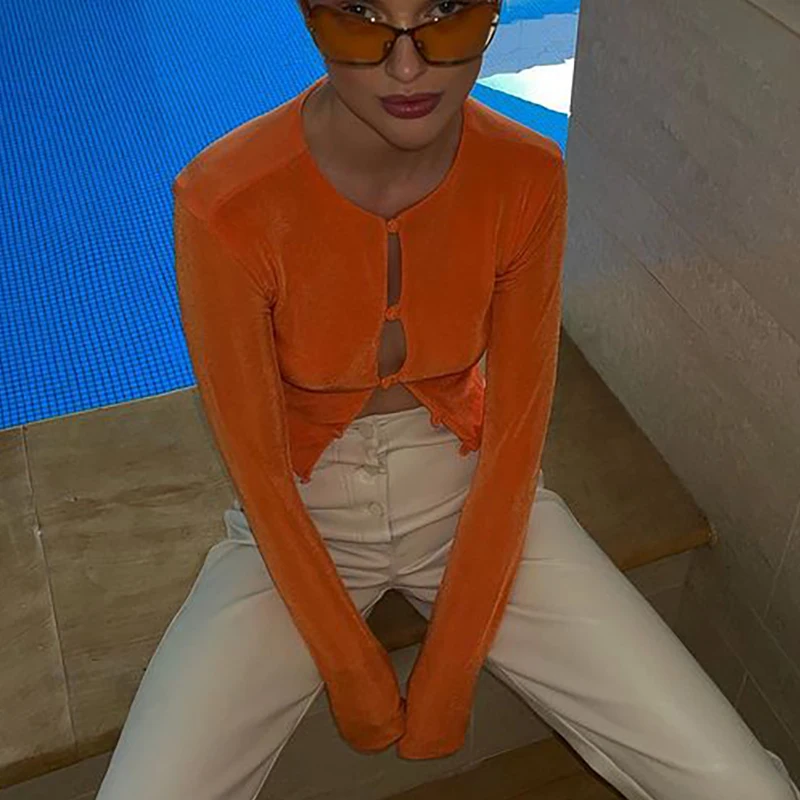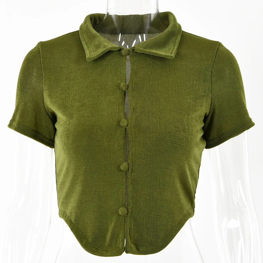 Tinastyle Double Layers Buttons Casual T Shirt Women Long Sleeve Short Summer Crop Top Shirt 2021 New Party T-shirts y2k Tops