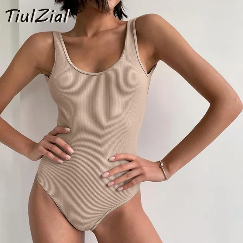 TiulZial Off Shoulder Casual Bodysuit Women Summer Ribbed Knitted Bodysuit For Woman Backless Black White Body Female Top Lady