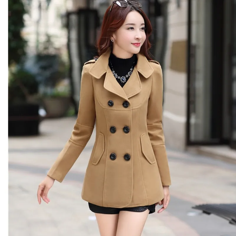 UHYTGF Fashion Winter Jacket Women’s Double Breasted Short Wool Coat Solid Color Korean Slim Female Woolen Jacket Plus Size 1150