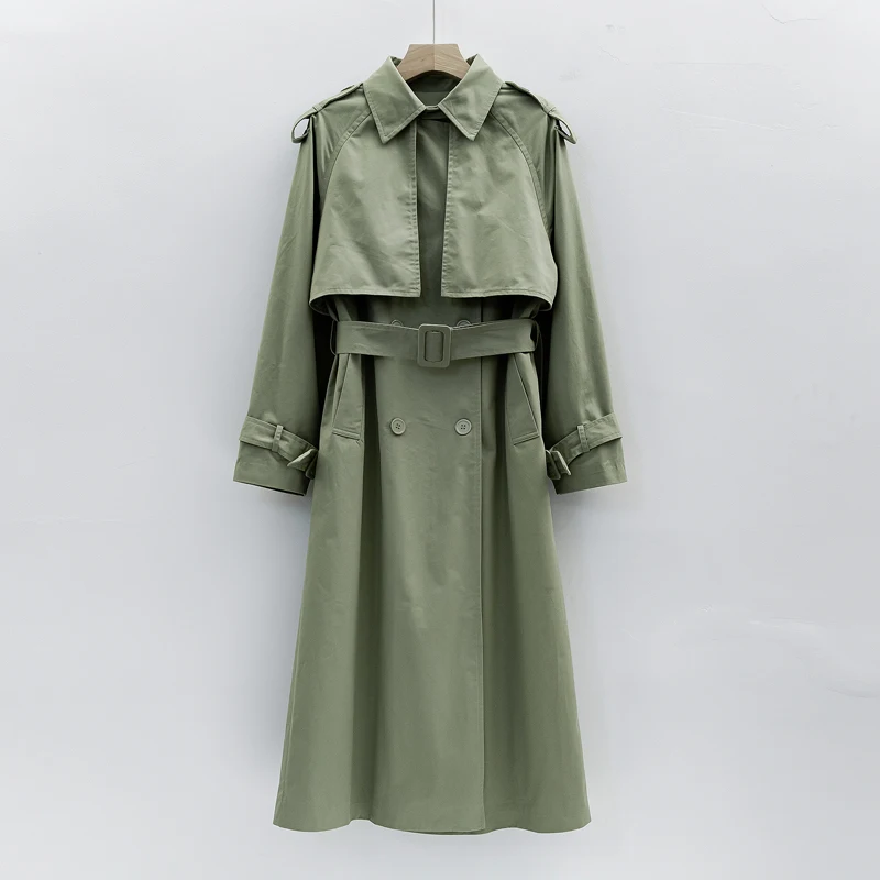 UK Brand new Fashion 2021 Fall /Autumn Casual Double breasted Simple Classic Long Trench coat with belt Chic Female windbreaker