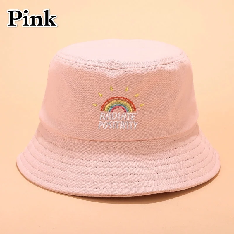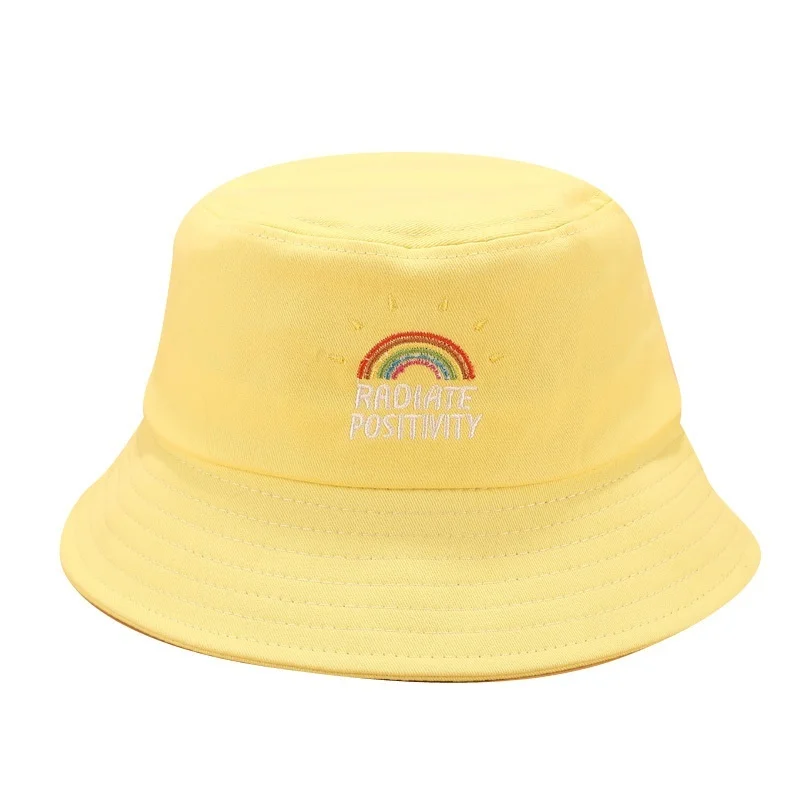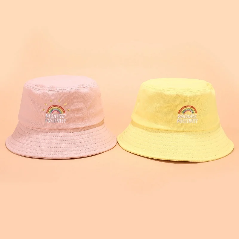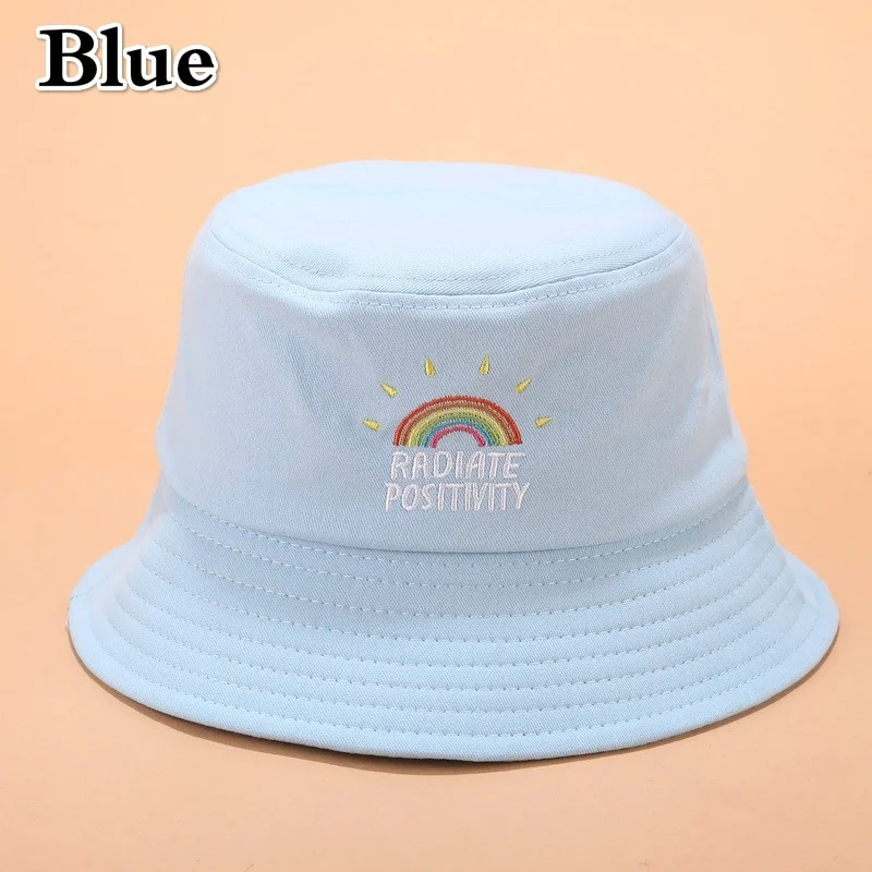 Unisex Foldable Embroidered Bucket Hat Rainbow Print Outdoor Sunscreen Cap Fisherman Hats