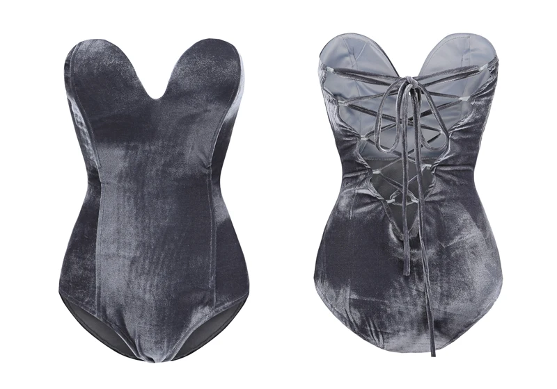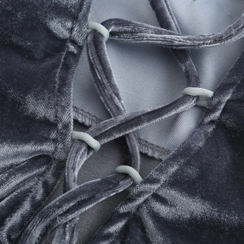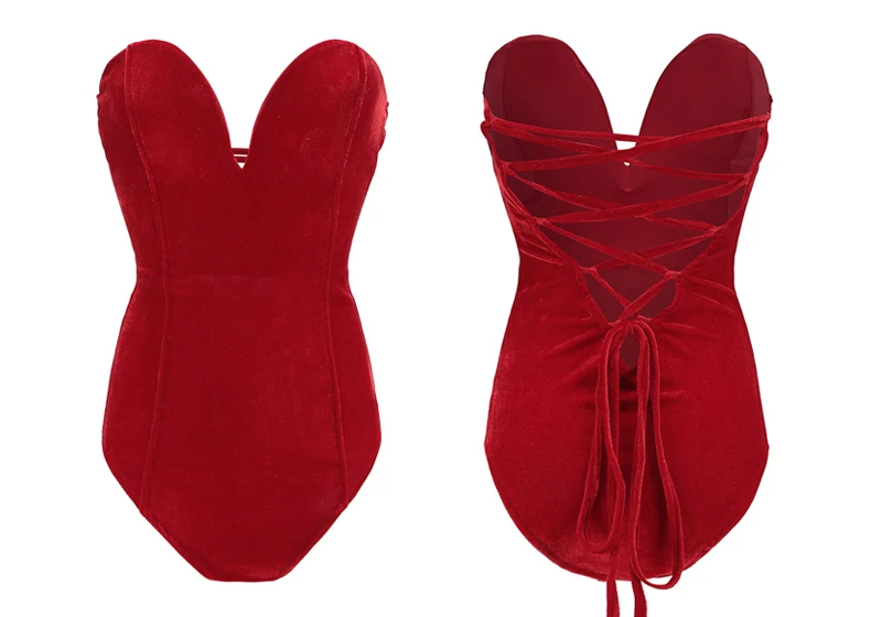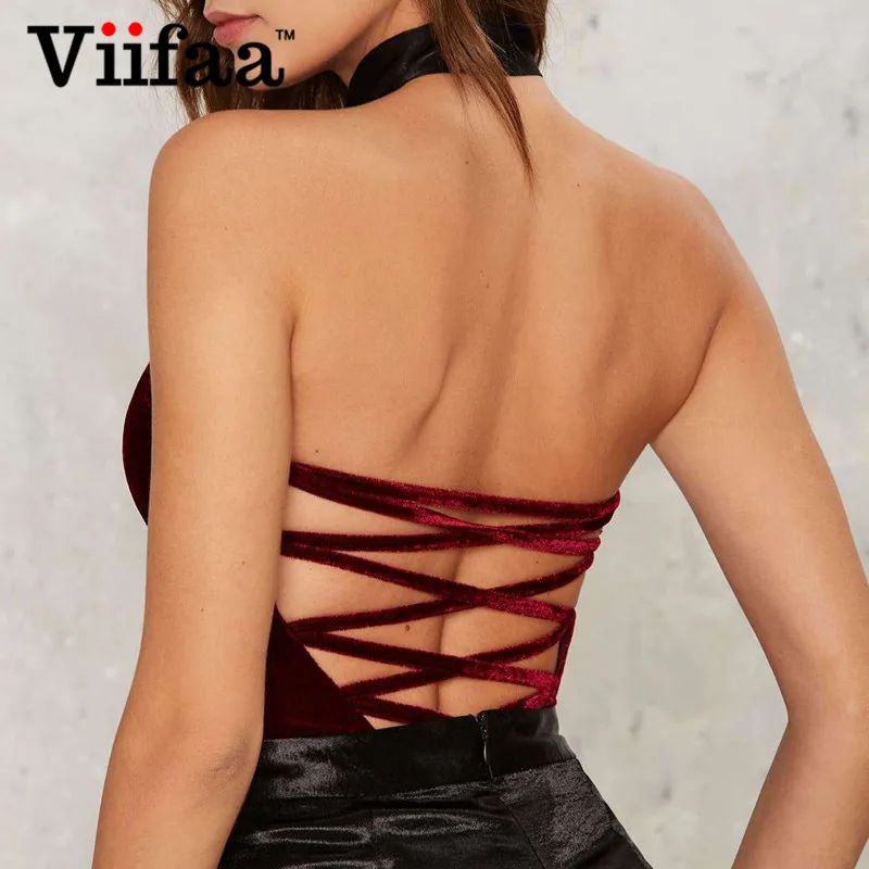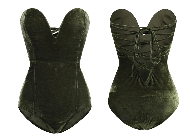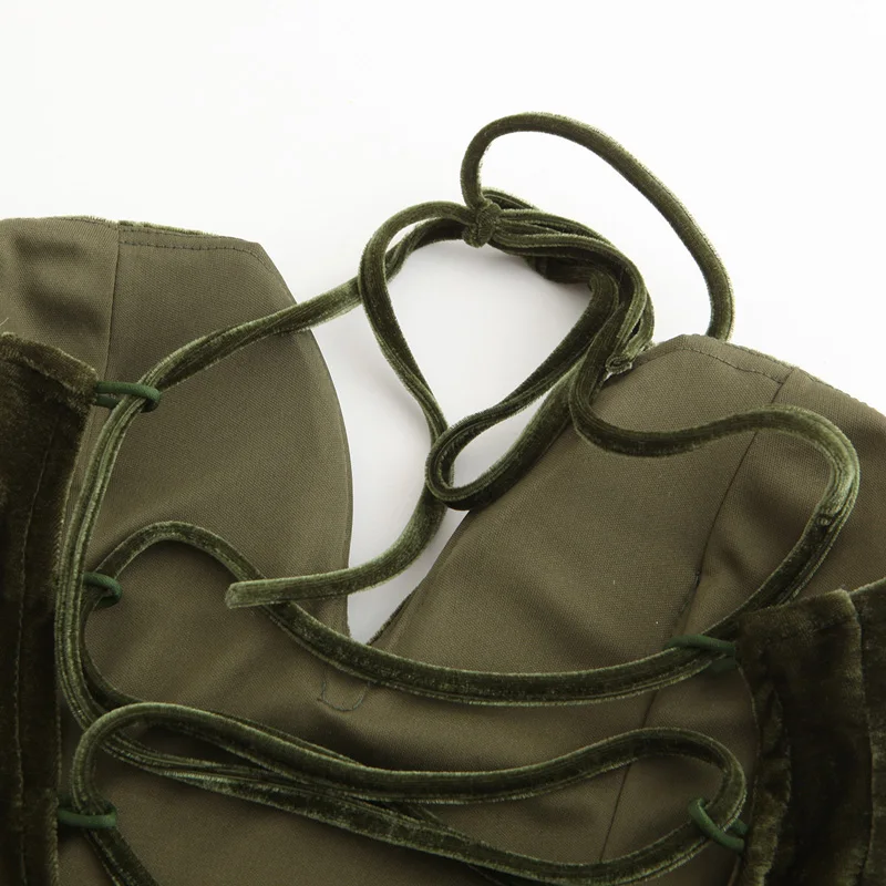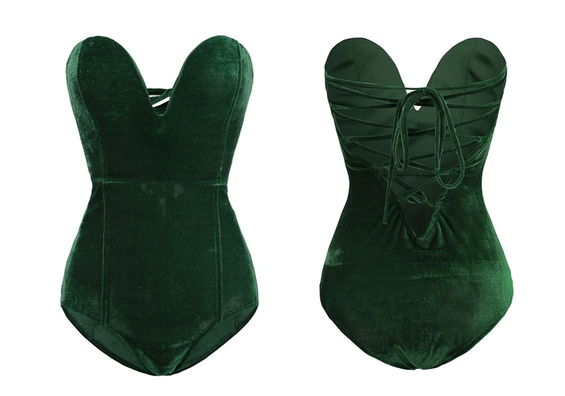 Viifaa Green Backless Sexy Velvet Bodysuit Women Lace-Up Elegant Night Out Clubwear Off Shoulder Party V Neck Streetwear Bodys
