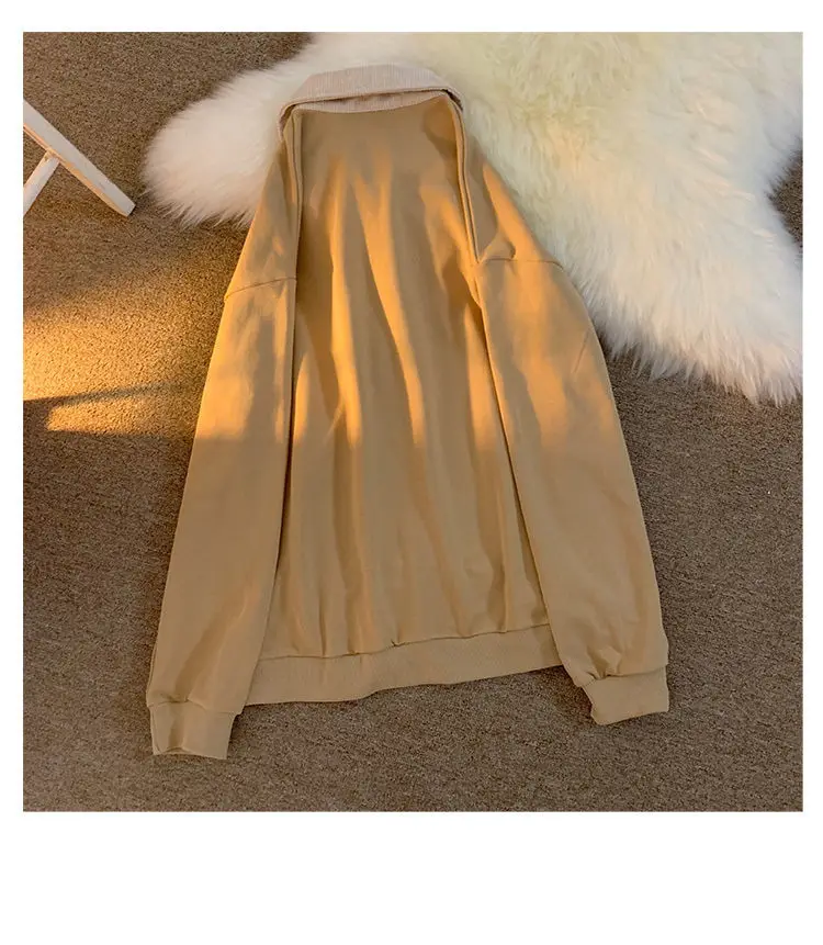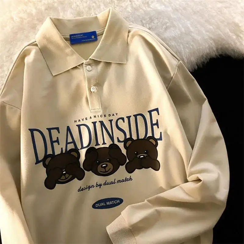 Vintage POLO Collar Letters Print Oversized Sweatshirt Women for Teen Girls Harajuku New Spring Korean Kawaii Clothes Pullovers