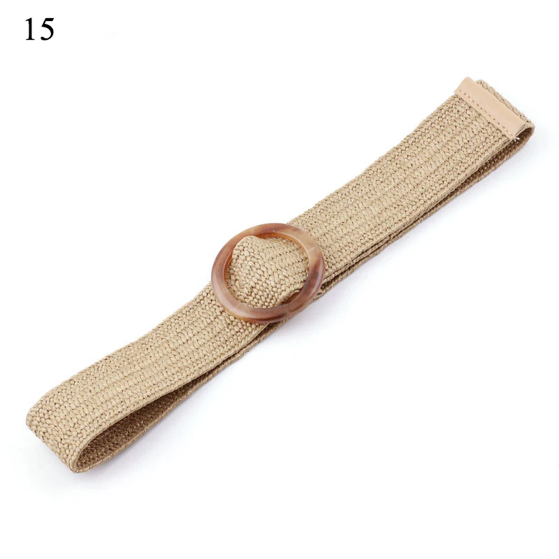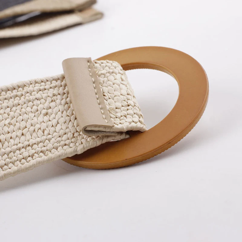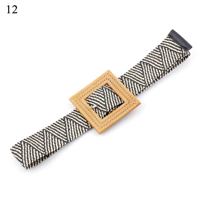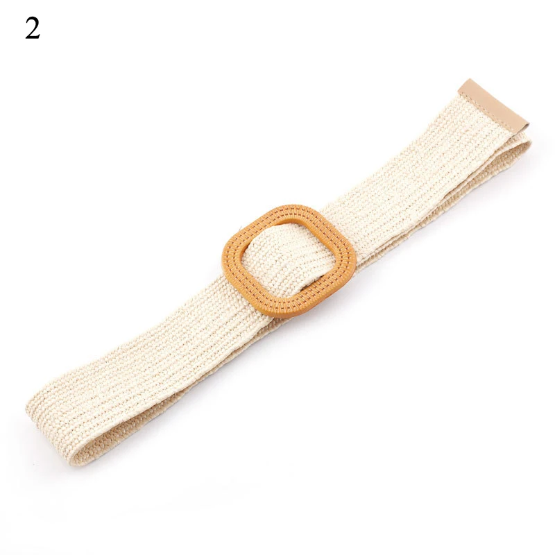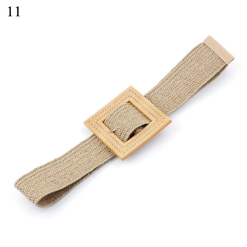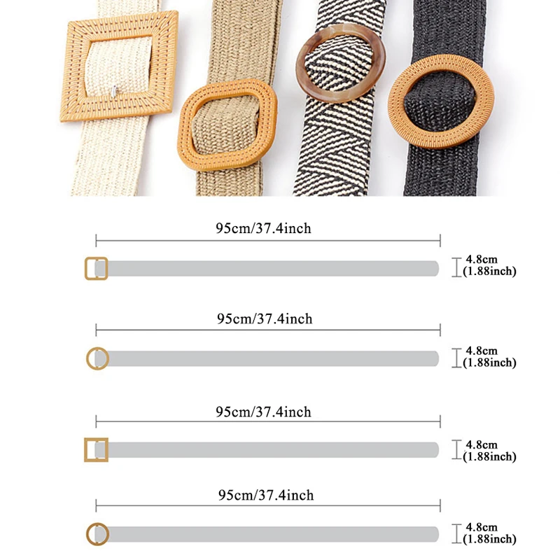 Boho Unisex Wide Straw Braided Woven Waist Belt Casual Round Square Buckle Belt