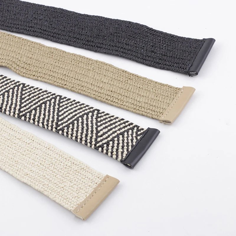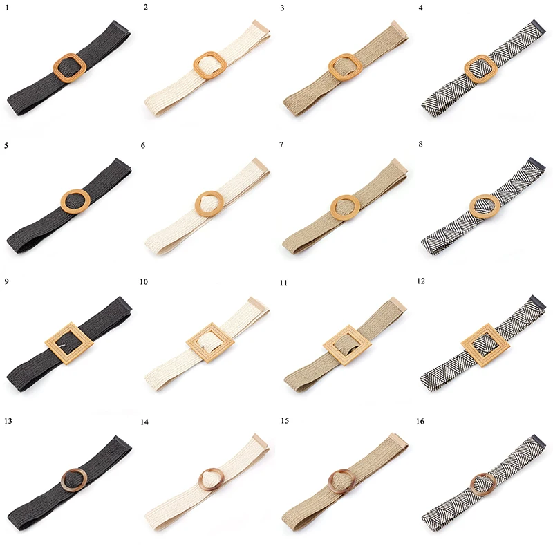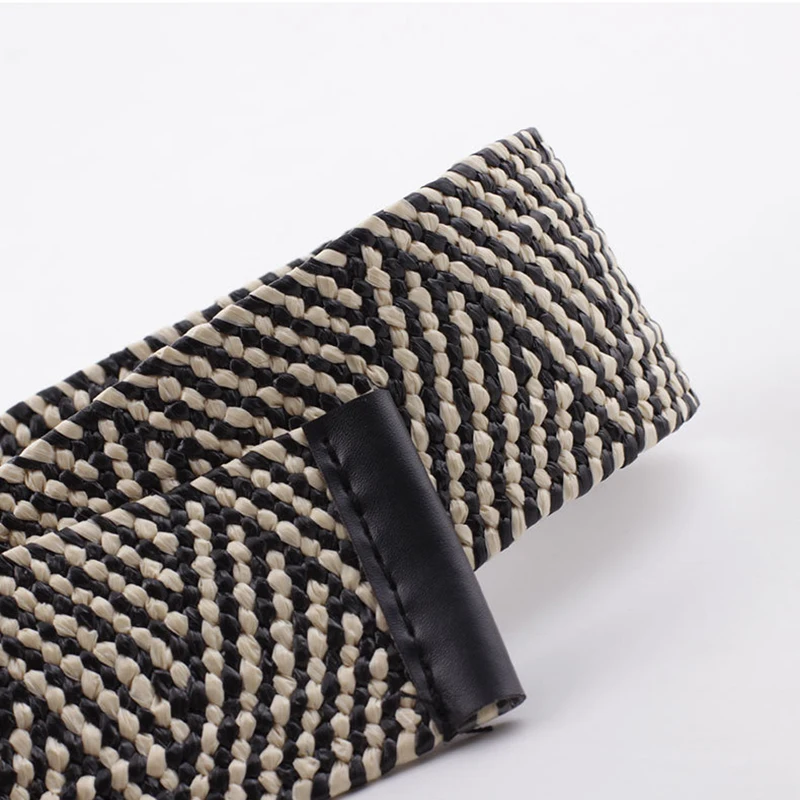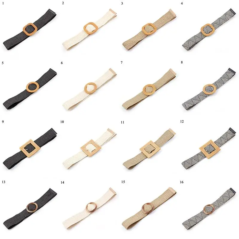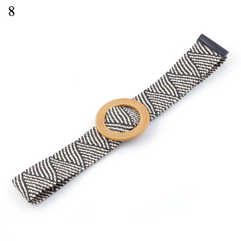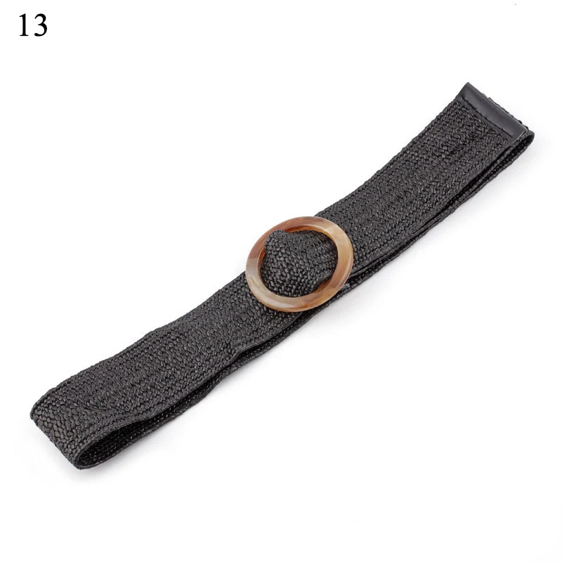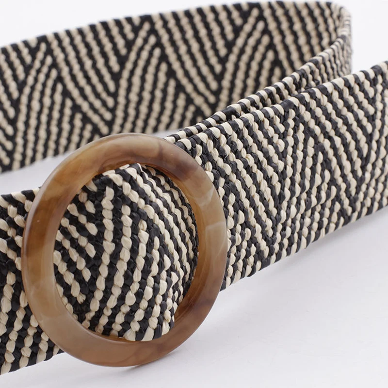 Boho Unisex Wide Straw Braided Woven Waist Belt Casual Round Square Buckle Belt