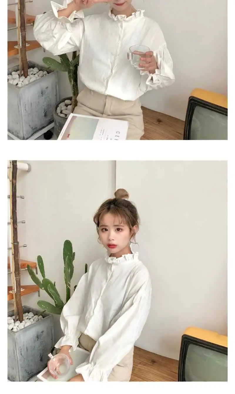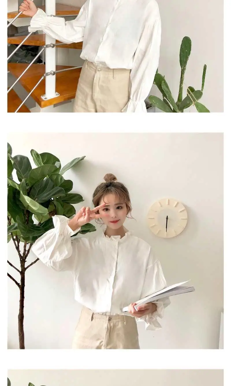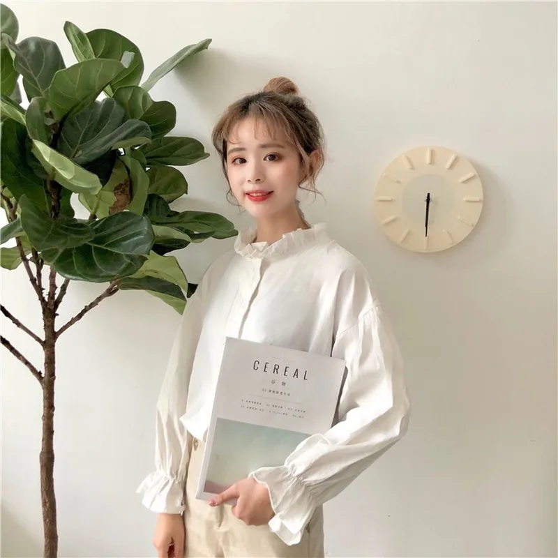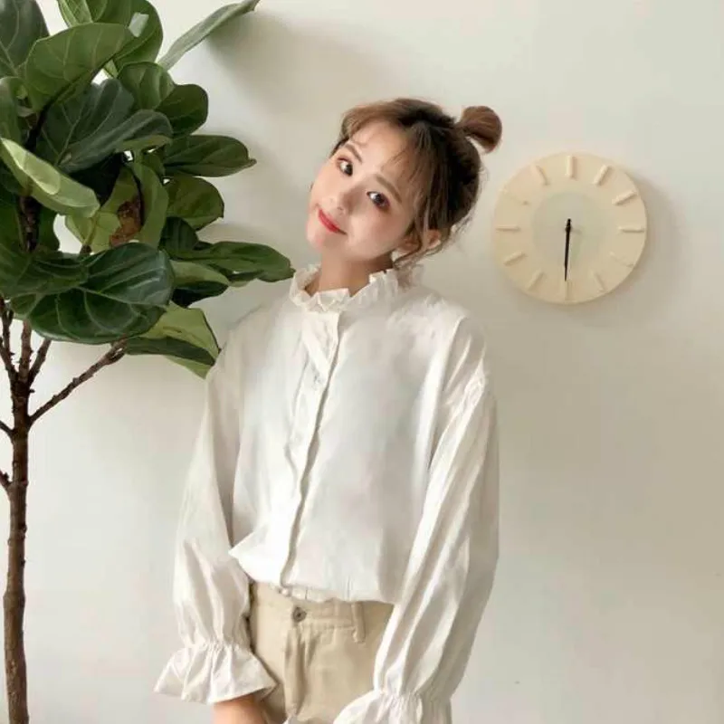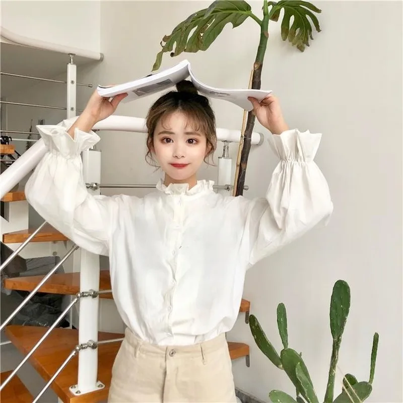 White Blouse Women Shirts Harajuku Clothes Womens Tops and Blouses All Match Flare Sleeve Korean Style New Fashion Ulzzang Chic