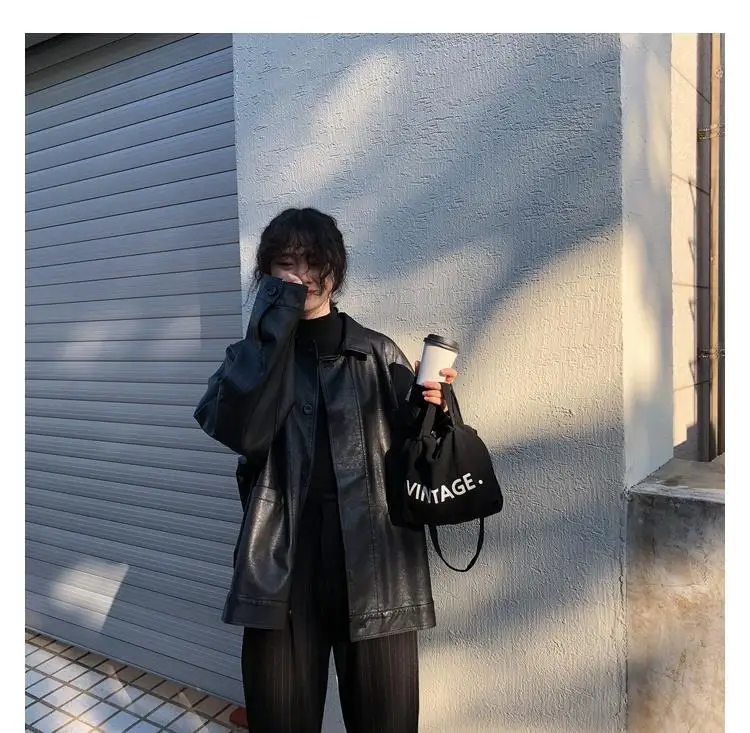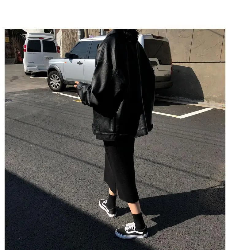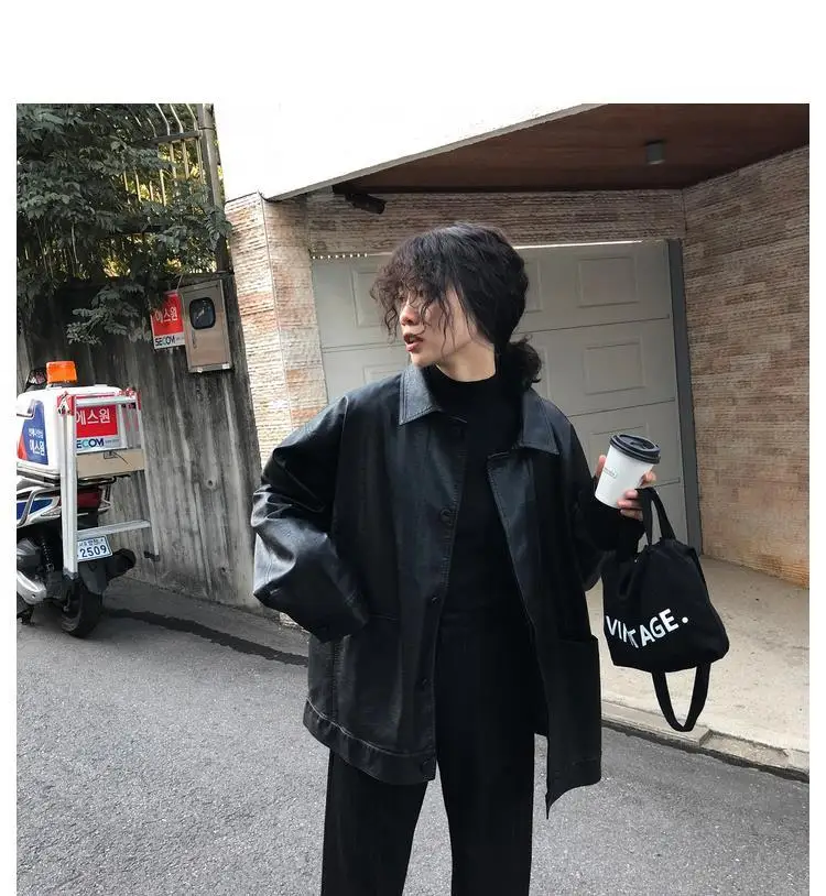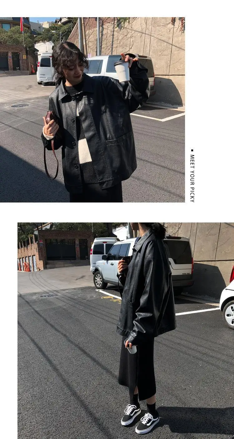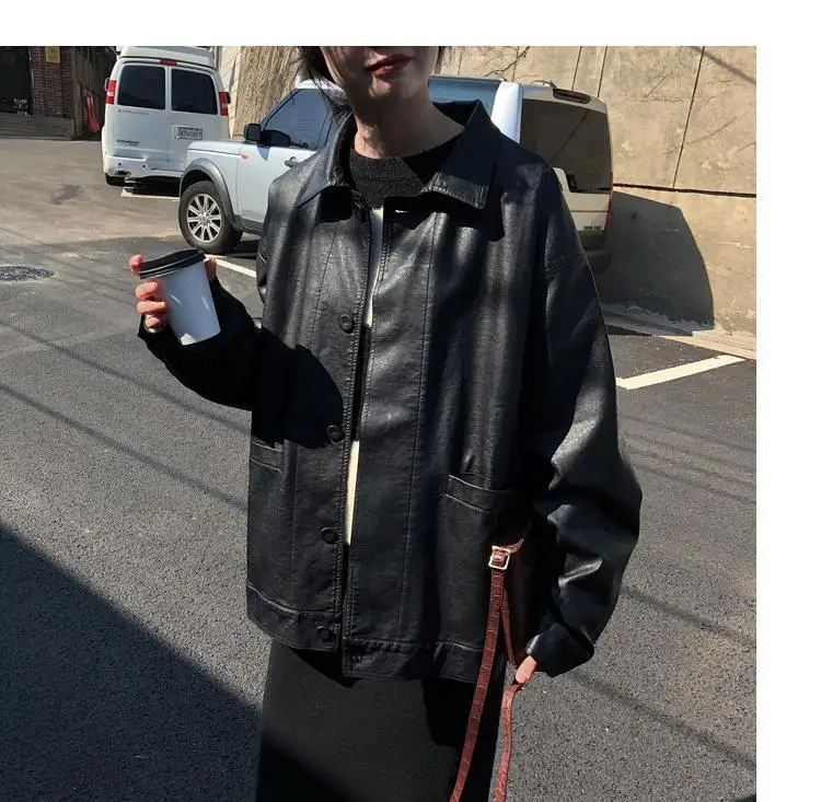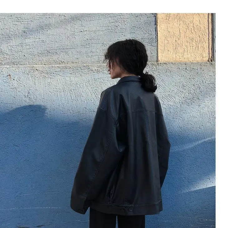 Winter Black Leather Jacket Women Korean Thin Loose Moto Jacket Female 2021 Spring Fashion Streetwear Lady Outerwear Biker Coats