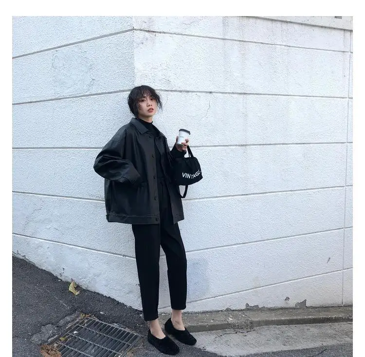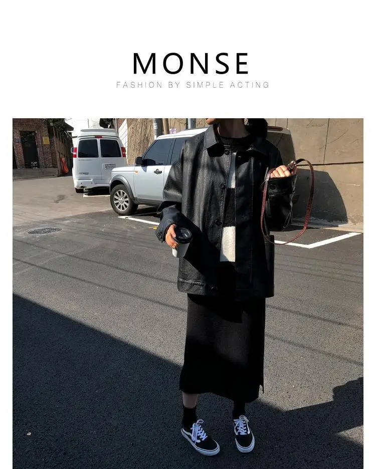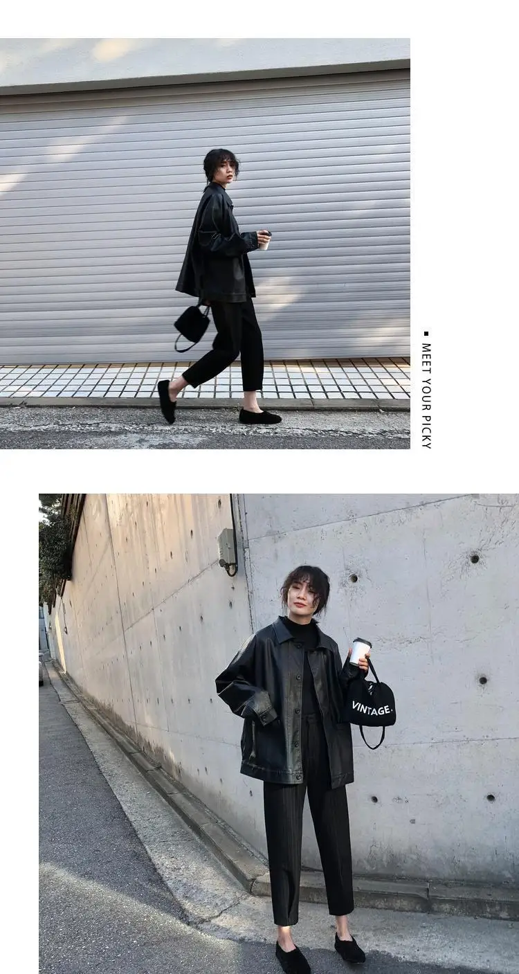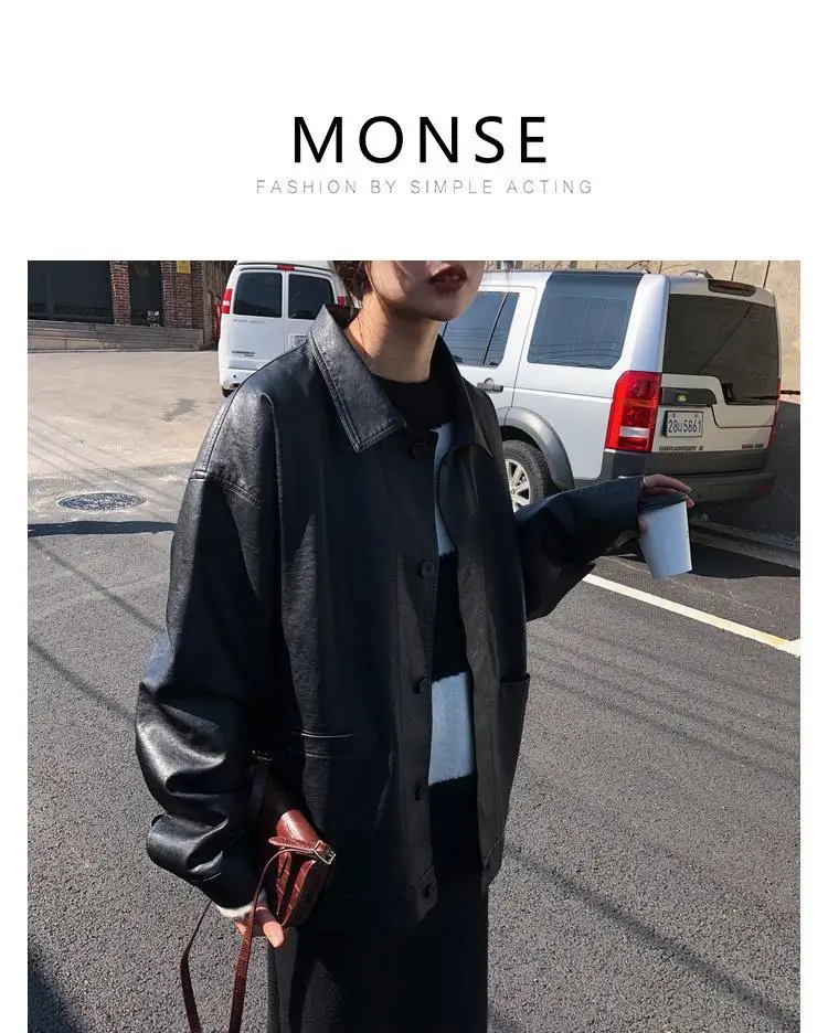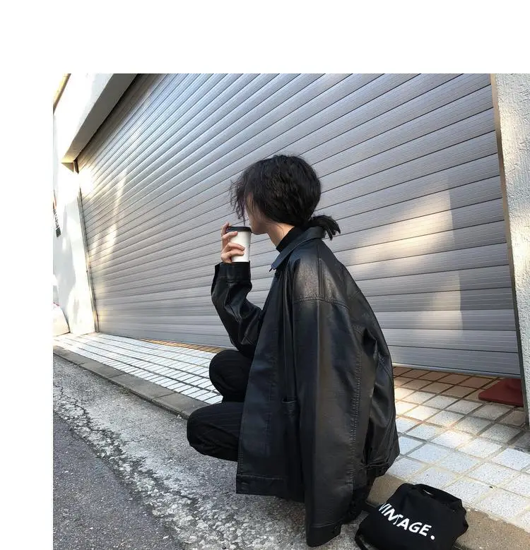 Winter Black Leather Jacket Women Korean Thin Loose Moto Jacket Female 2021 Spring Fashion Streetwear Lady Outerwear Biker Coats
