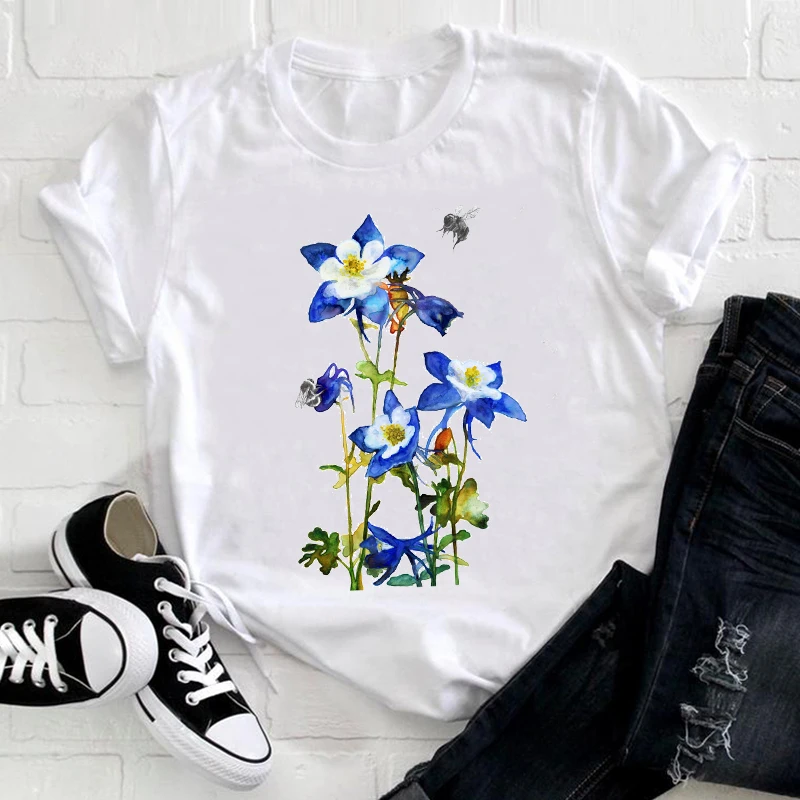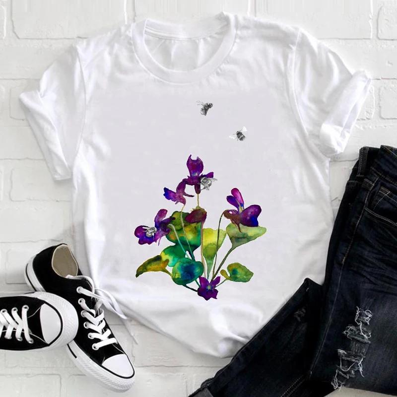 Women 2021 Feather Bird Short Sleeve Printing Spring Fashion Lady Clothes Print Tshirt Female Tee Top Ladies Graphic T-shirt