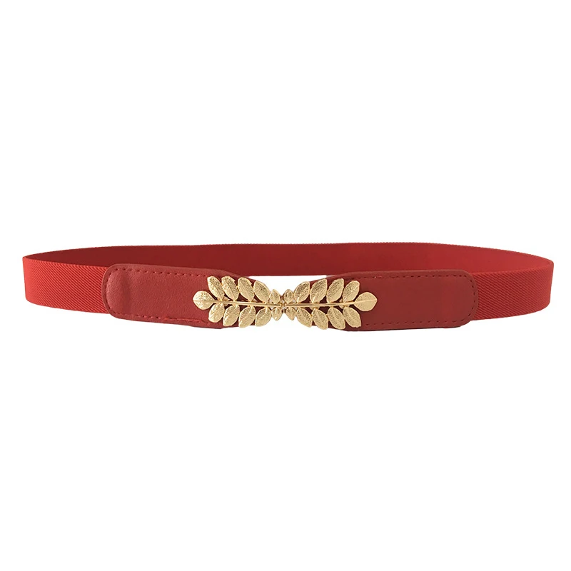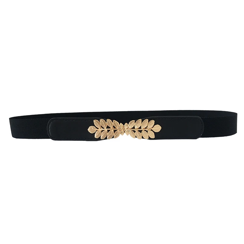 Women belt Elastic Waistband Thin Stretch Wrap Buckle Waist Belt Elegant Cummerbunds Fashion Leaf Belt for Dress Accessories