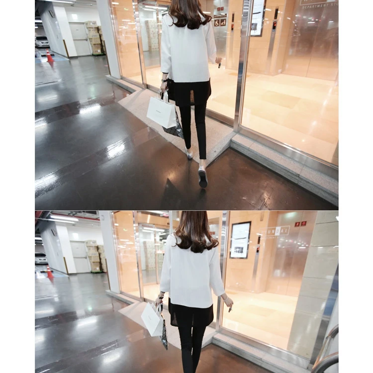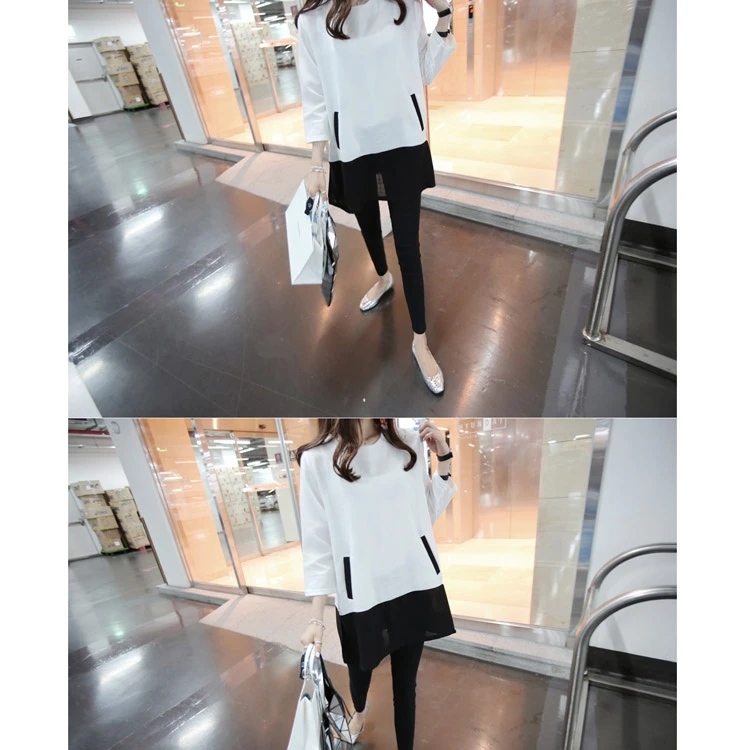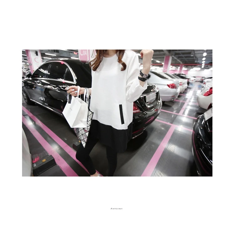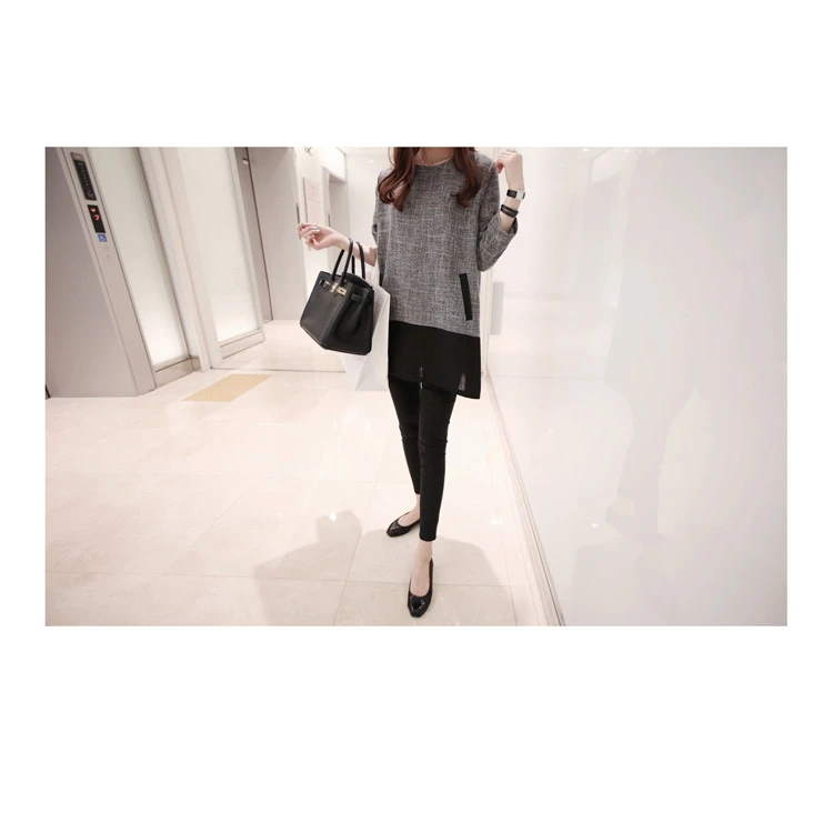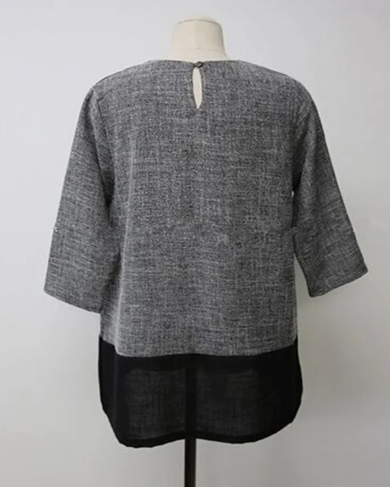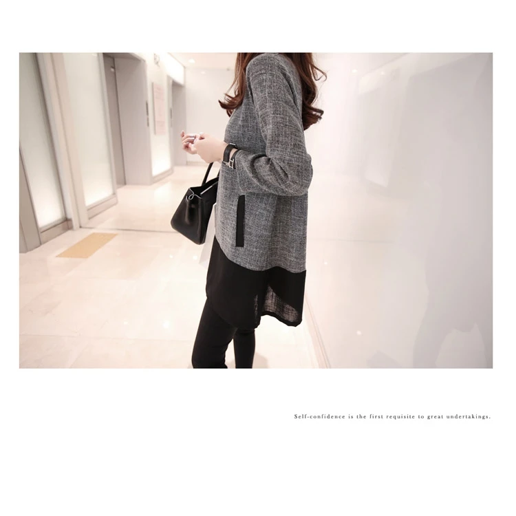 Women Blouses 2015 Autumn Winter Long Sleeve O-Neck Patchwork Loose Casual Women Shirts Plus Size Fashionable Long Shirts