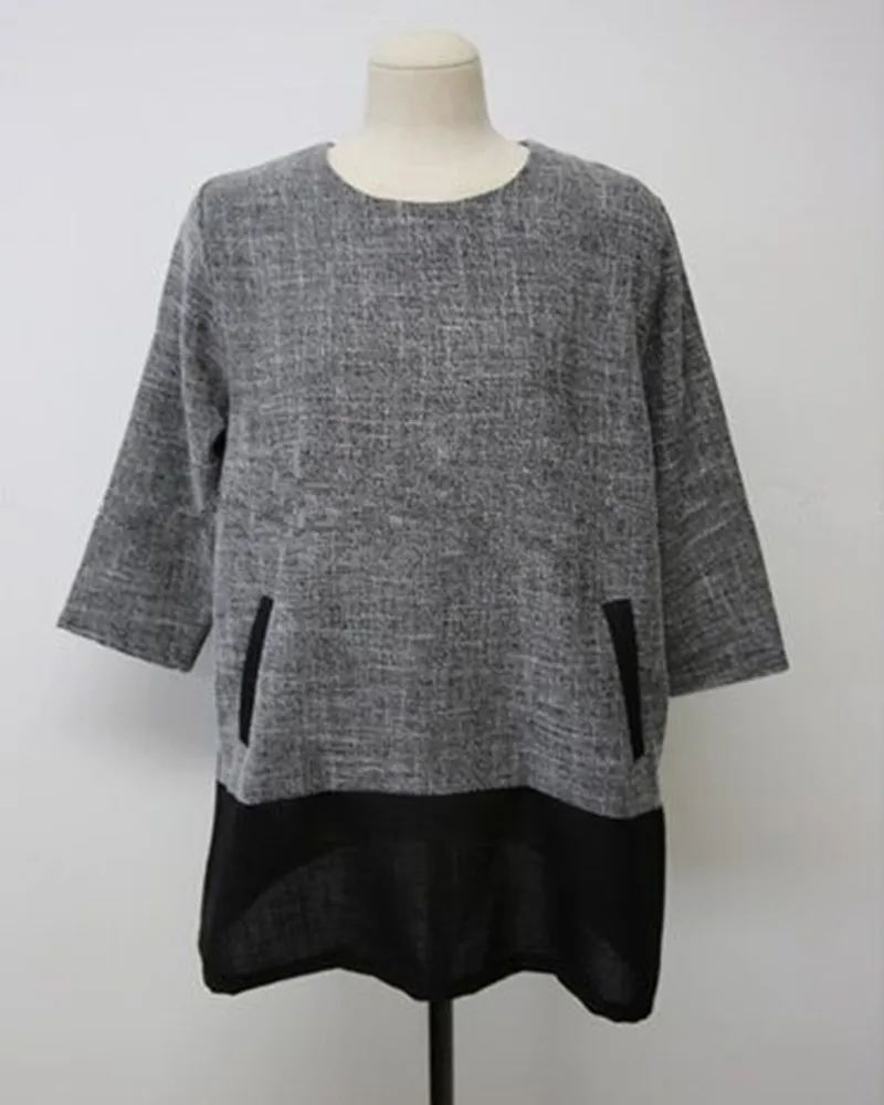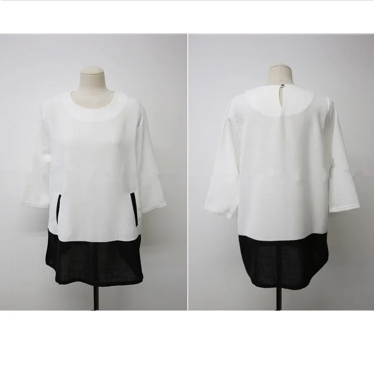 Women Blouses 2015 Autumn Winter Long Sleeve O-Neck Patchwork Loose Casual Women Shirts Plus Size Fashionable Long Shirts