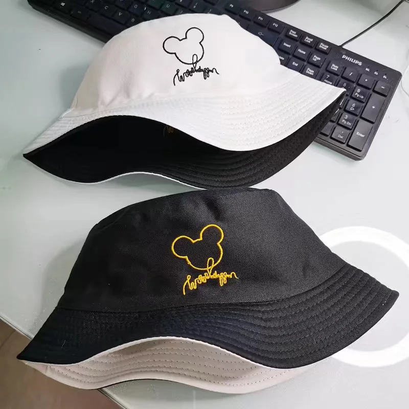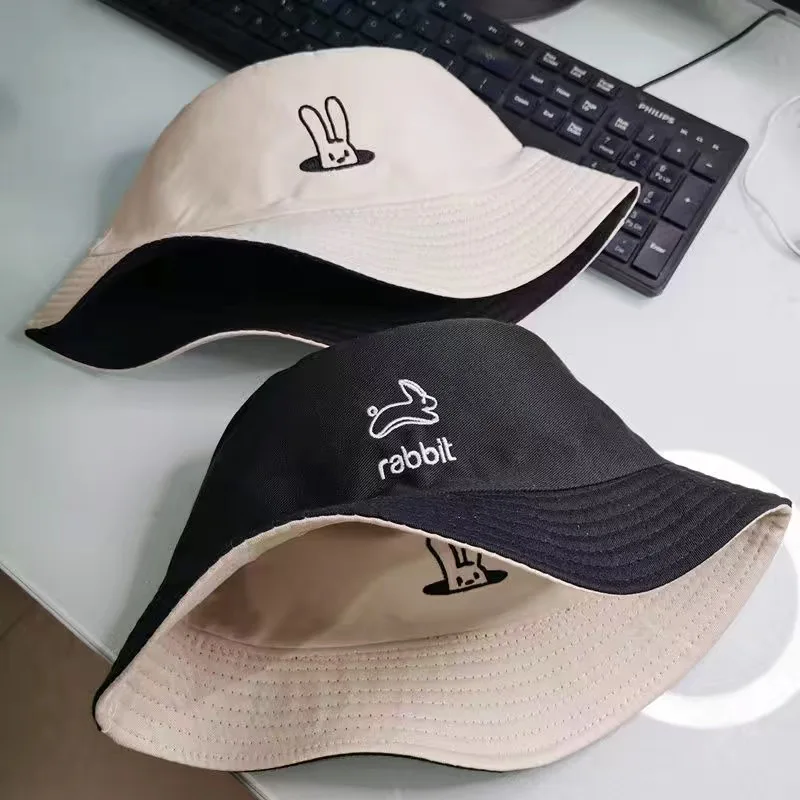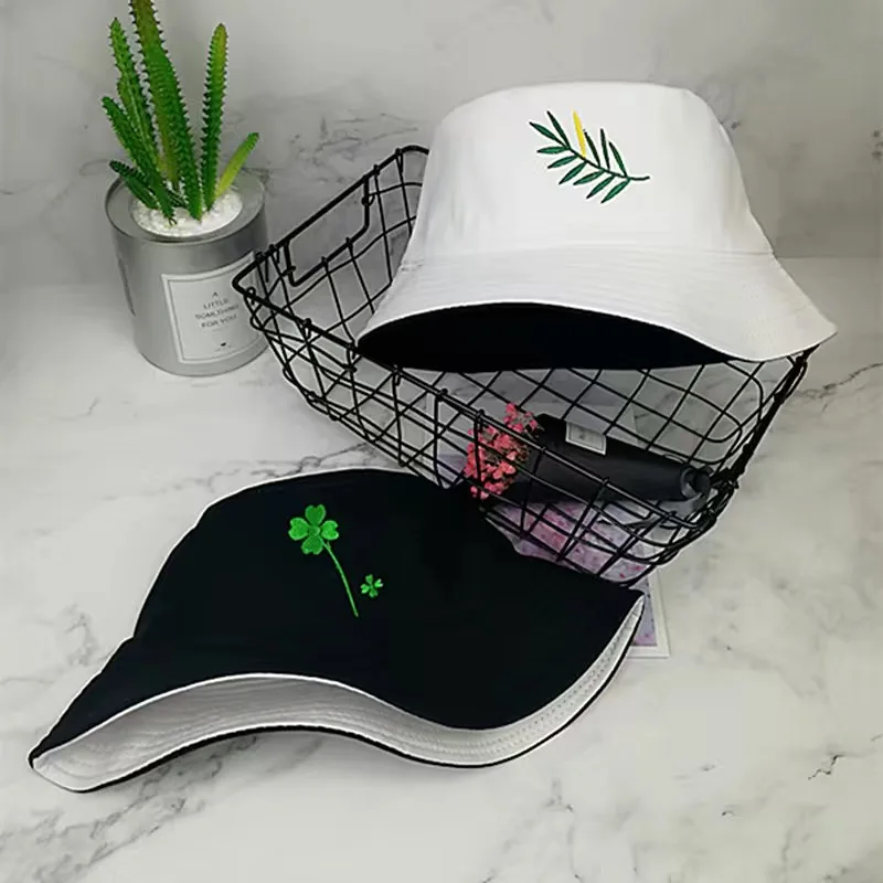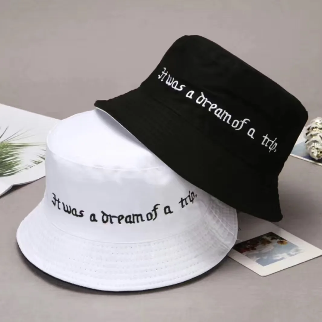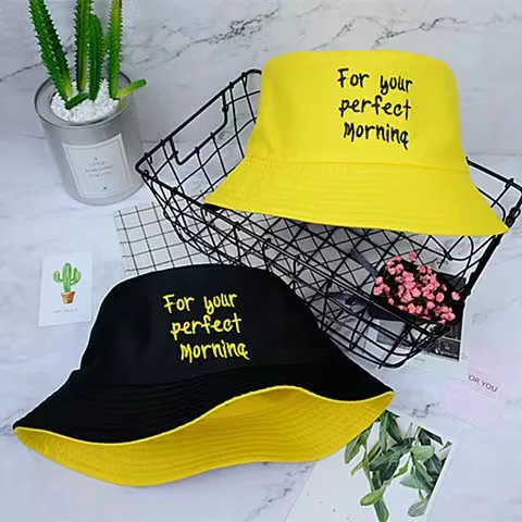 Women Cotton Bucket Hats Black White Reversible Double Size Letter Fisherman Hat Cap for Femme Travel sombreros de mujer 2021