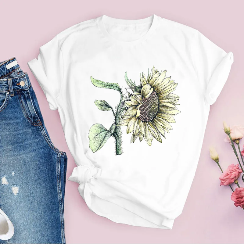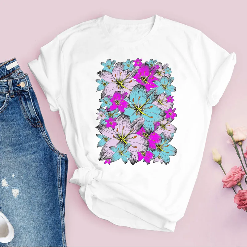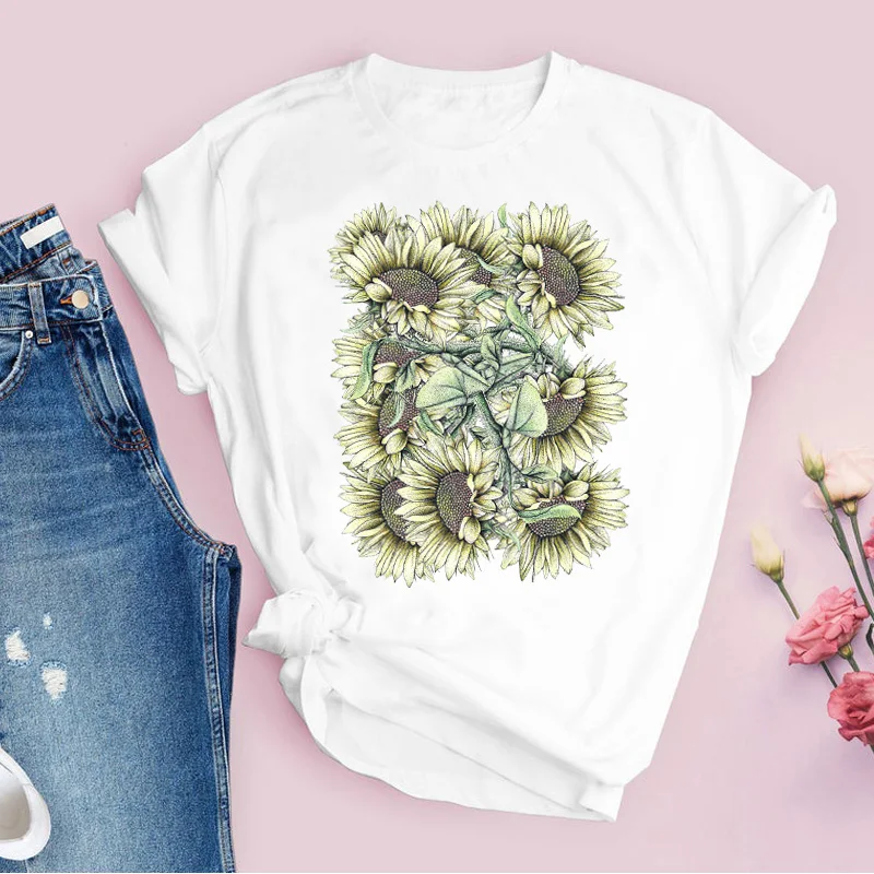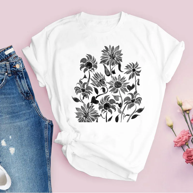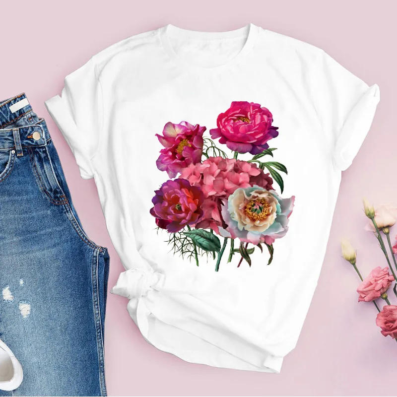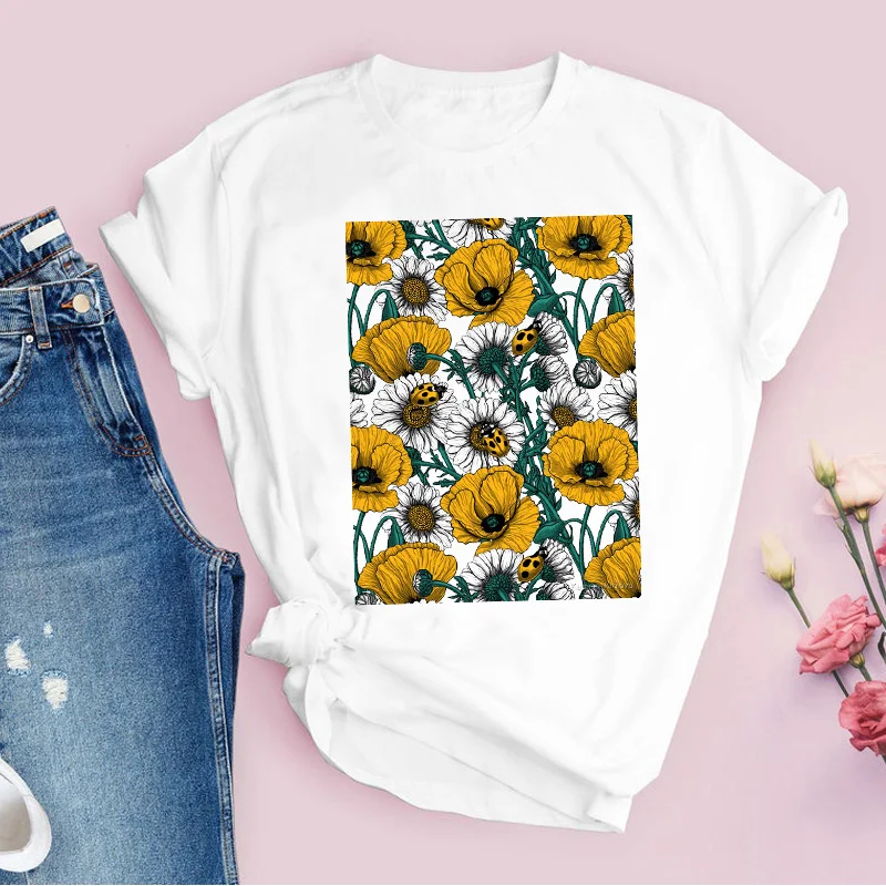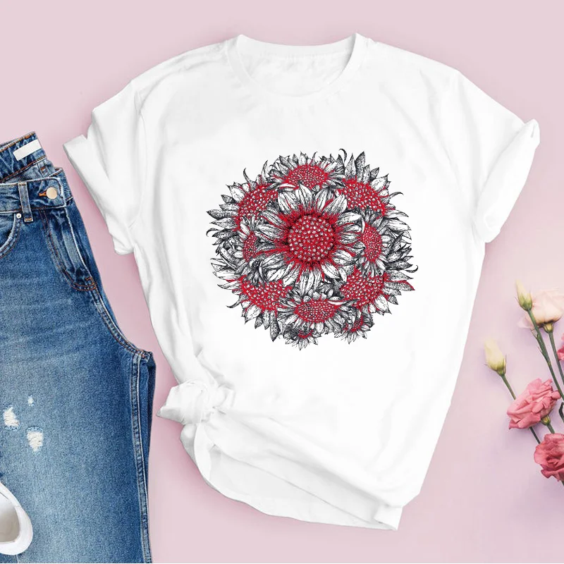 Women Graphic Flower Floral Fashion Casual Cute 90s Style Vintage Lady Tees Print Tops Clothing Female T Shirt Womens T-Shirt