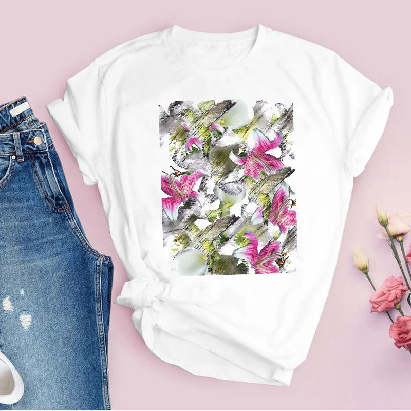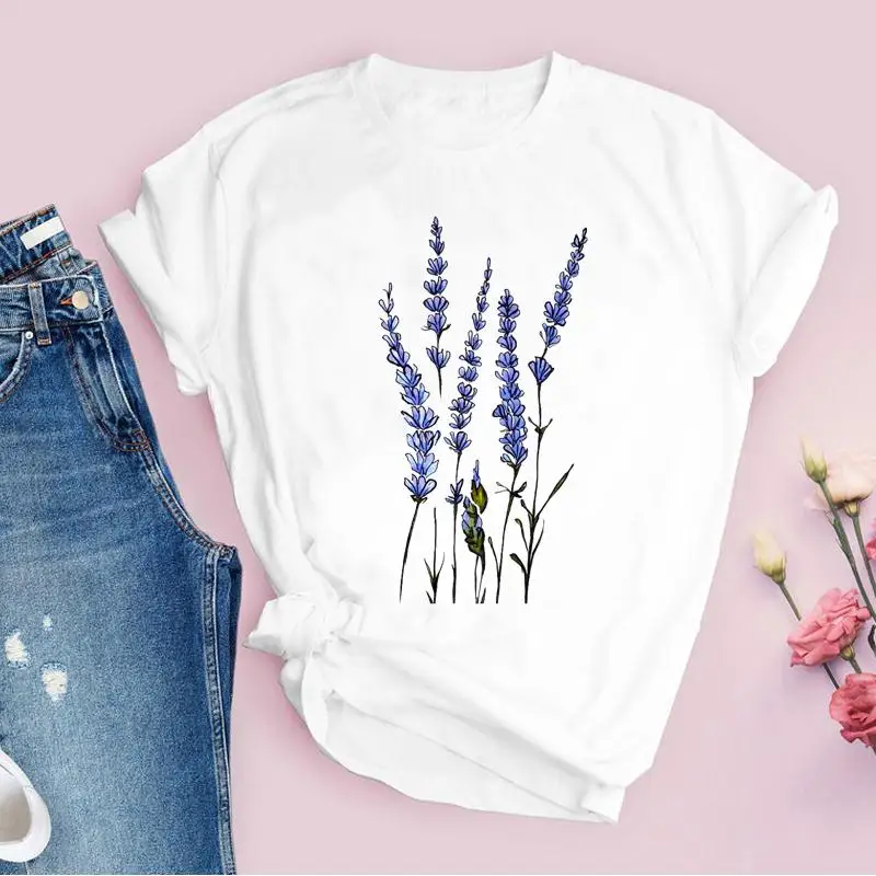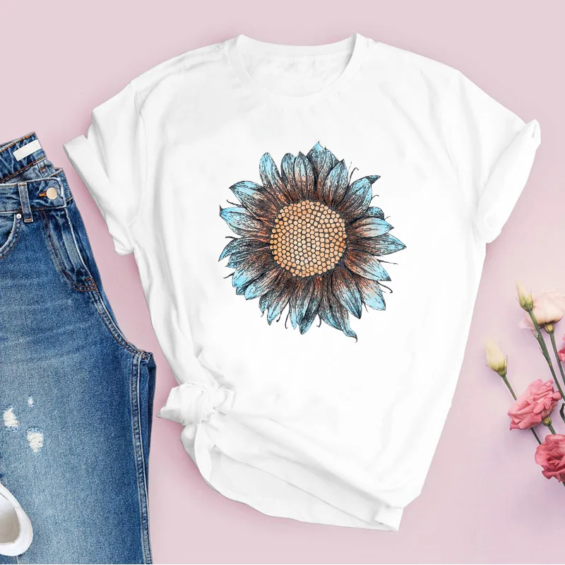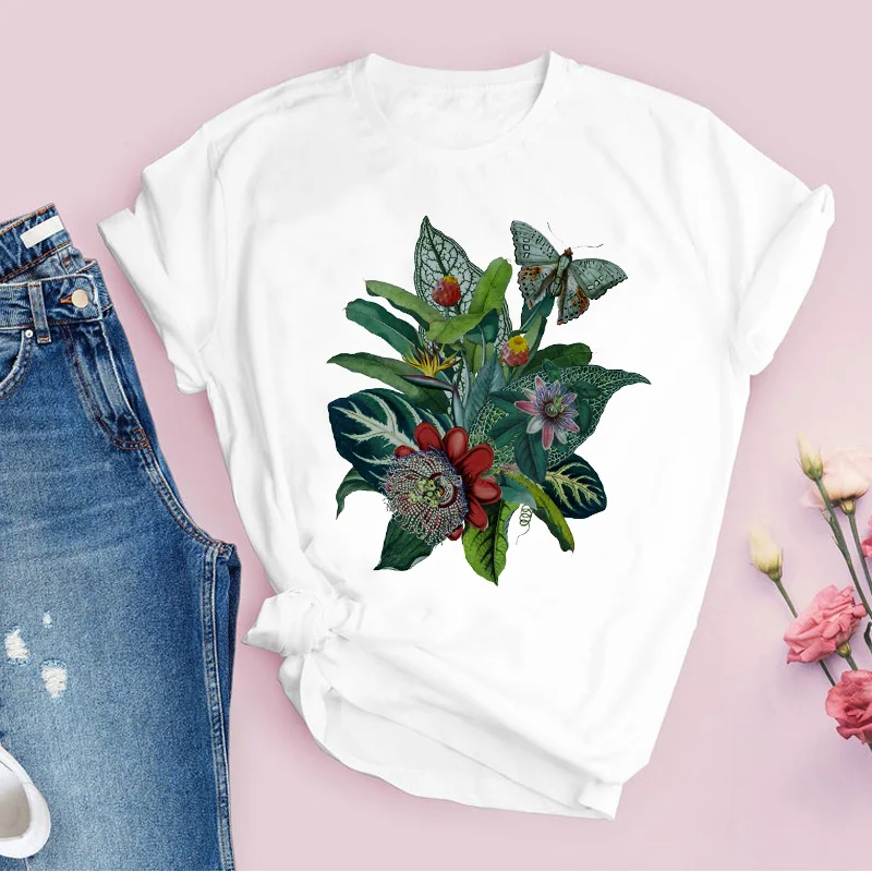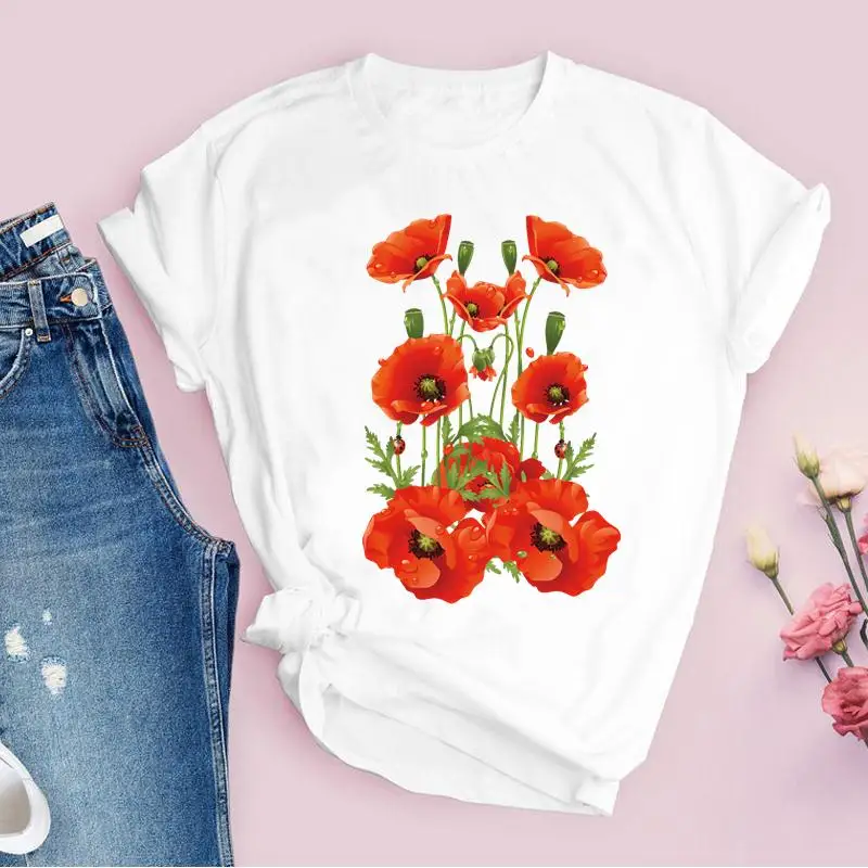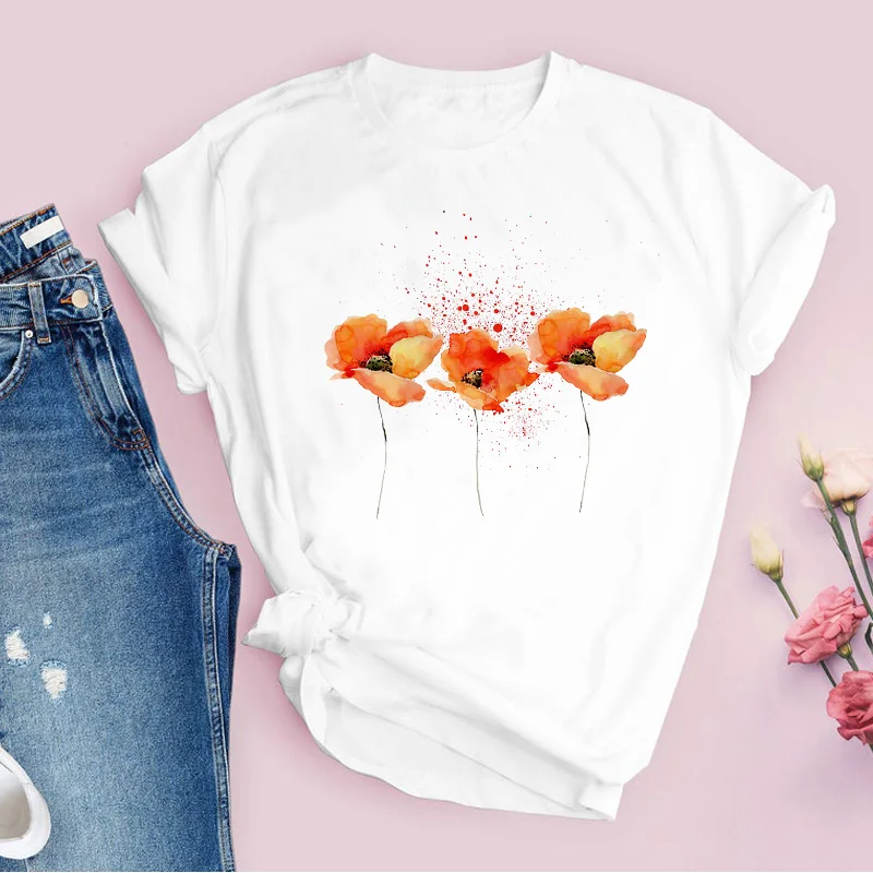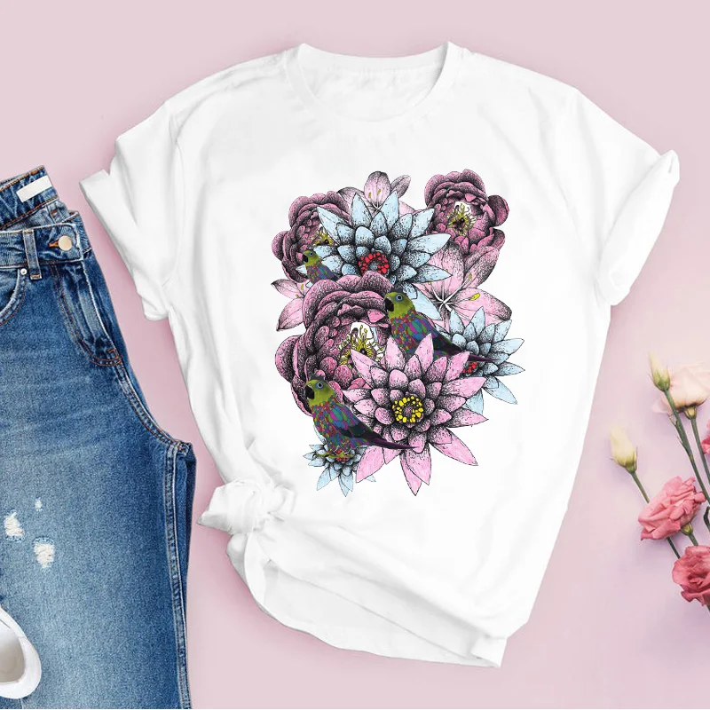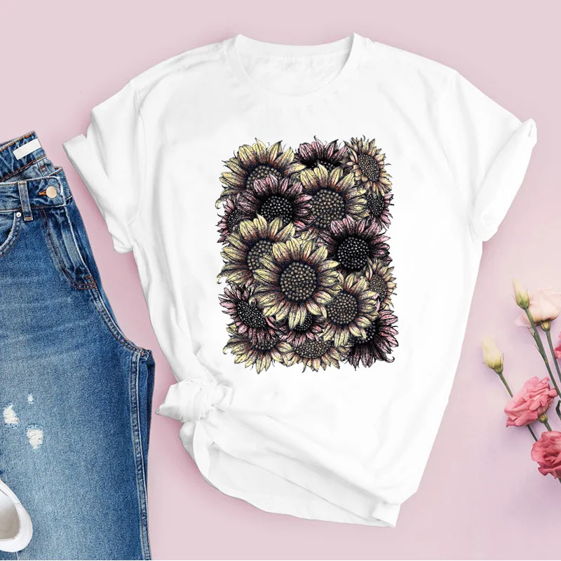 Women Graphic Flower Floral Fashion Casual Cute 90s Style Vintage Lady Tees Print Tops Clothing Female T Shirt Womens T-Shirt