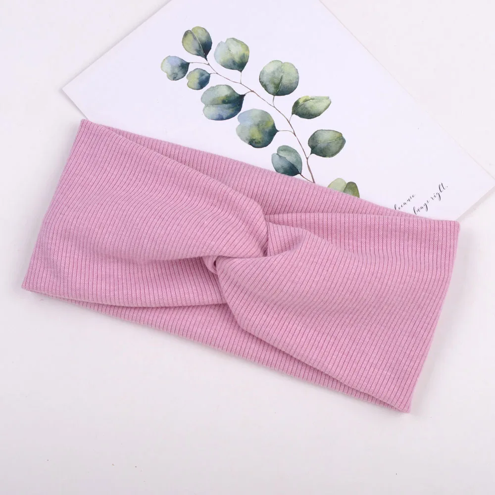 Women Headband Solid Color Wide Turban Twist Knitted Cotton Hairband Spiral Double Girls Makeup Elastic Hair Bands Accessories