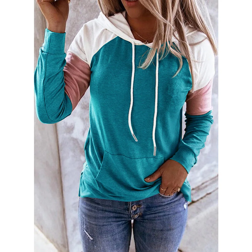 Women Hoodies Harajuku Casual Loose Long Sleeve Hooded 2021 Autumn Vintage Patchwork Sweatshirts Female Elegant Pullover Top 5XL