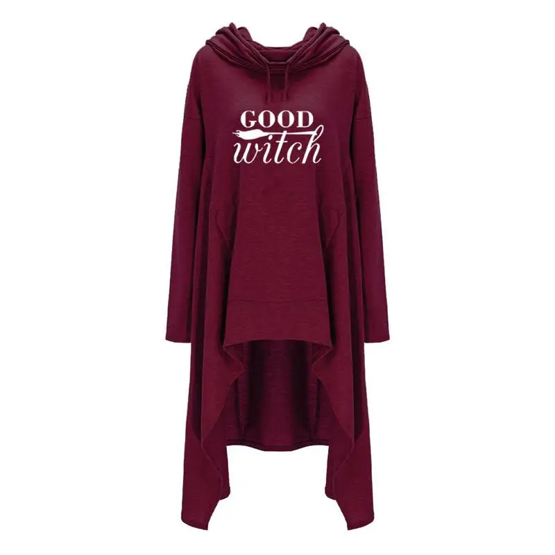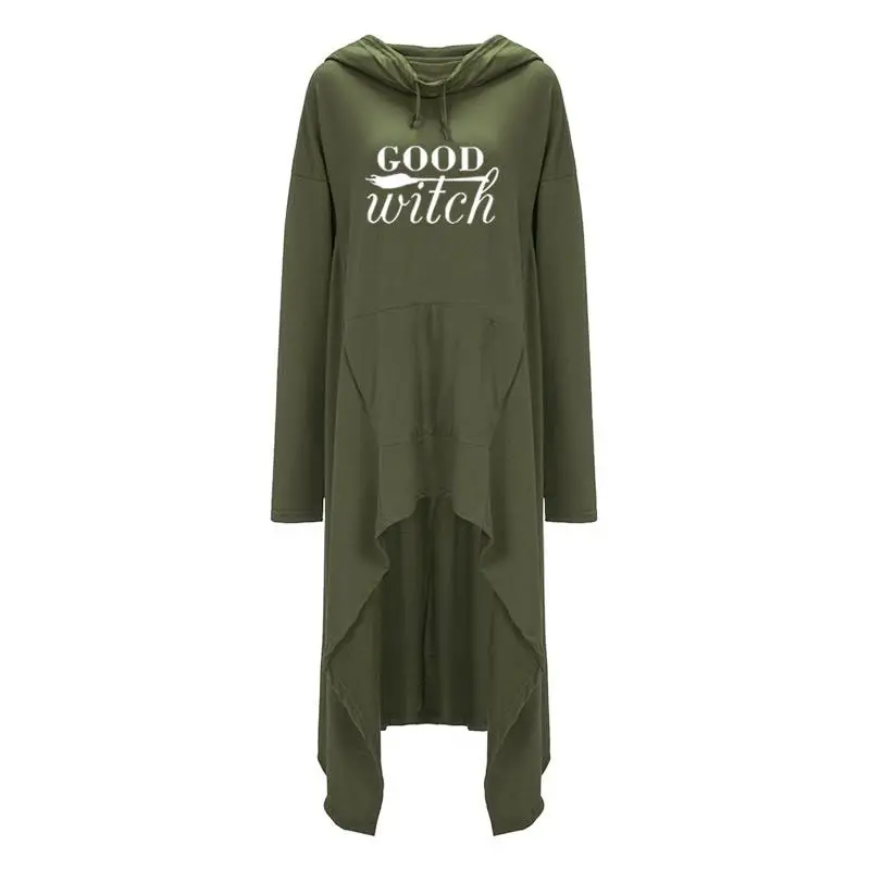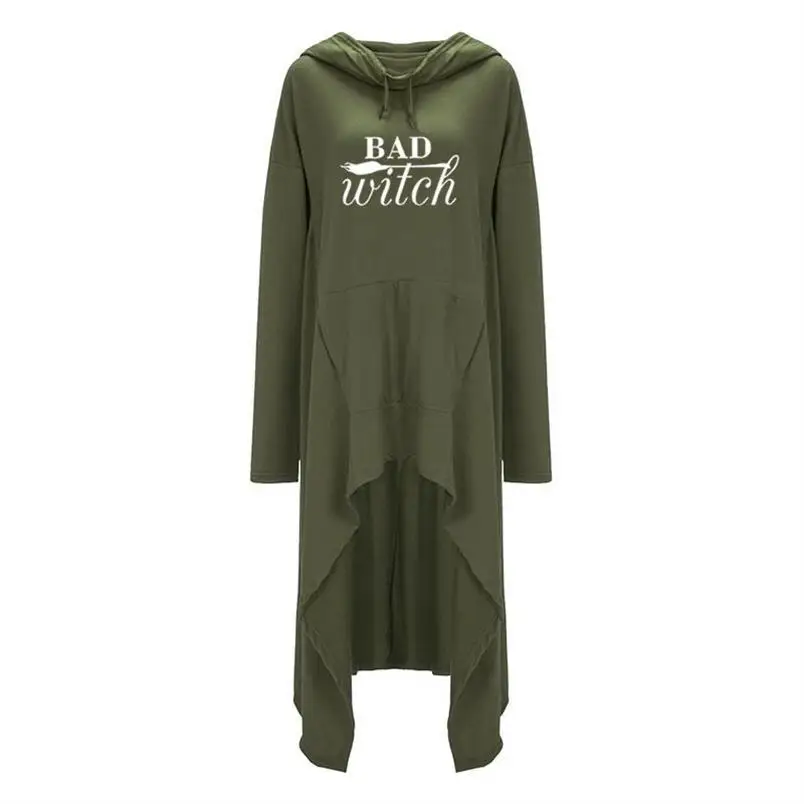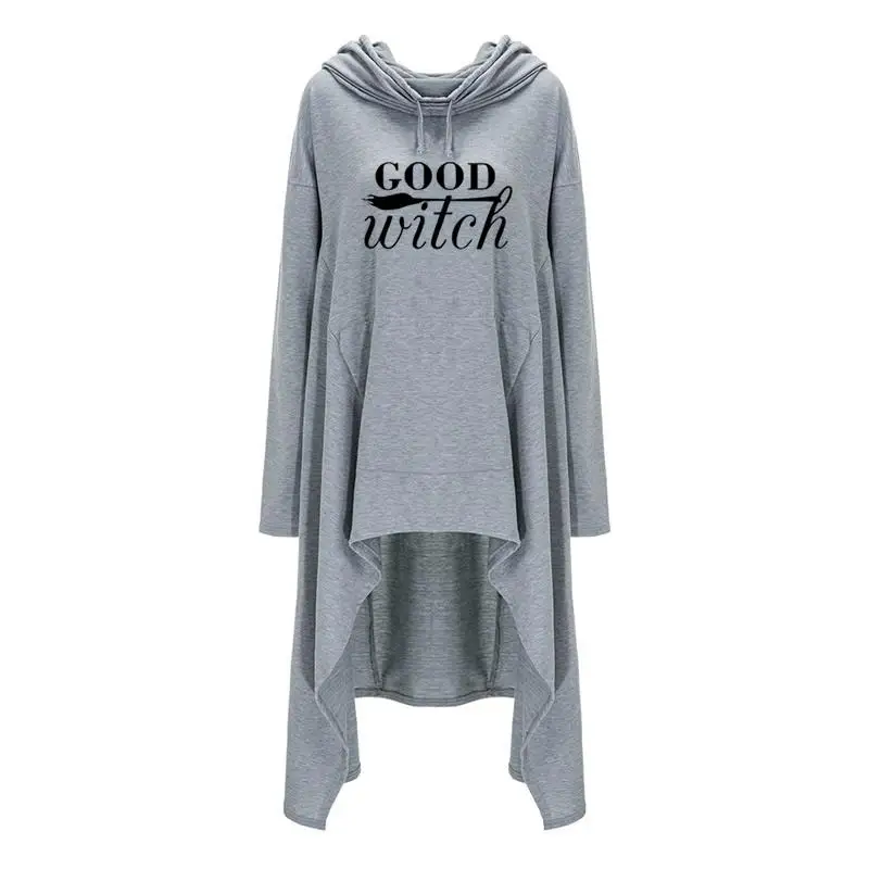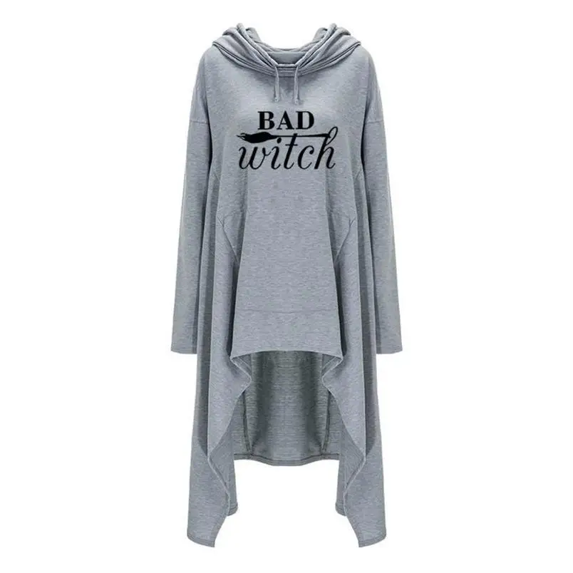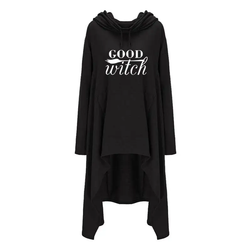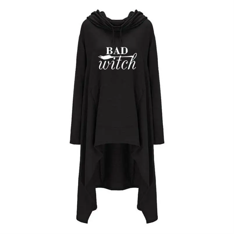 Women hoodies Long Irregular bad witch Tops Kawaii Femmes Sweatshirts Pattern Funny Cotton Cropped Oversize Hoodies dress