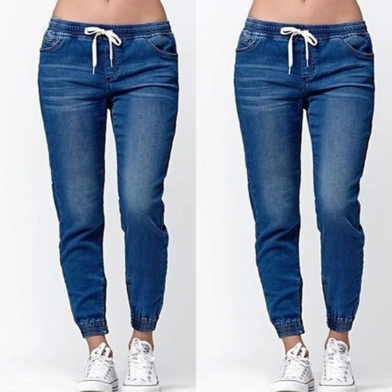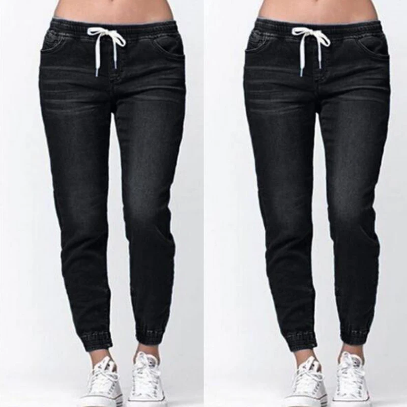 Women Jeans Solid Fashion Elastic Waist Jeans Straight Pencil Pants Denim Pants Women Trousers Causal Pants Women Clothing