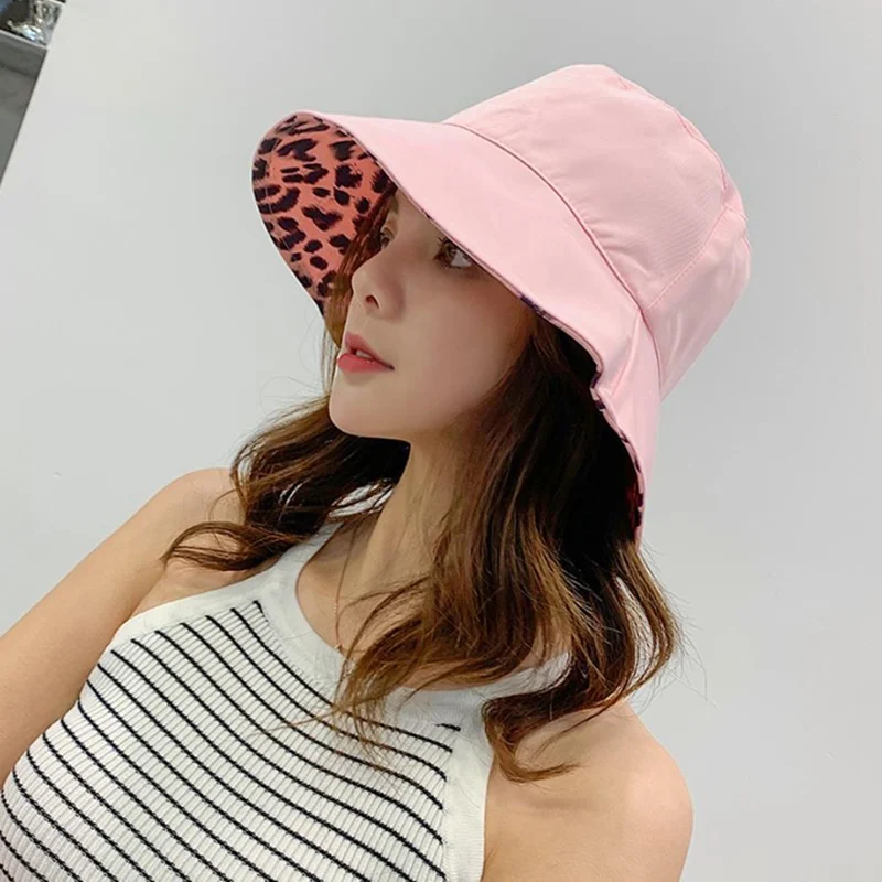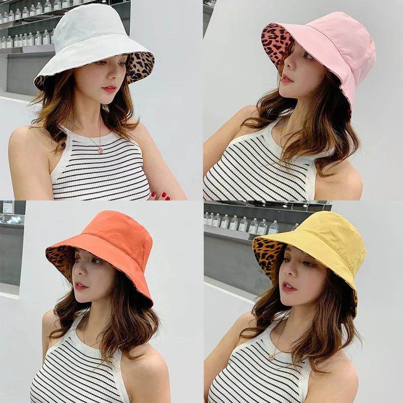 Women Leopard Print Bucket Comfortable Breathe Foldable Men Beach Flat Top Sun Fishing Hat High Quality Flat Panama Hat Street