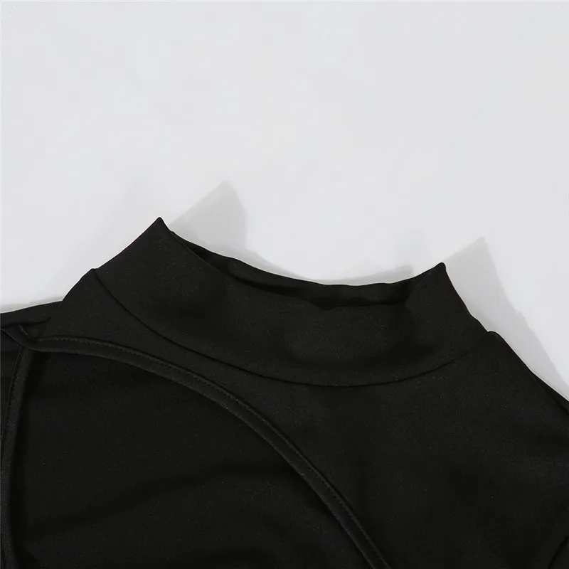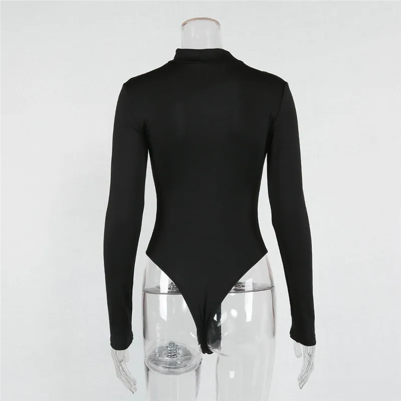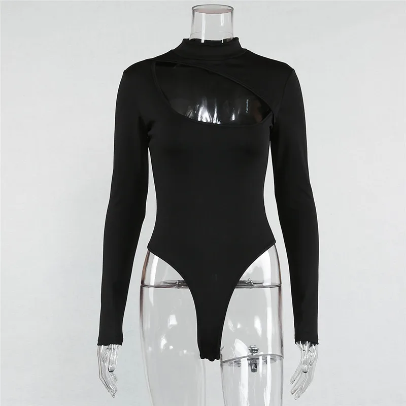 Women Long Sleeve Bodysuit Stretch Leotard Tops Black Slim Romper Clubwear Sexy Womens Jumpsuits Hollow Out Turtleneck Bodysuits