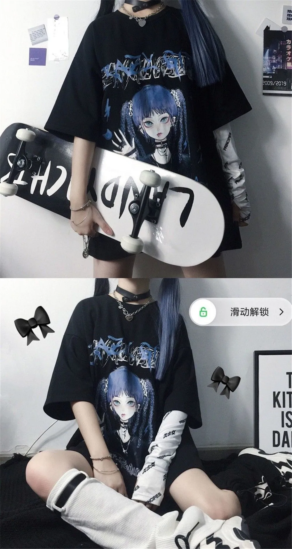 Women Oversize T Shirt White Cartoon Female Kawaii Tops Tee Short Sleeve Fashion Summer Funny T-Shirt For Girl Hip Hop Clothes