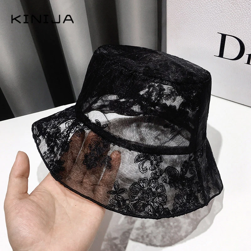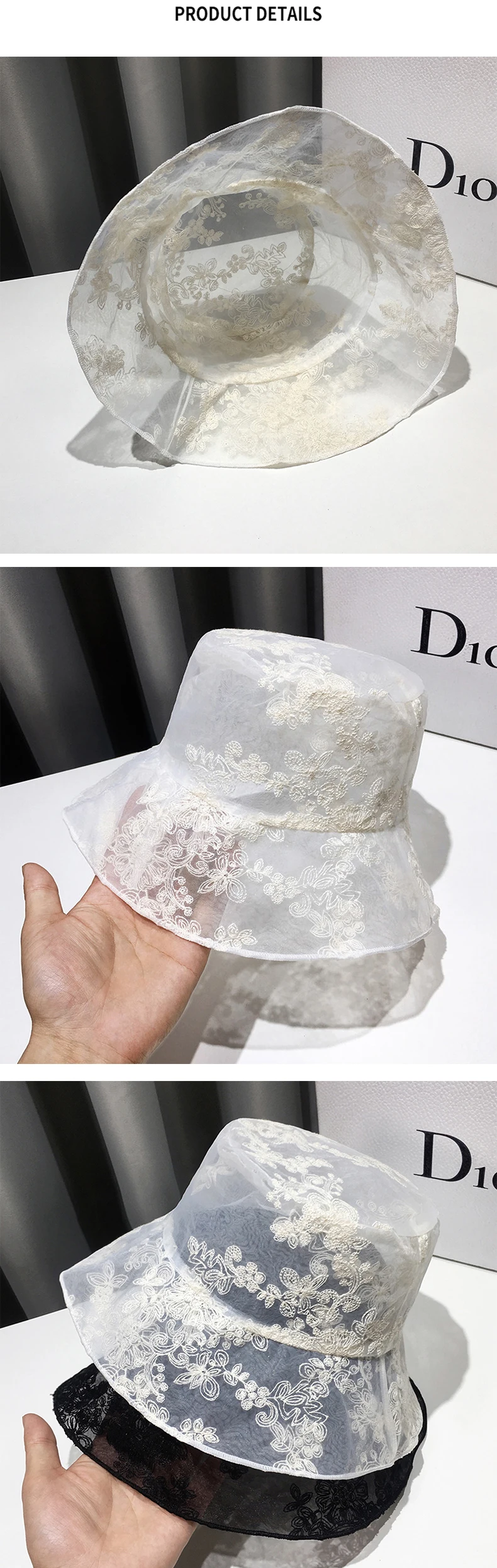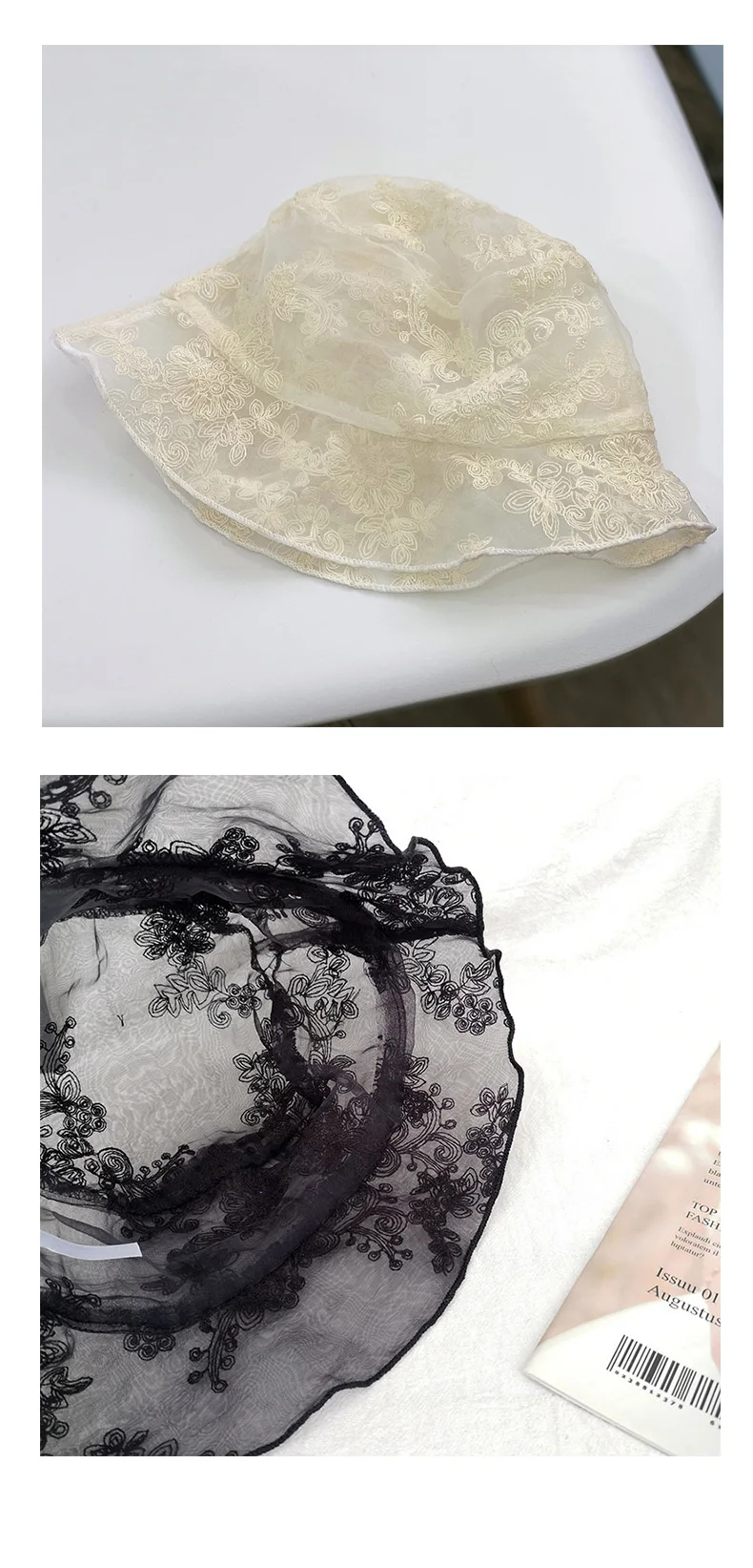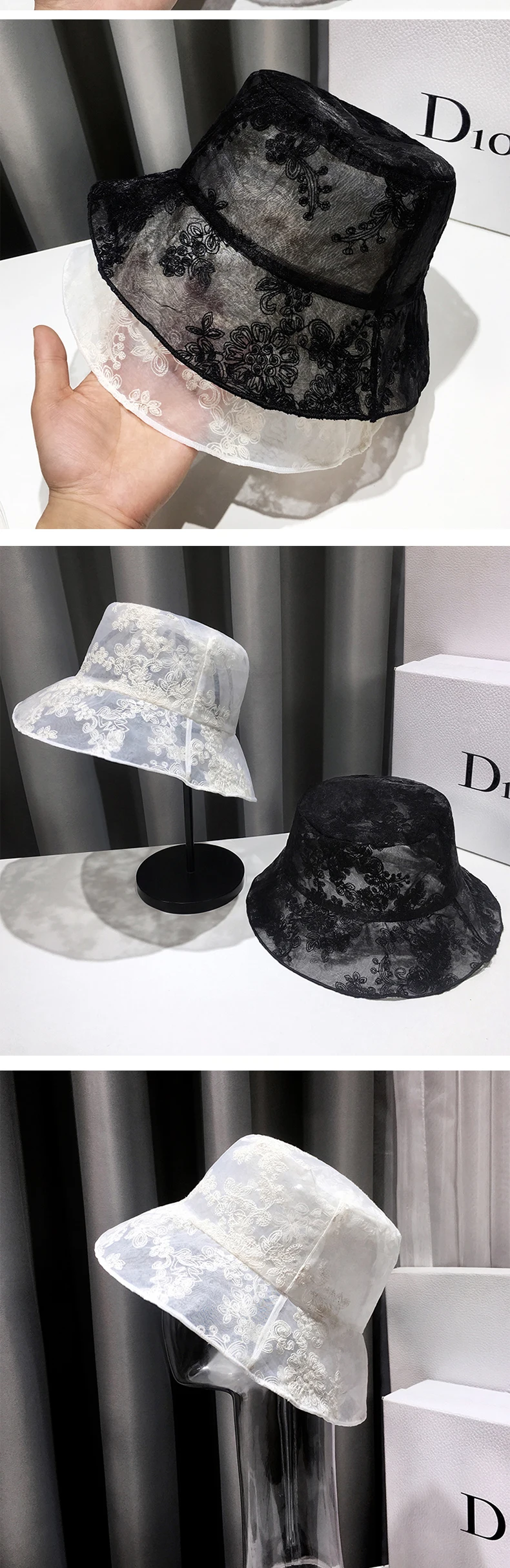women Panama Lace Transparent Embroidered bucket hat girl Flower Sun Hat Korean Fisherman Cap Japanese beach hat solid basin hat