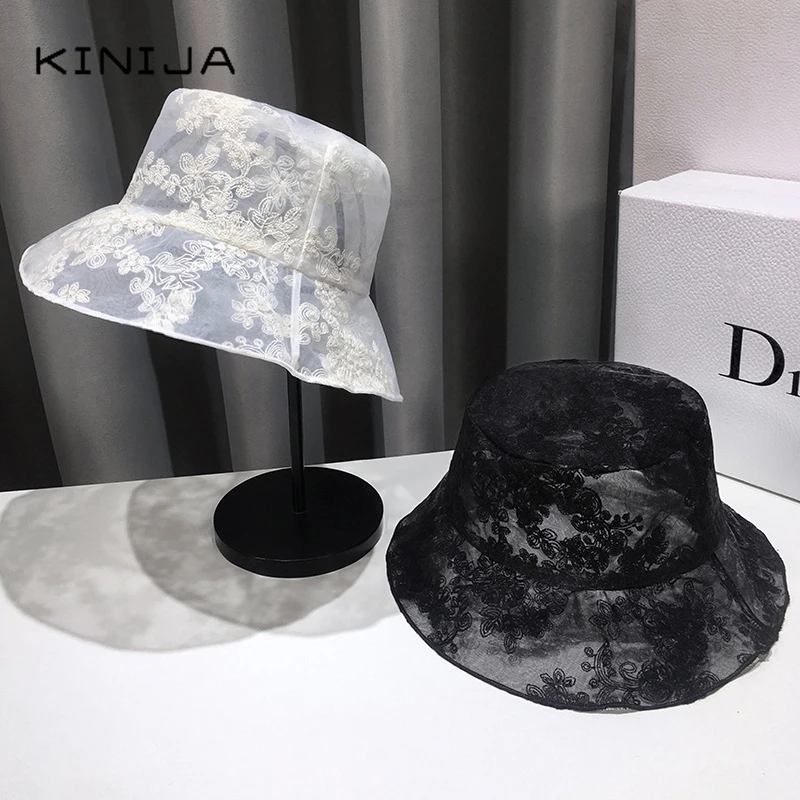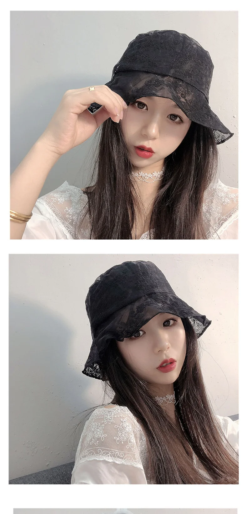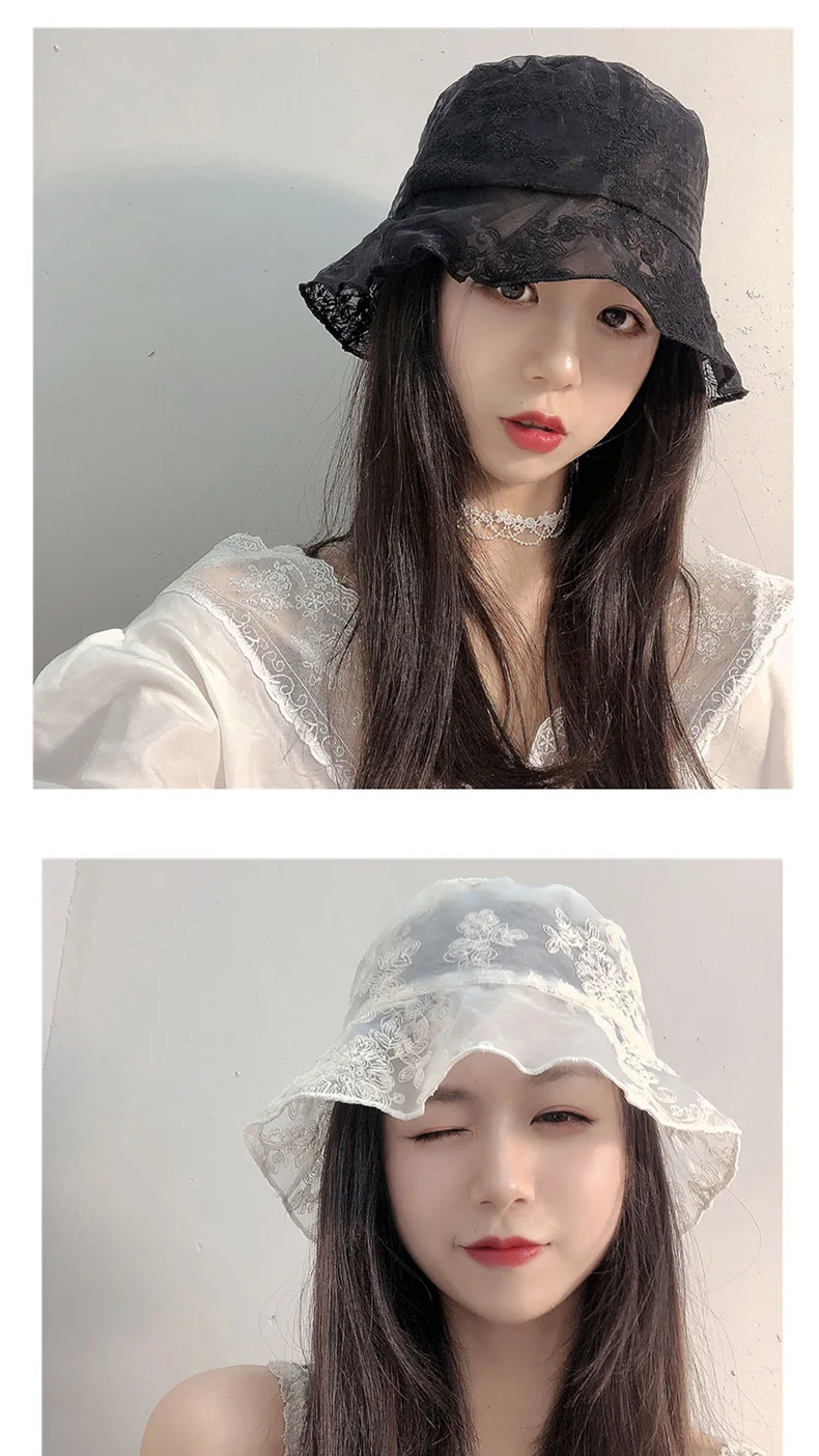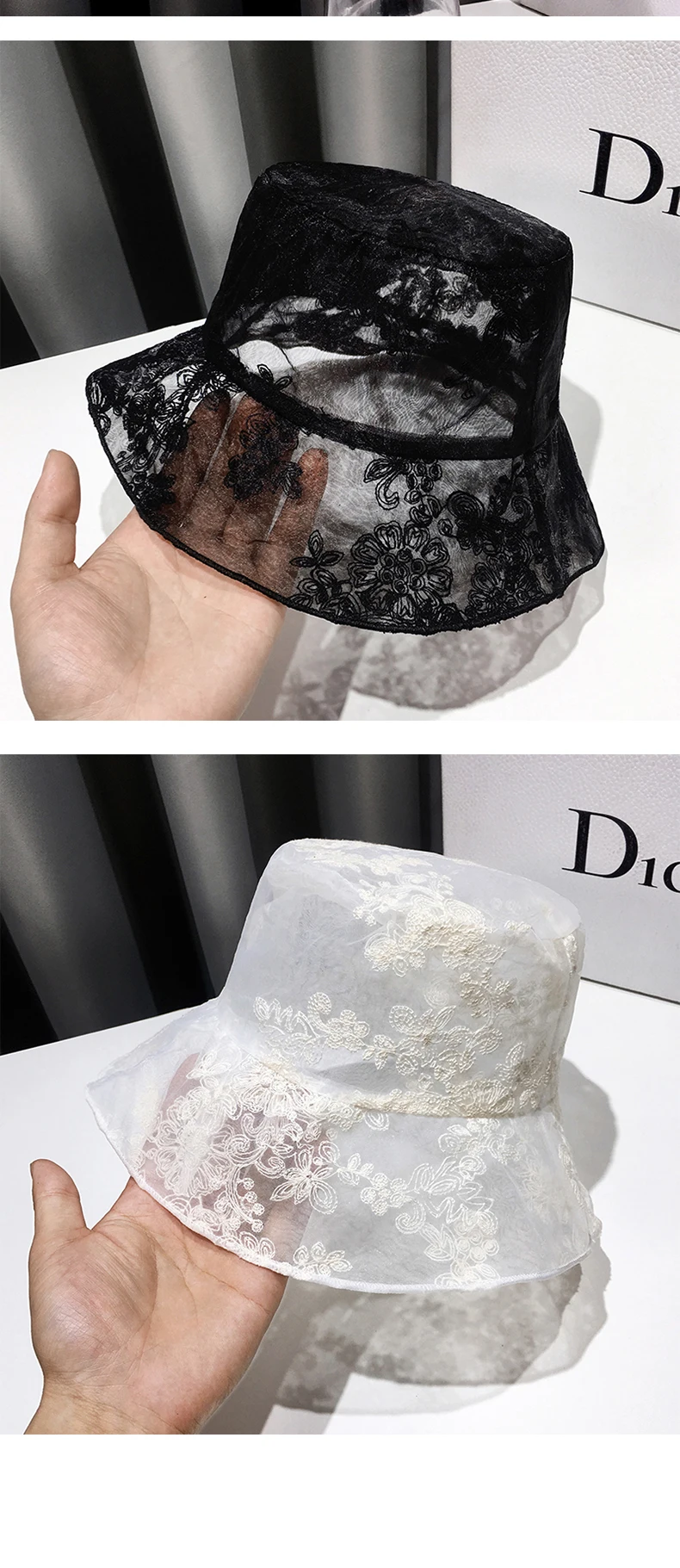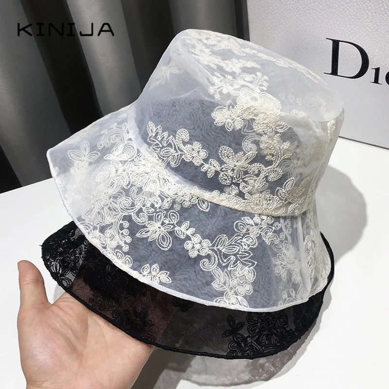 women Panama Lace Transparent Embroidered bucket hat girl Flower Sun Hat Korean Fisherman Cap Japanese beach hat solid basin hat
