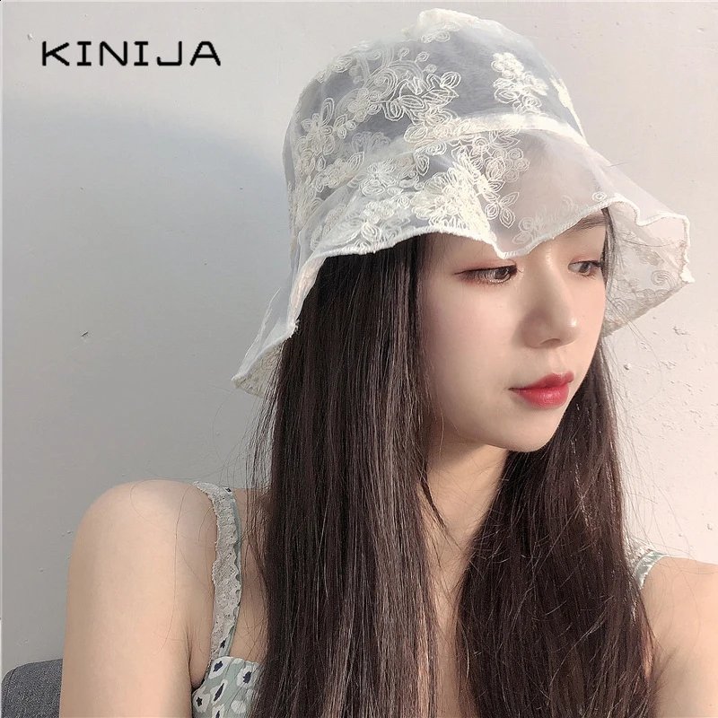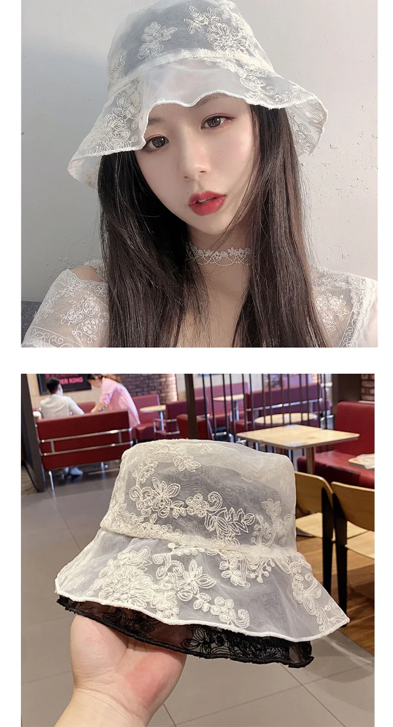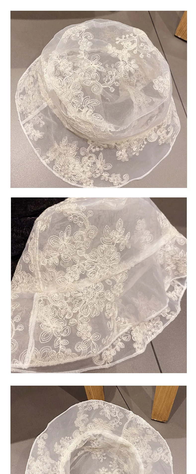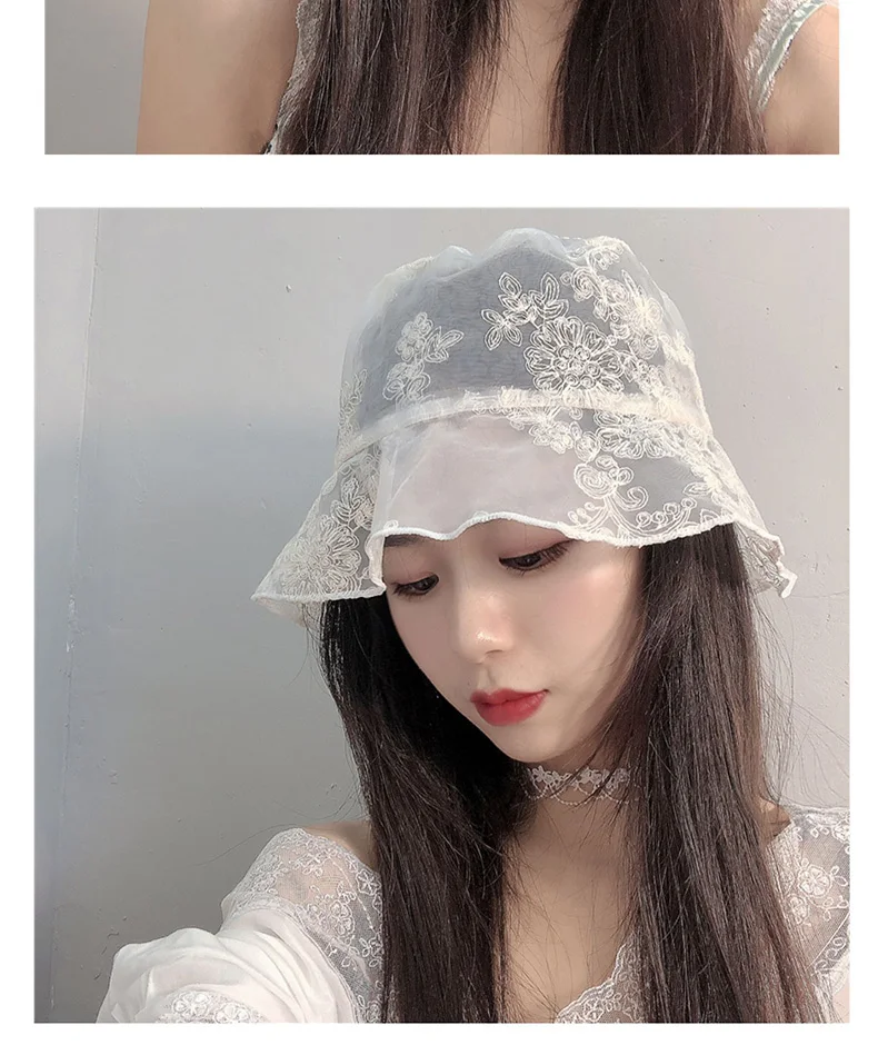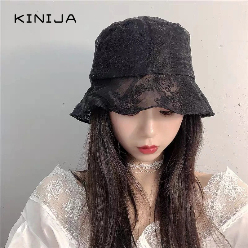 women Panama Lace Transparent Embroidered bucket hat girl Flower Sun Hat Korean Fisherman Cap Japanese beach hat solid basin hat