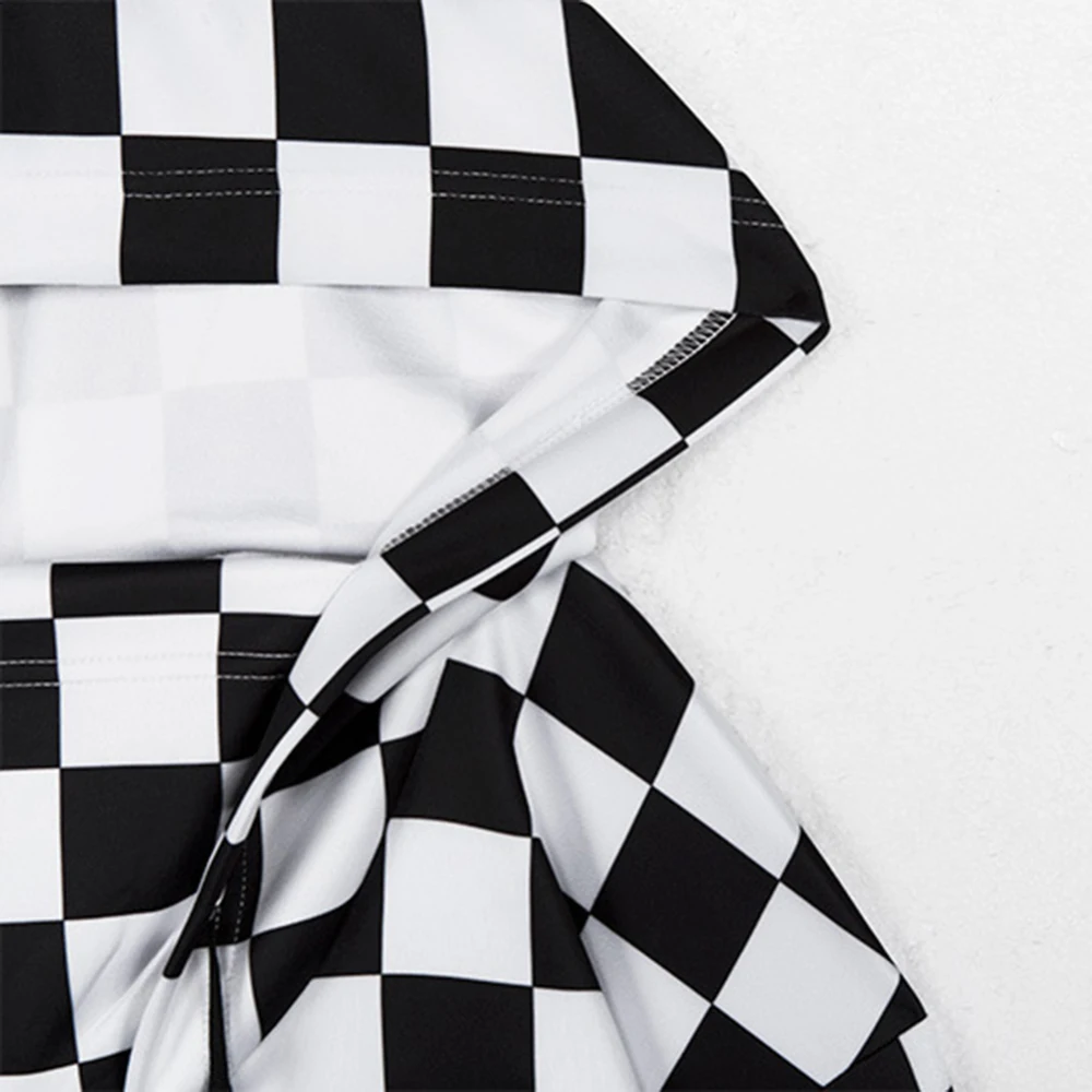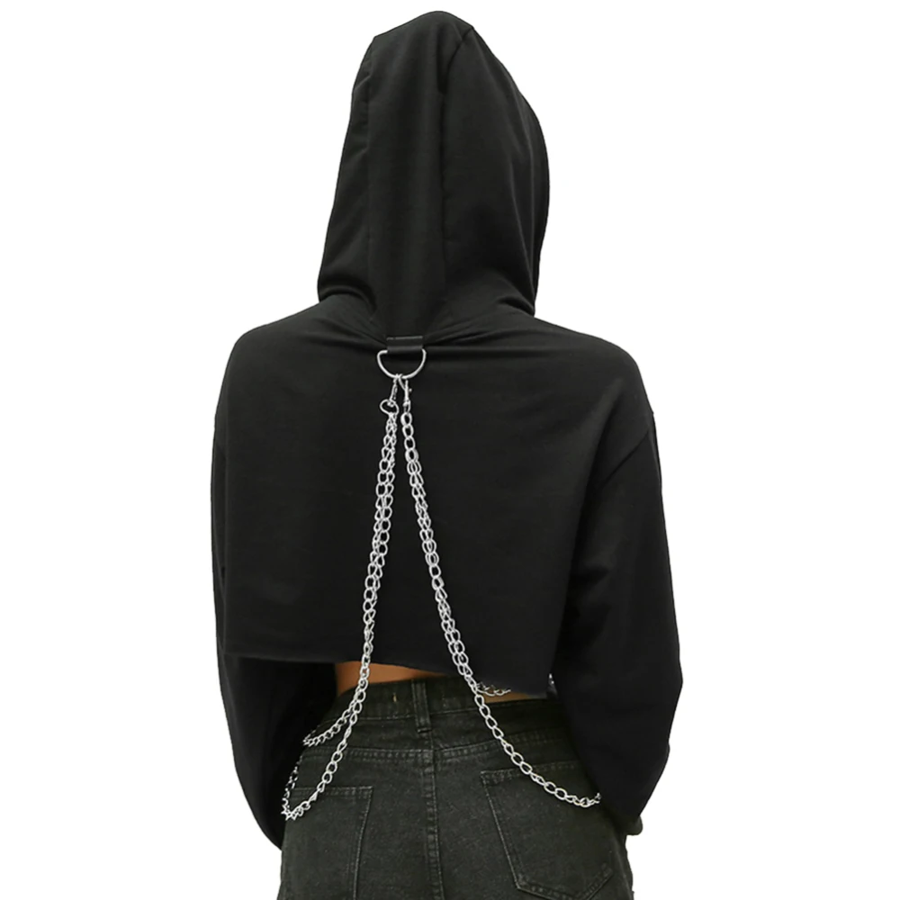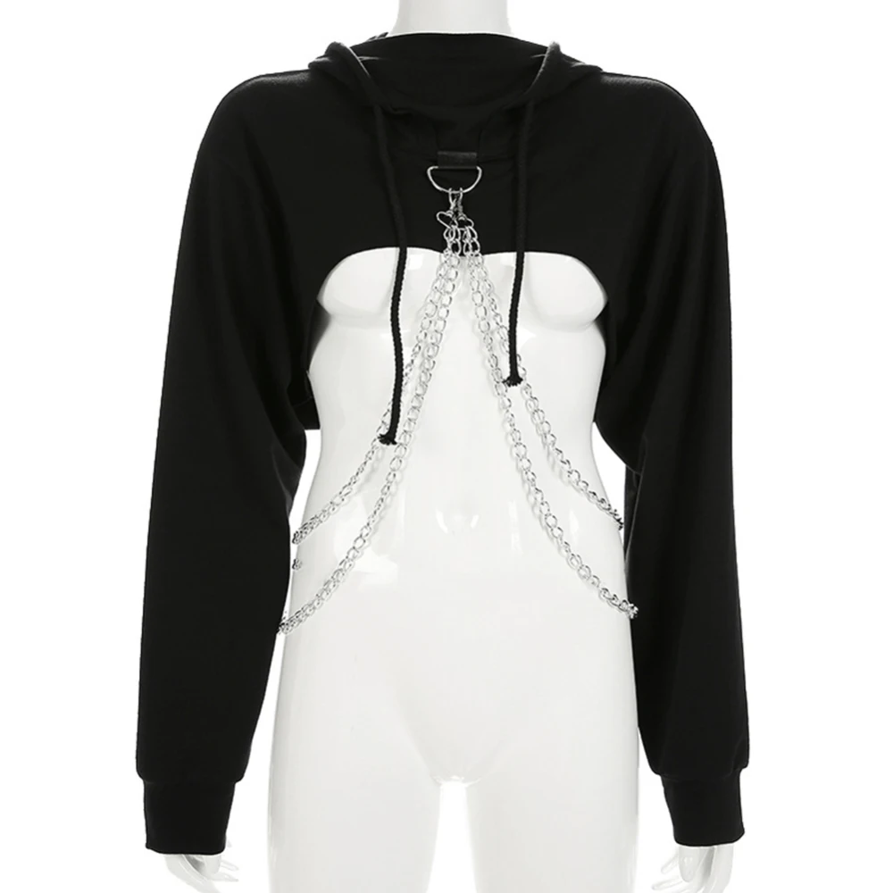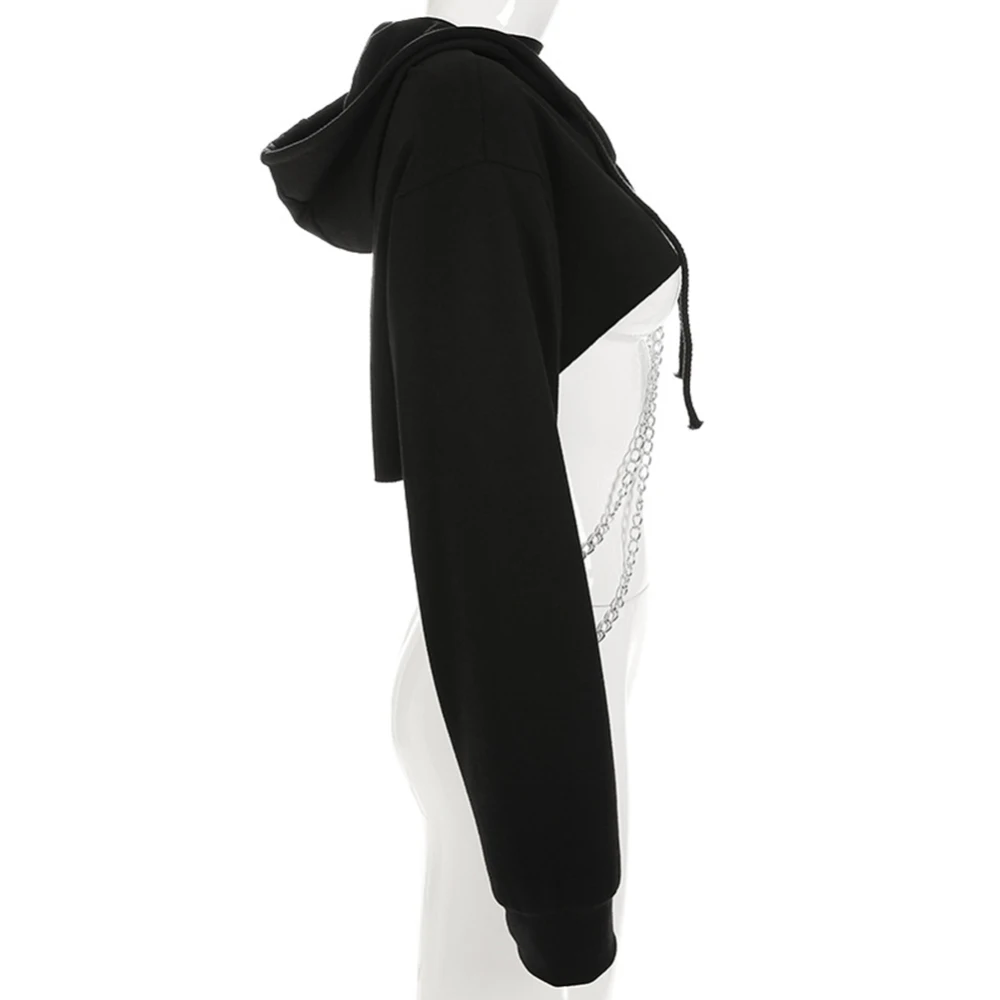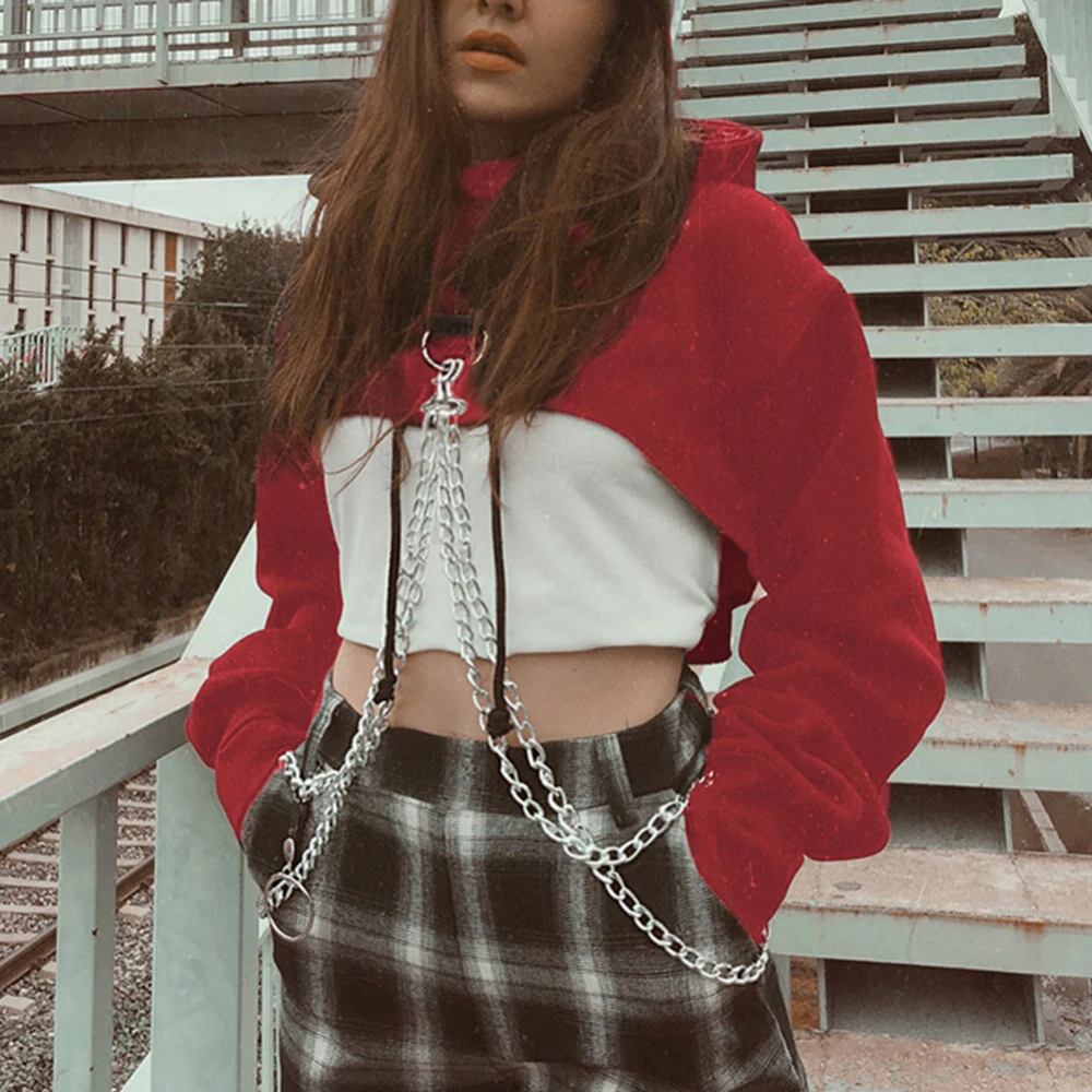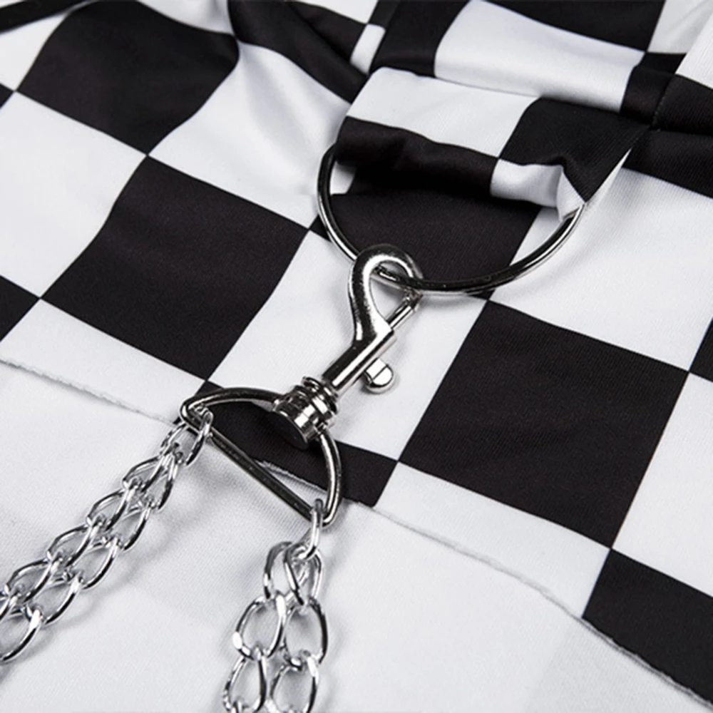Women Plaid Casual Streetwear Sweatshirt Hoodie Crop Top Jumper Pullover Chain Stitching Short Loose Sweatshirt Plaid Shirt
