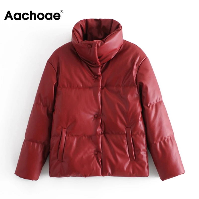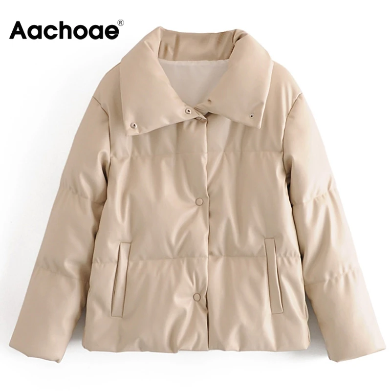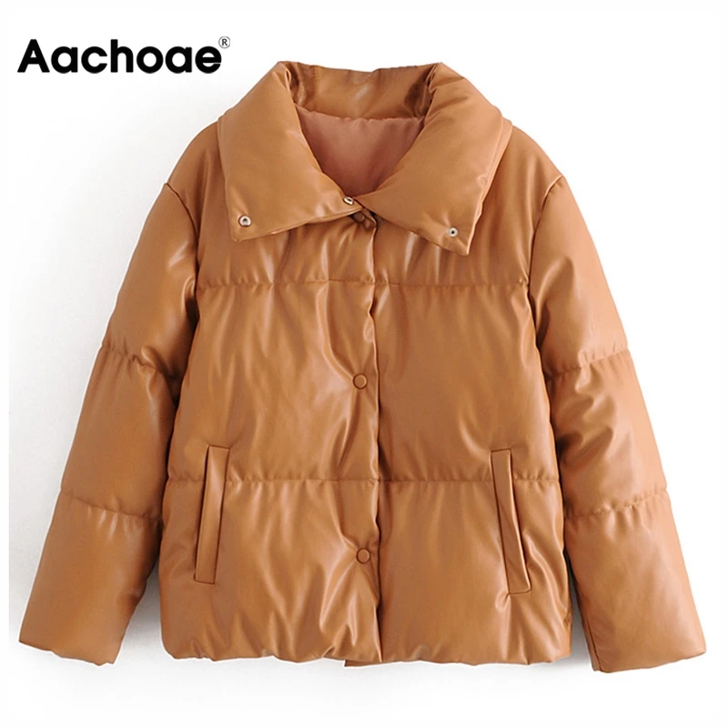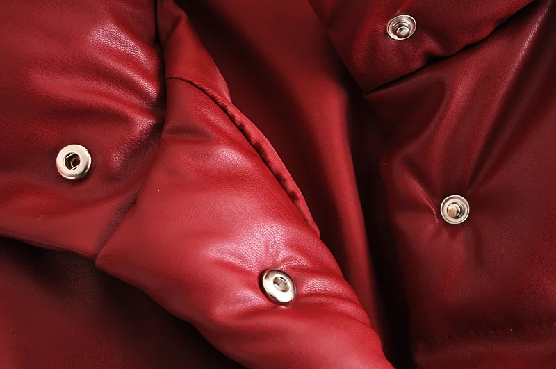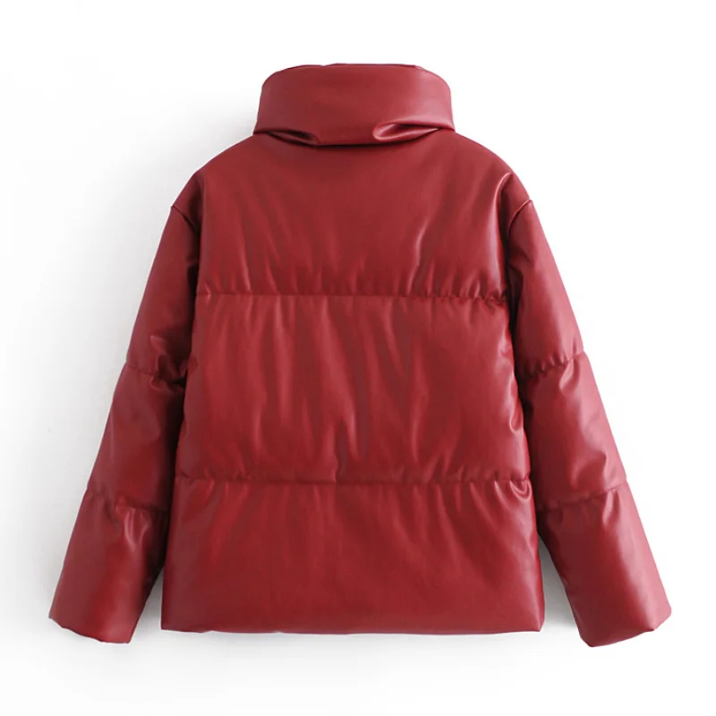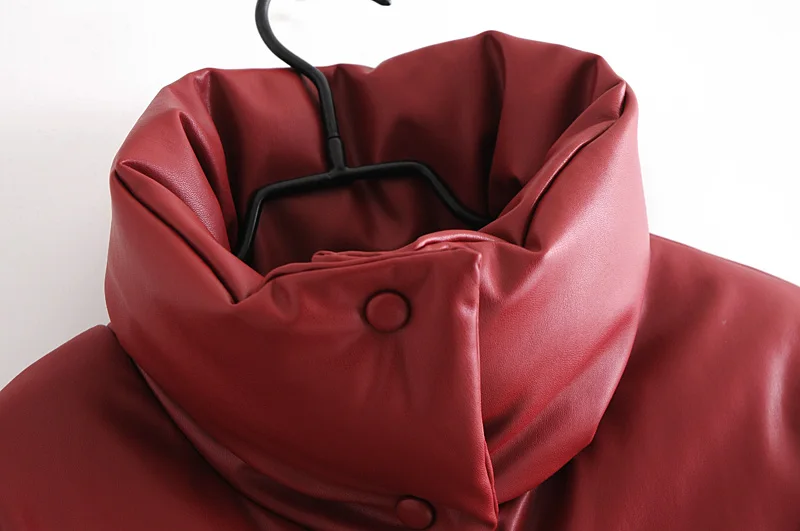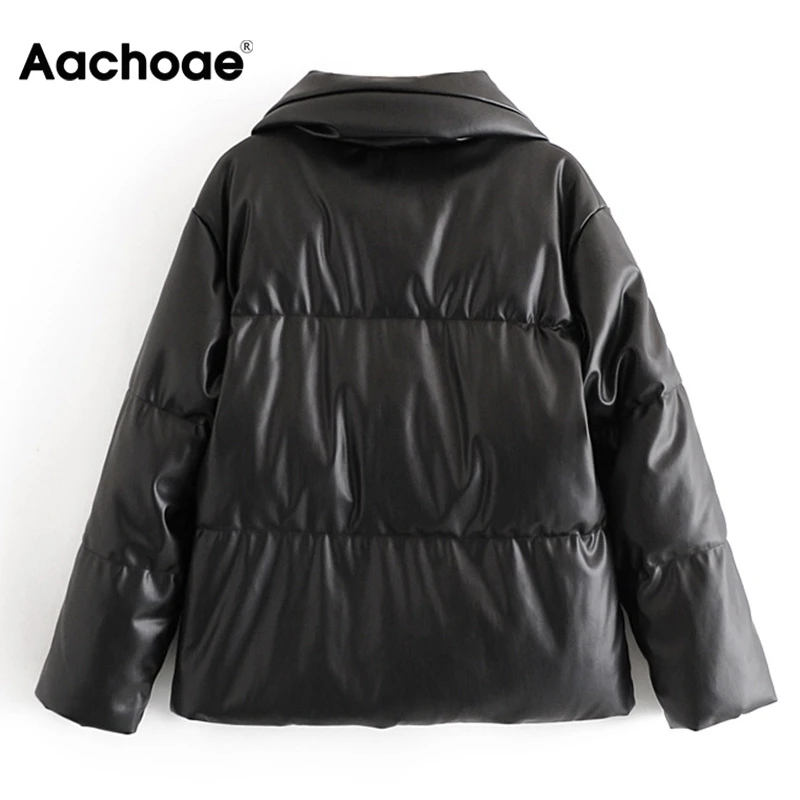 Women PU Leather Parkas Fashion High Street Solid Faxu Leather Coats Elegant Winter Thick Cotton Jackets Loose Outerwear