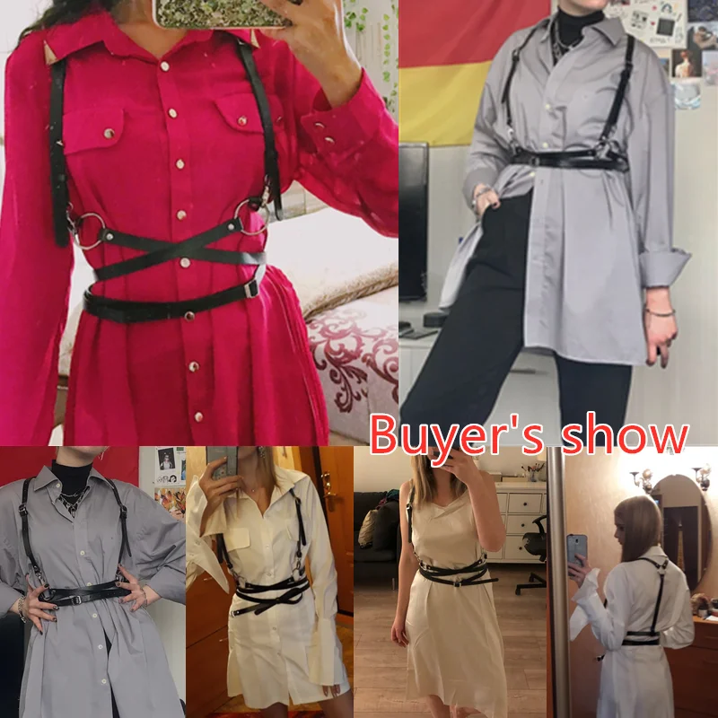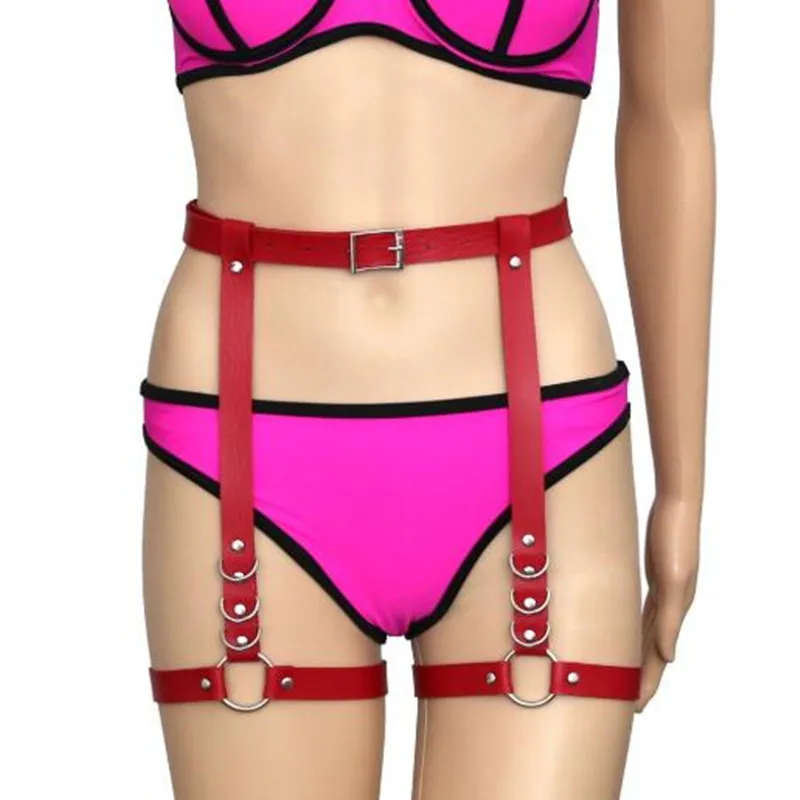 Women Sexy Harajuku O-Ring Garters faux Leather Women Body Bondage Cage Sculpting Harness Waist Belt Straps Suspenders Punk Belt