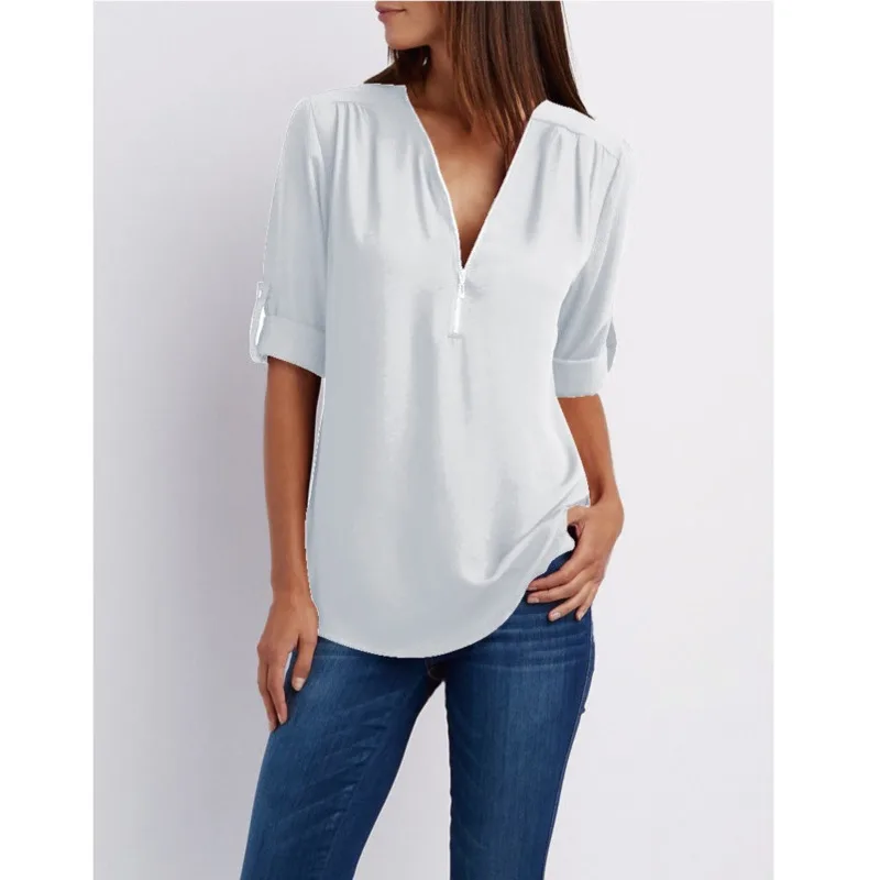 Women Shirts Summer Autumn Casual V-neck Chiffon Blouse Women Top Camisa Feminina Long Sleeve Black White Ladies Blouses Shirt