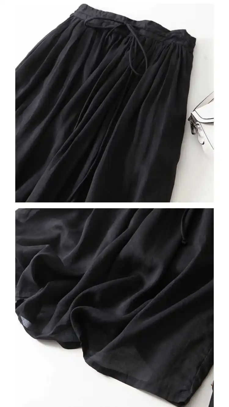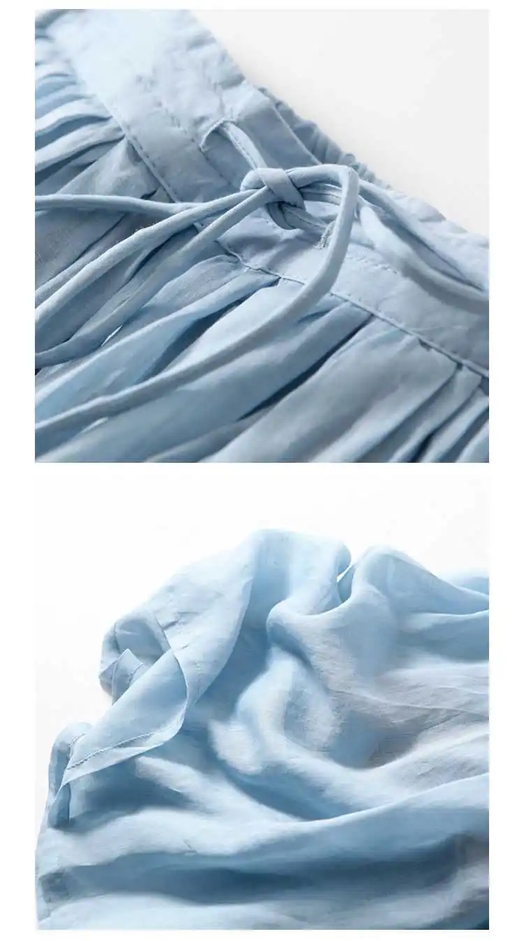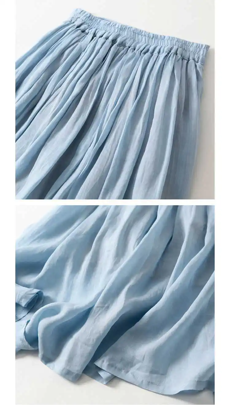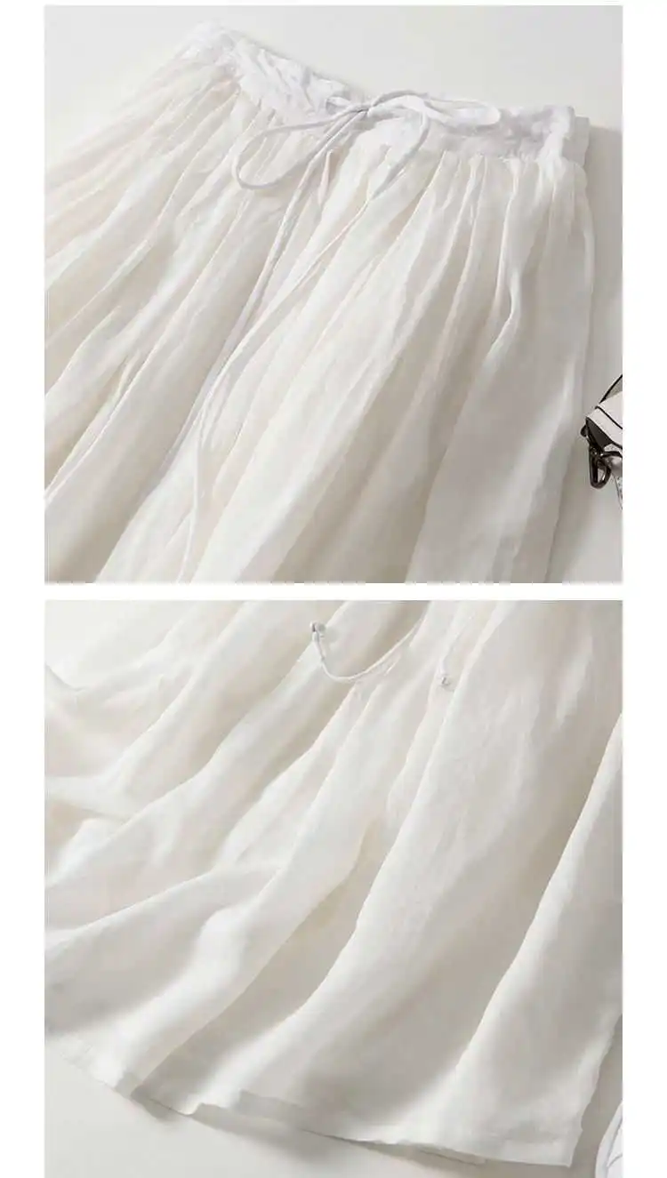 Women Solid Quality Skirt Summer Korean Style Elastic Waist Lace-Up Vintage Cotton Linen Office Ladies Maxi Long A-line Skirts