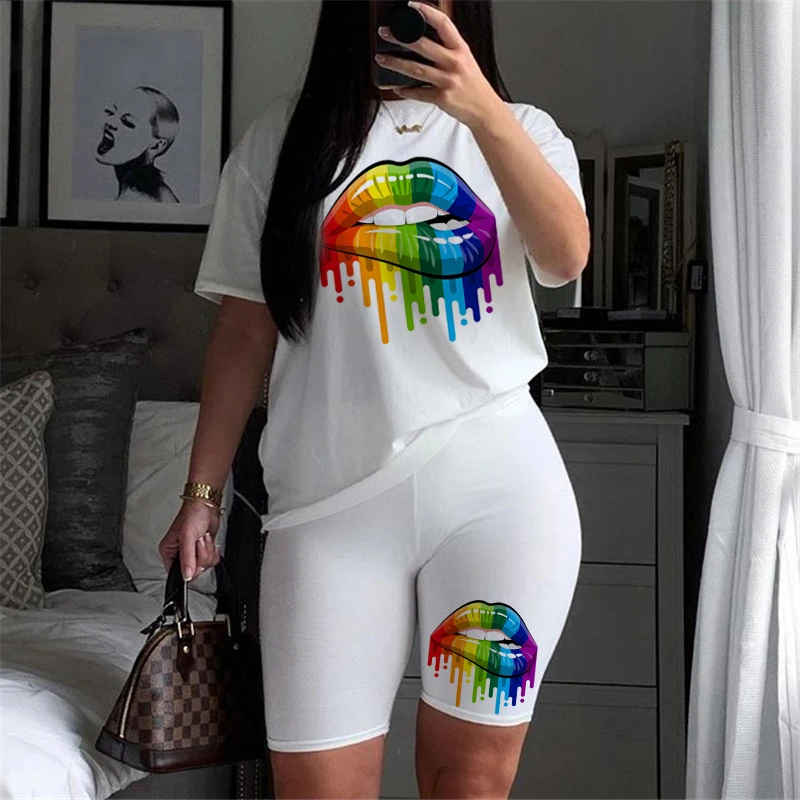 Women Two Piece Set Lips T Shirts And Shorts Pyama Sets Summer Casual Joggers Tracksuit Shorts Sexy Outfit For Woman Clothing