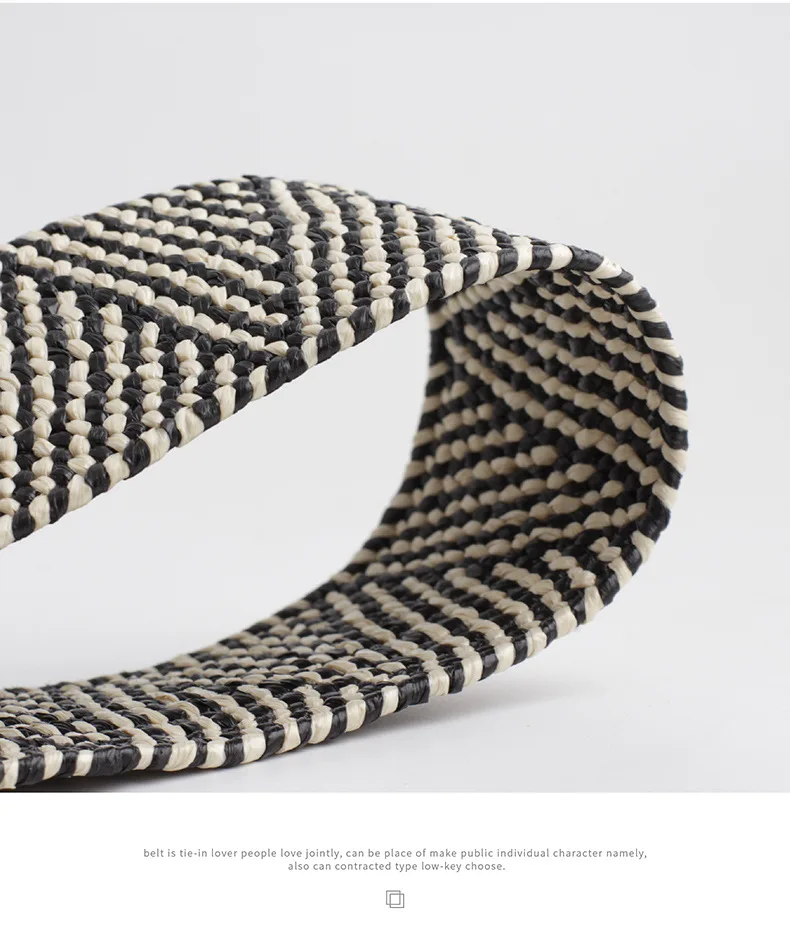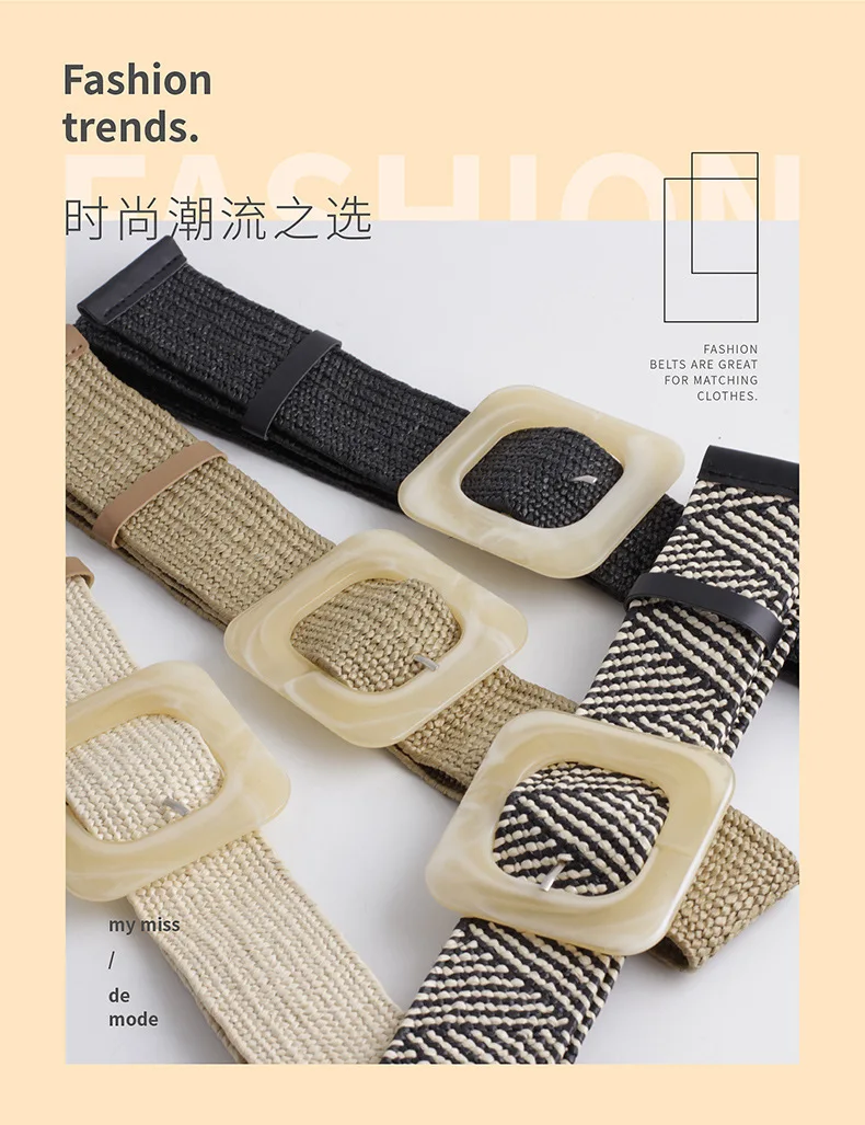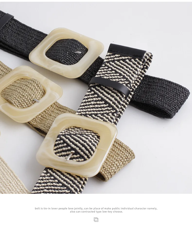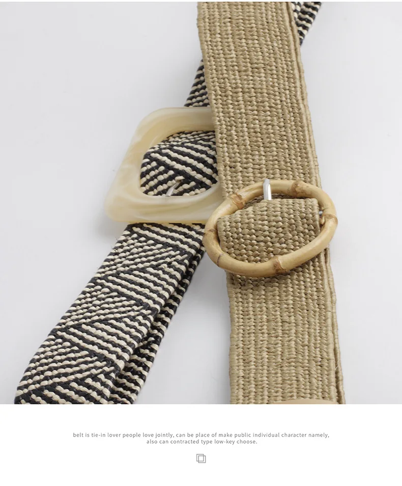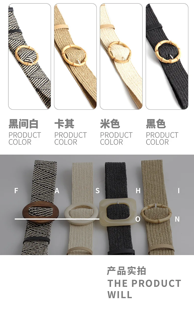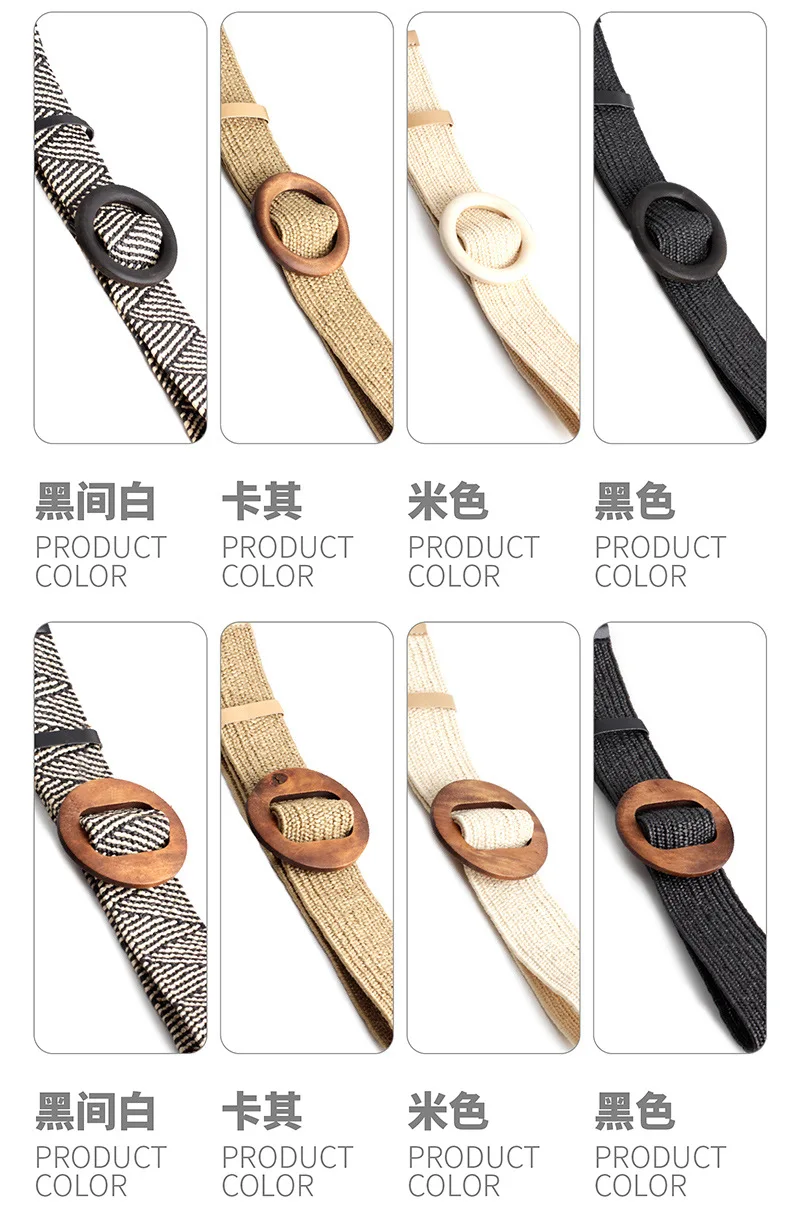 Women Wide Braided Elastic Belt for Dress Round Bamboo Buckle Casual Fashion Girdle Wood Jade Buckle Fake Straw Waistband