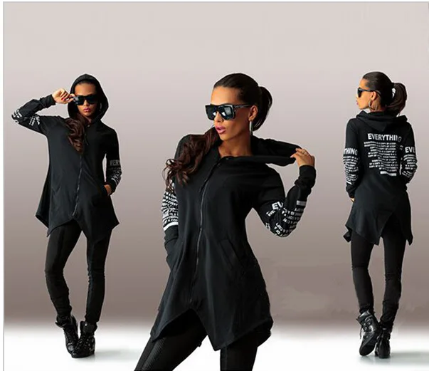 Womens Female Printed Autumn Winter Sweatshirts Hoodies Female Cotton Casual Broadcloth Long Zip-up Hooded Letter Print